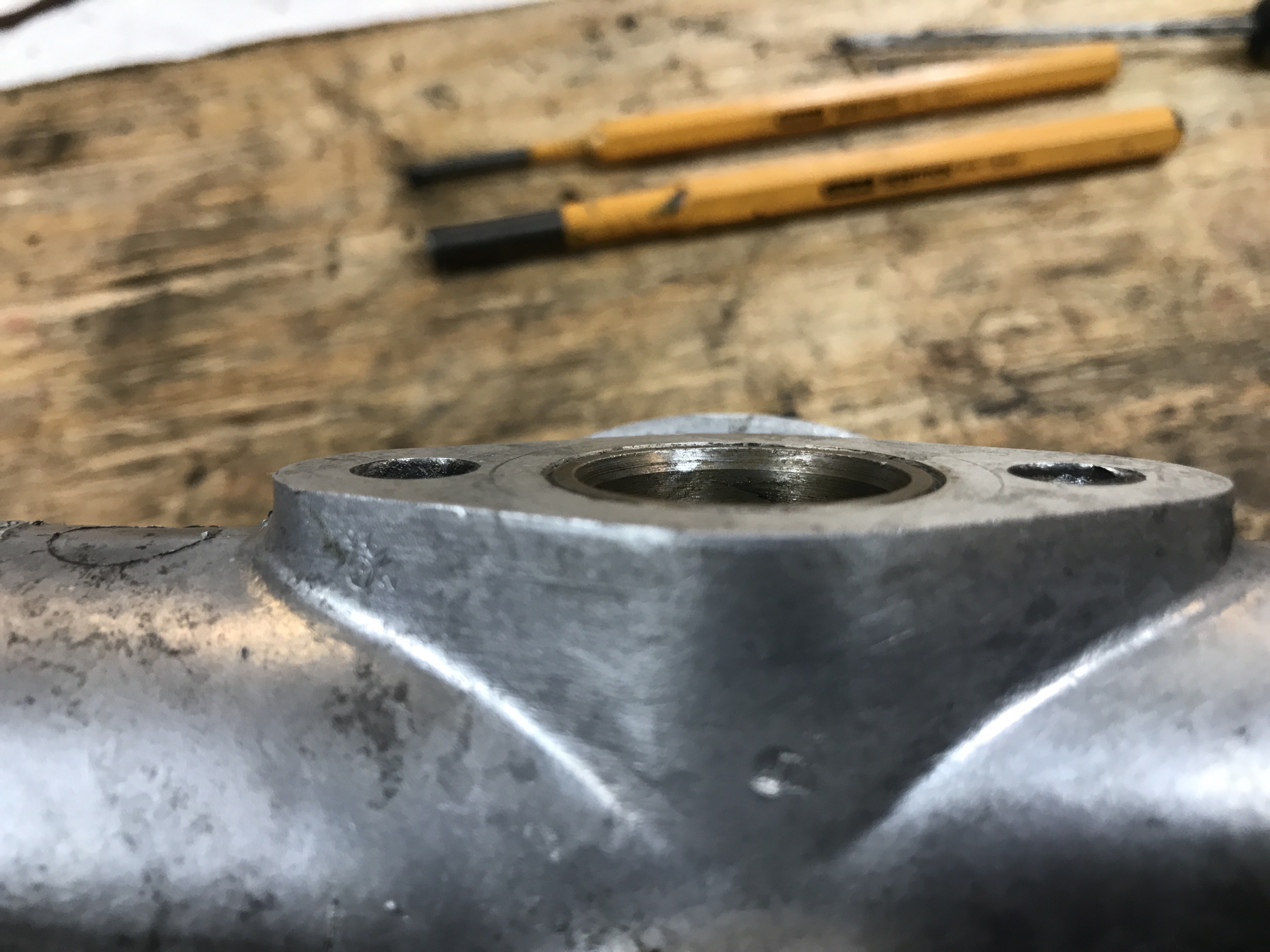 After the first attempt to press in the bushing. Watch out for pinching the rubber edge between the piston and the eye-bolt. Ask me how I know.