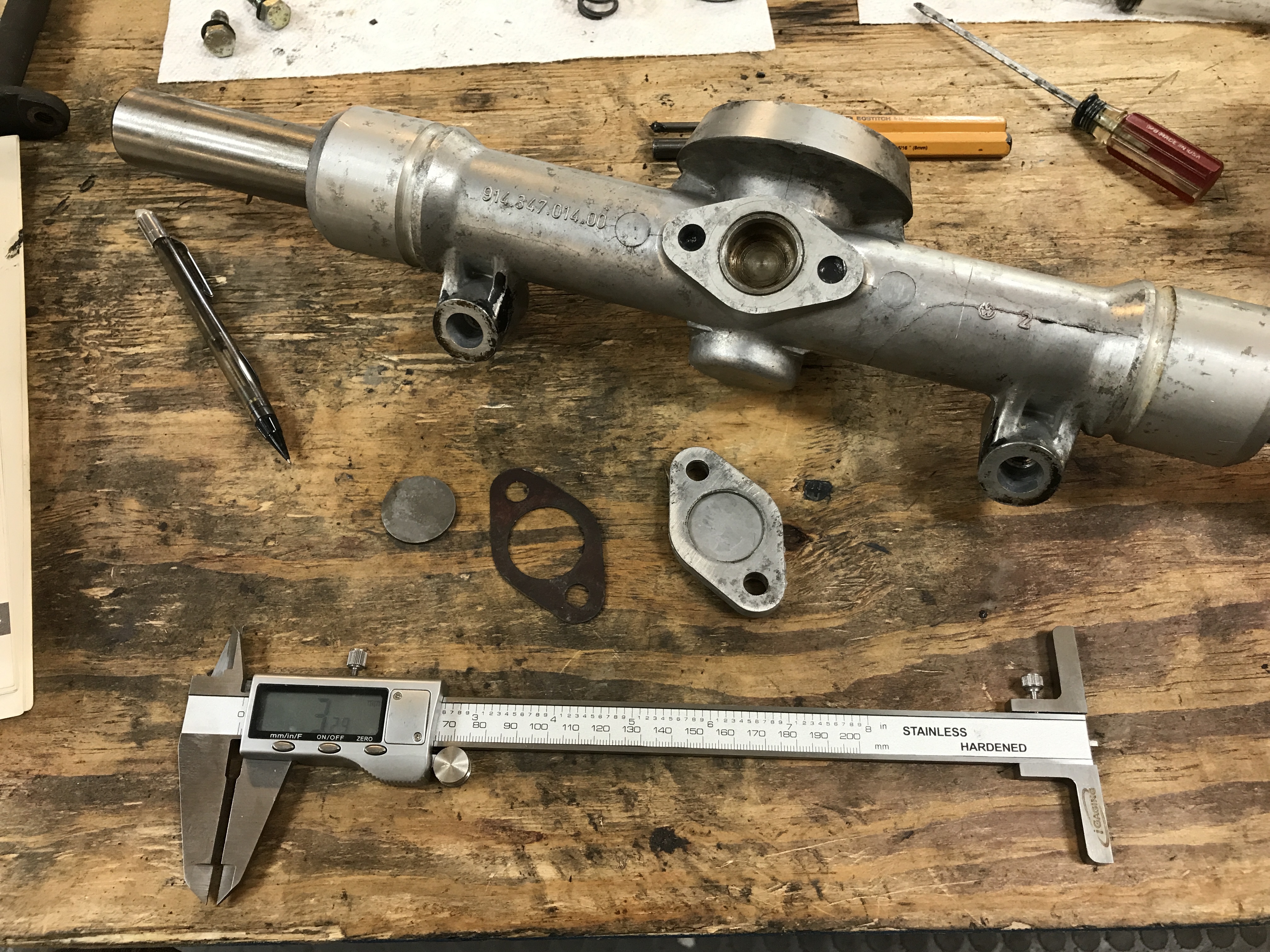 Then I measured the thickness of the original shim, and the gasket.