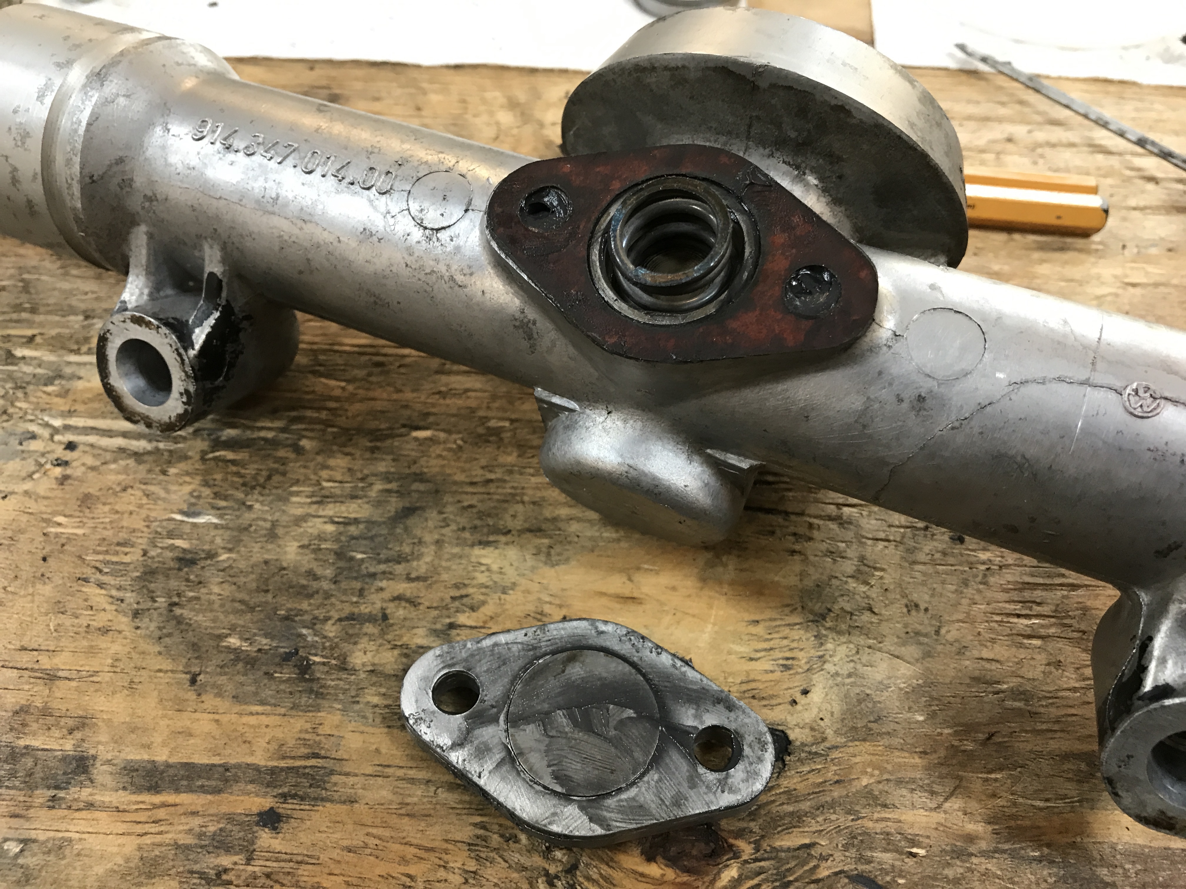 Here's the pressure spring, and the cover plate with shim ready to install.