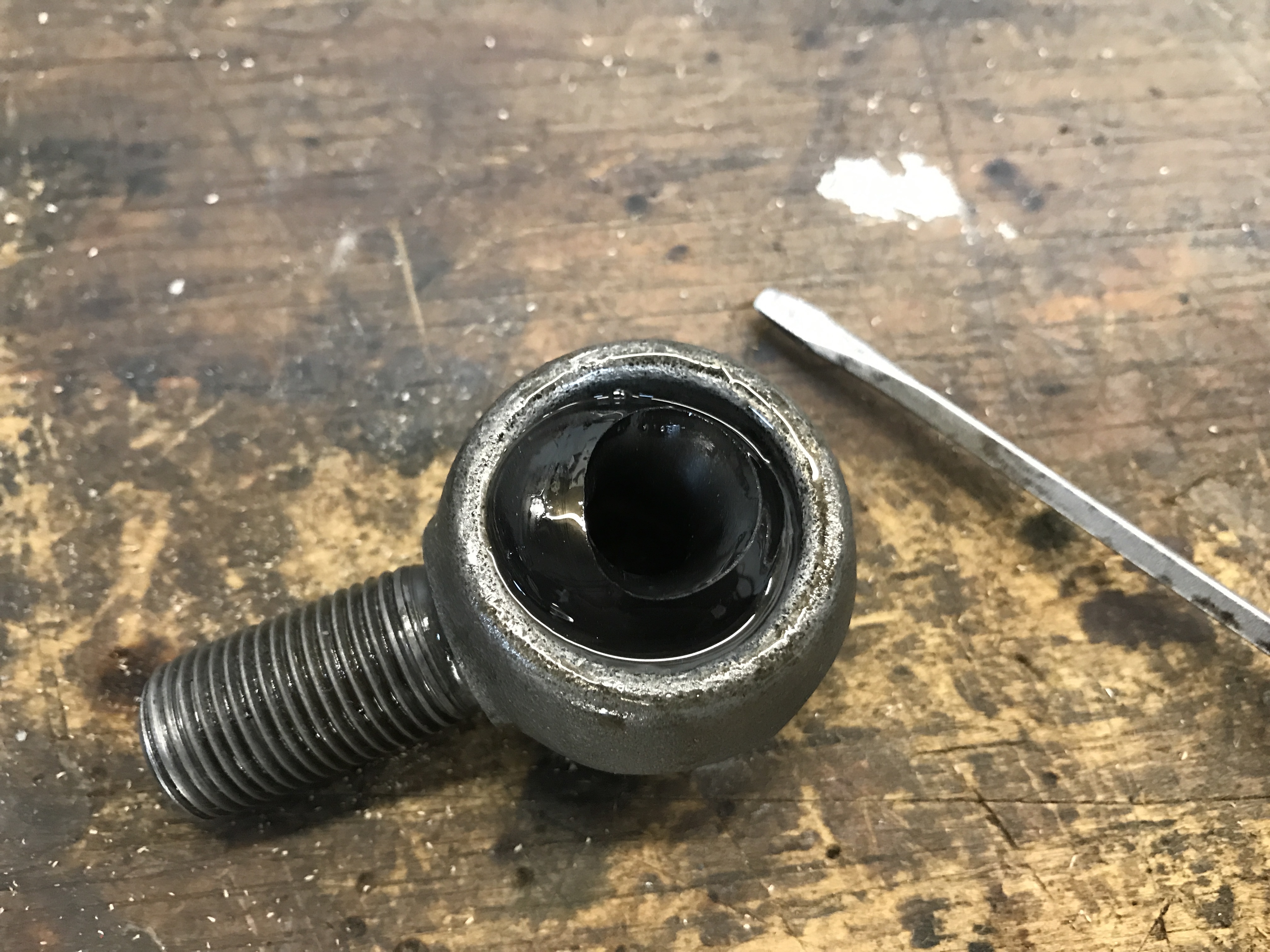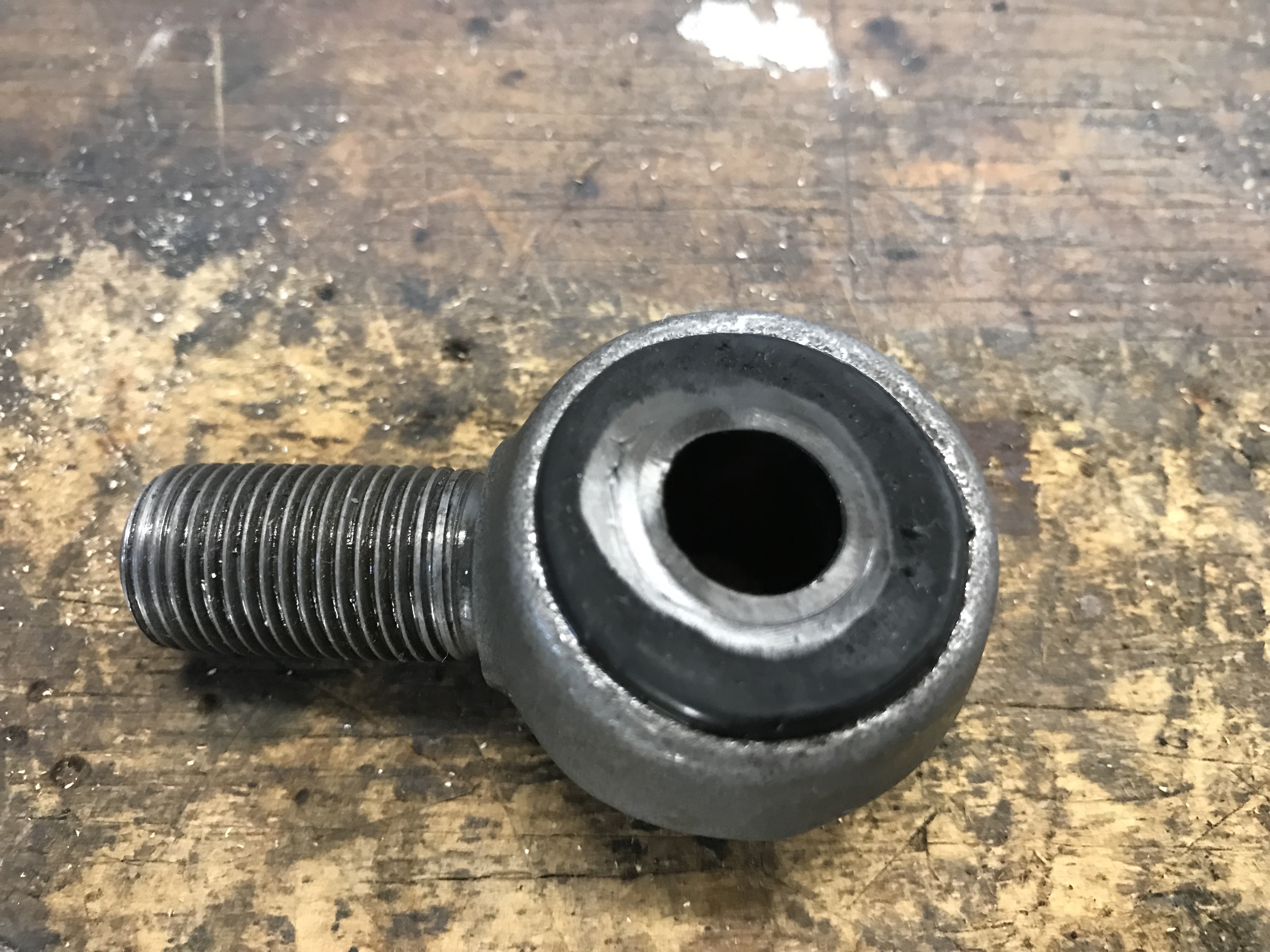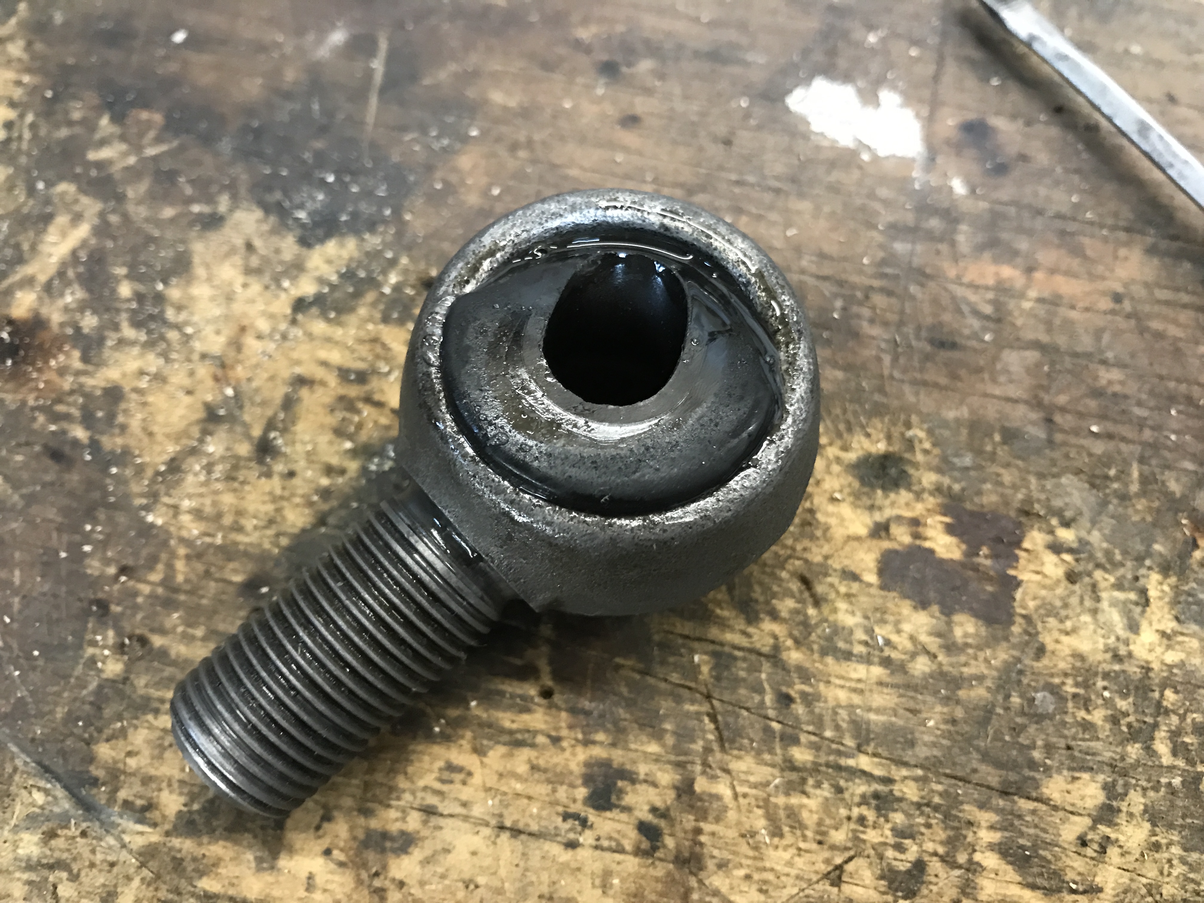 That was enough to get just a bit of the bushing edge out the other side of the eye bolt.