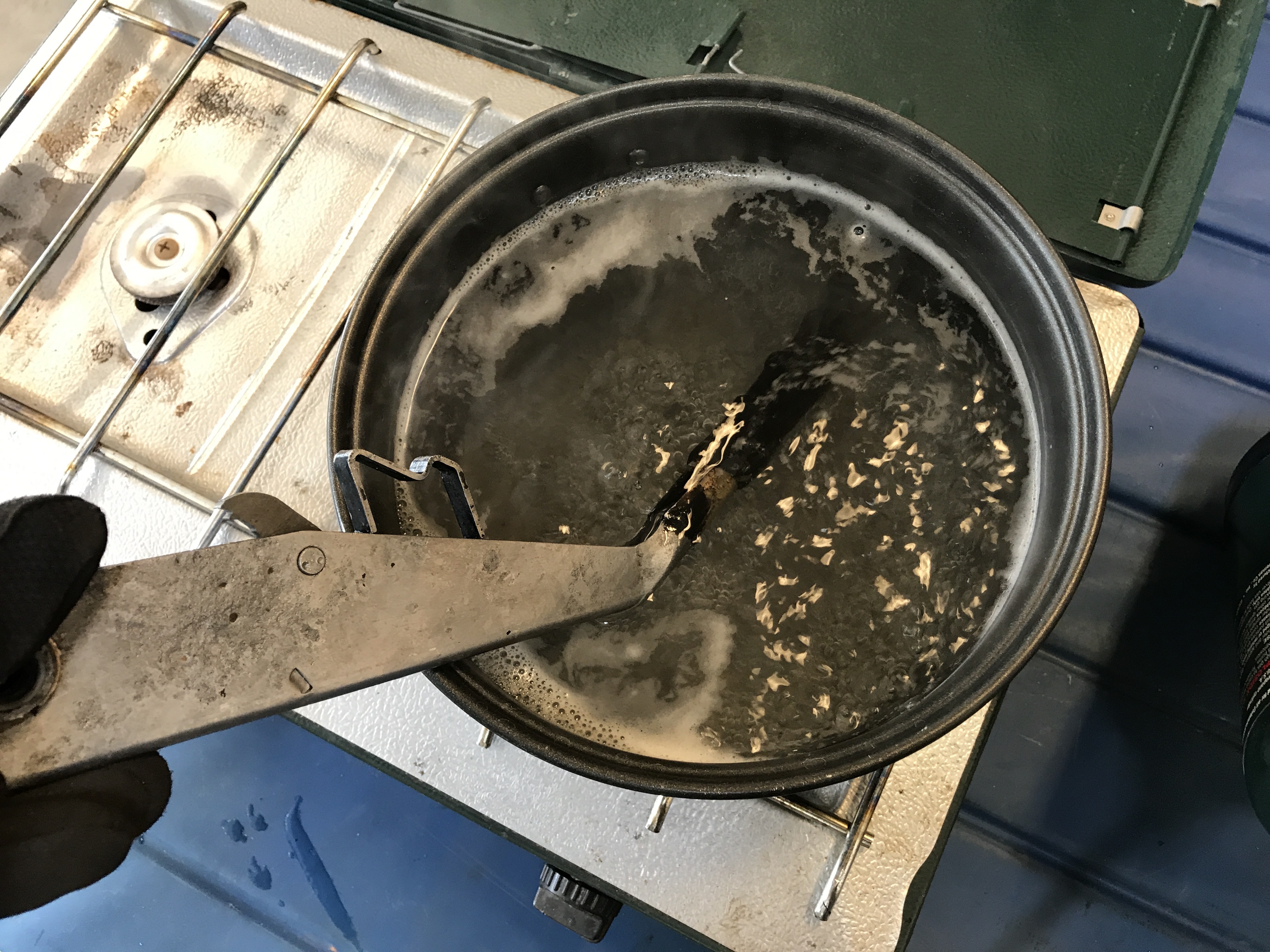 A bit of garage cooking, to warm up the plastic grip.