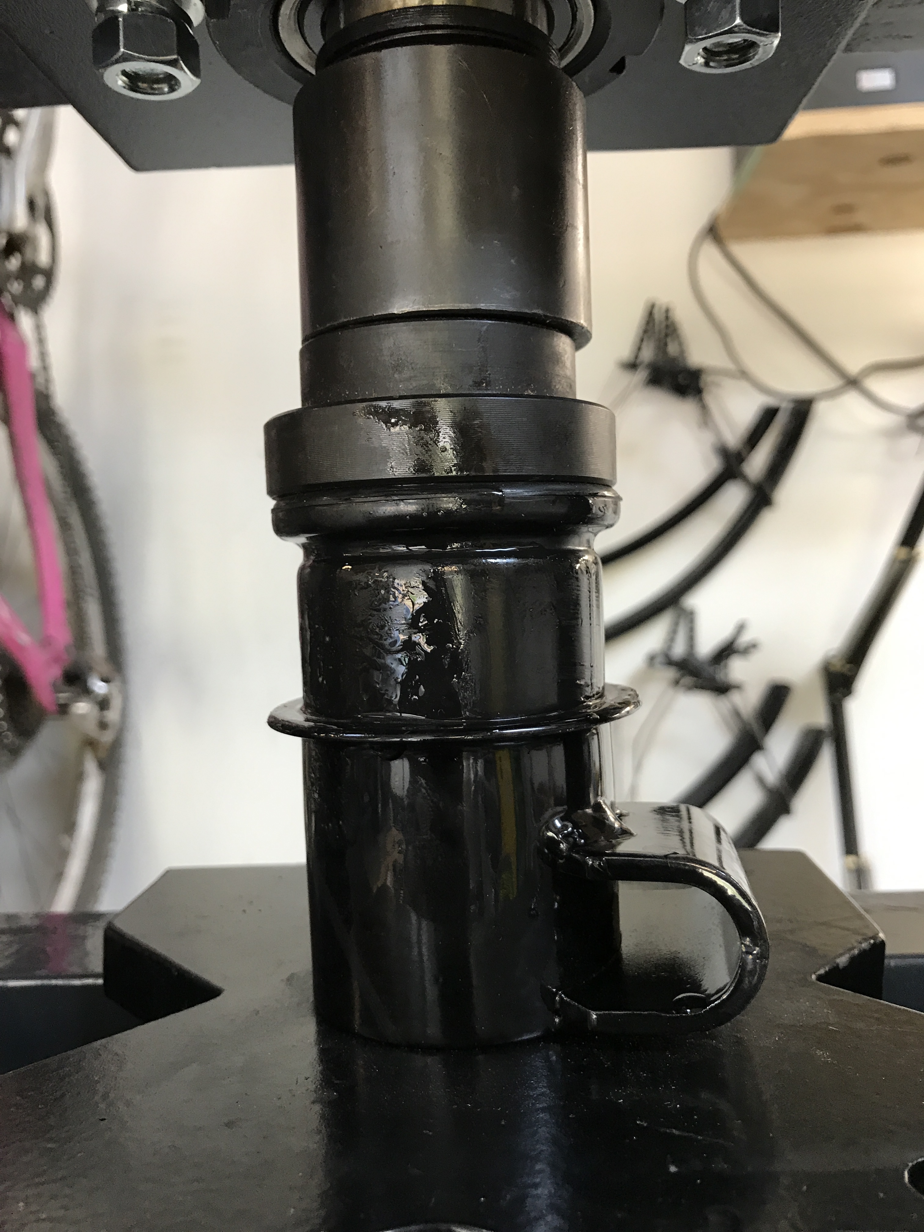 I decided to try some different methods. First, I did not heat the bushings or other parts. Second, I put my new taller press to use. I had the same Dake press in a bench top model but could not fit the A-arms (or some other things). My son has been wishing for a press, so his birthday will come early. Attached thumbnail(s) |