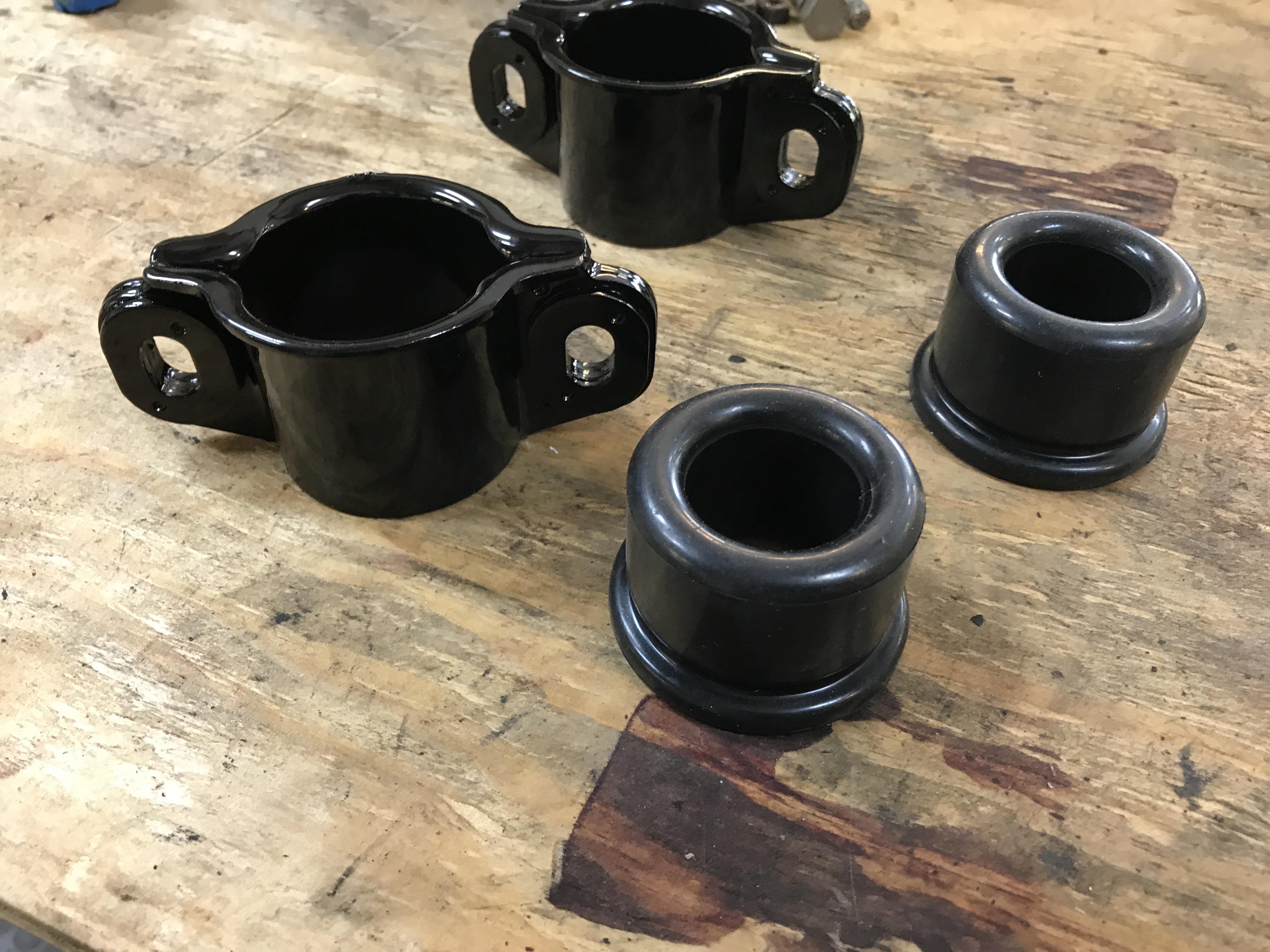 Now for the big job of the day: installing the rubber bushings on the front A-arms.
