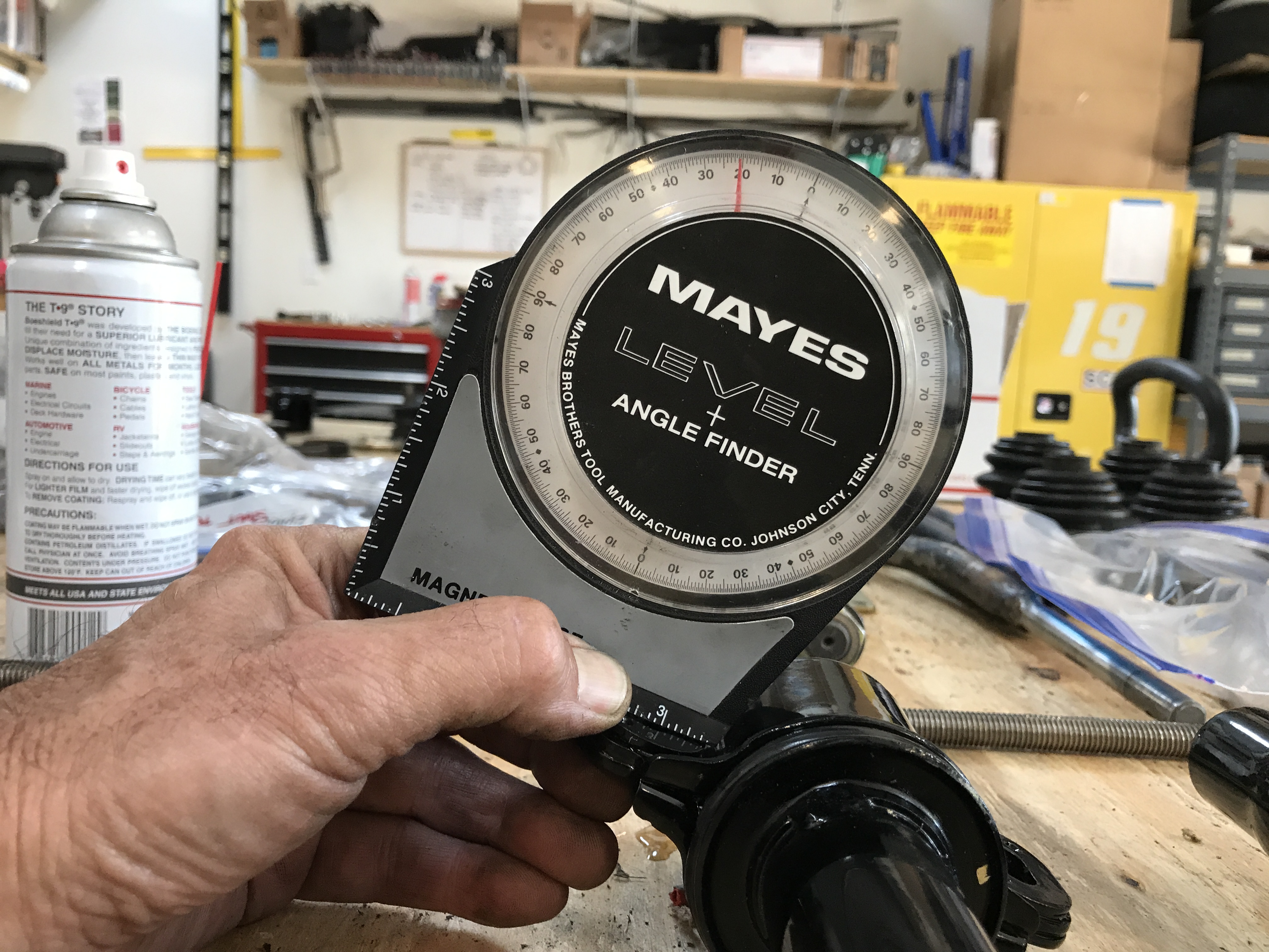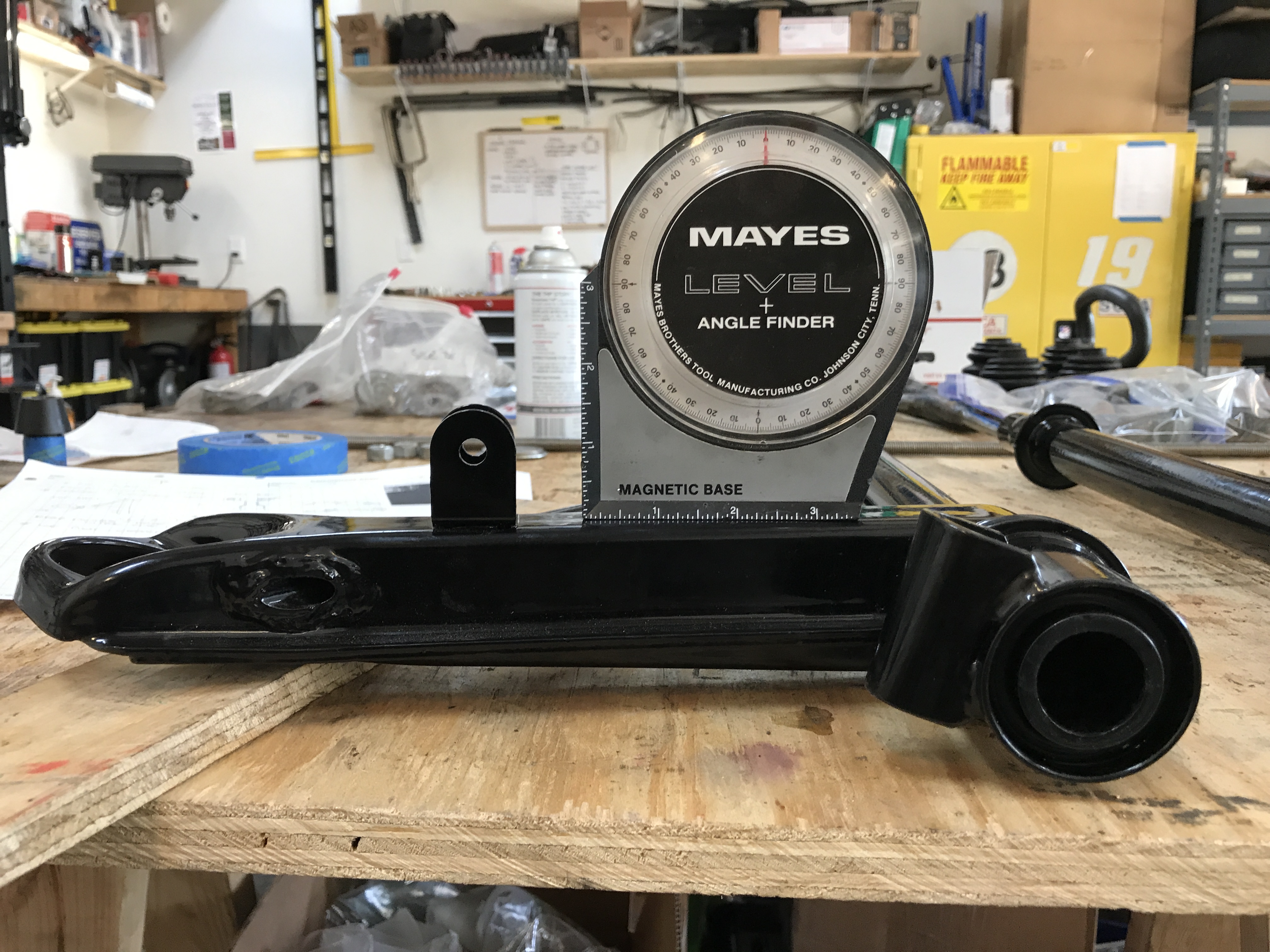 7. Like the rears, the front mounts also have a pre-install angle. So, set the A-arm horizontal.