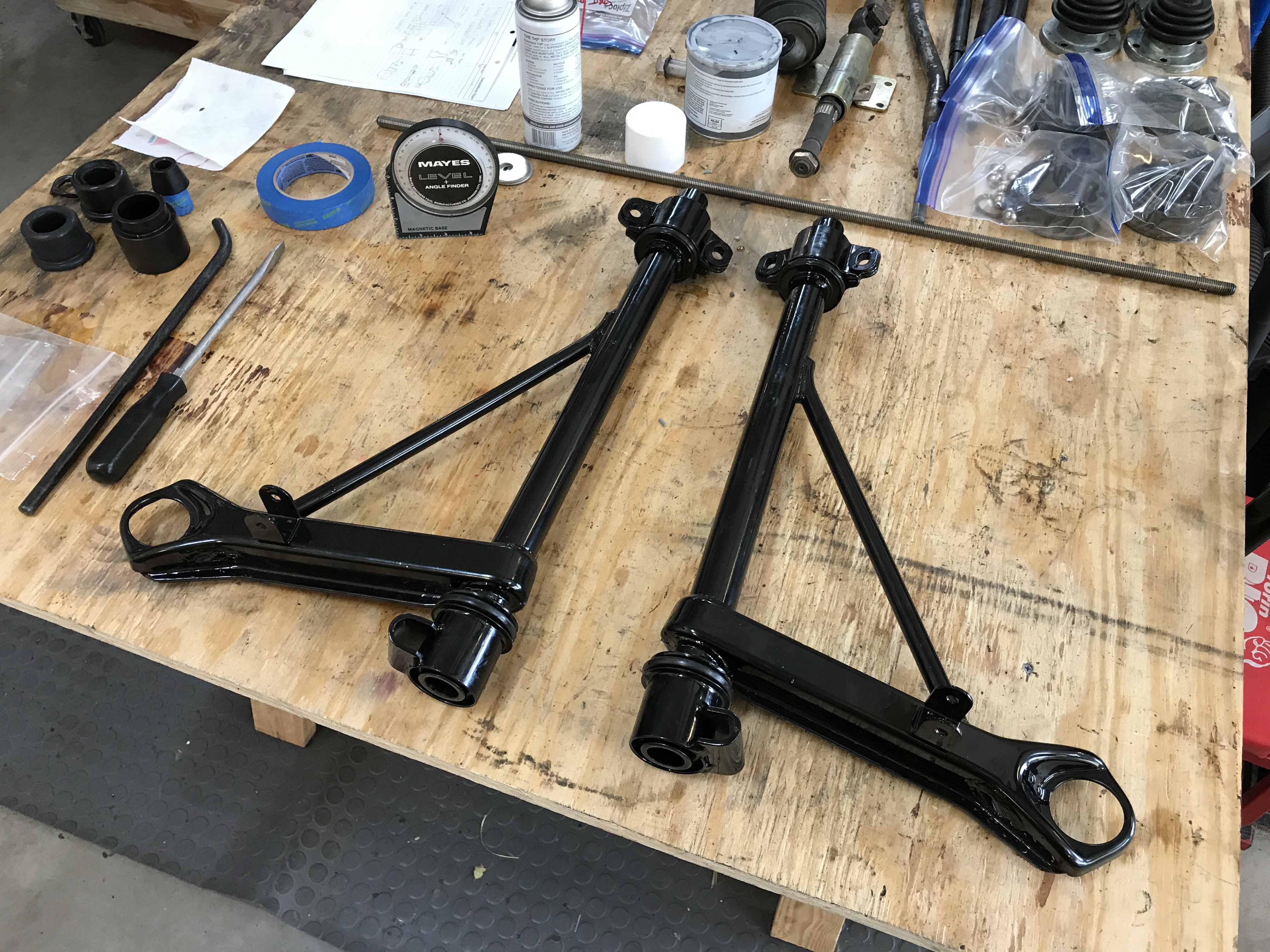 Getting close to having everything ready for installation (not counting the motor and transaxle). The biggest untouched pile is the interior, hiding up on the shelf.