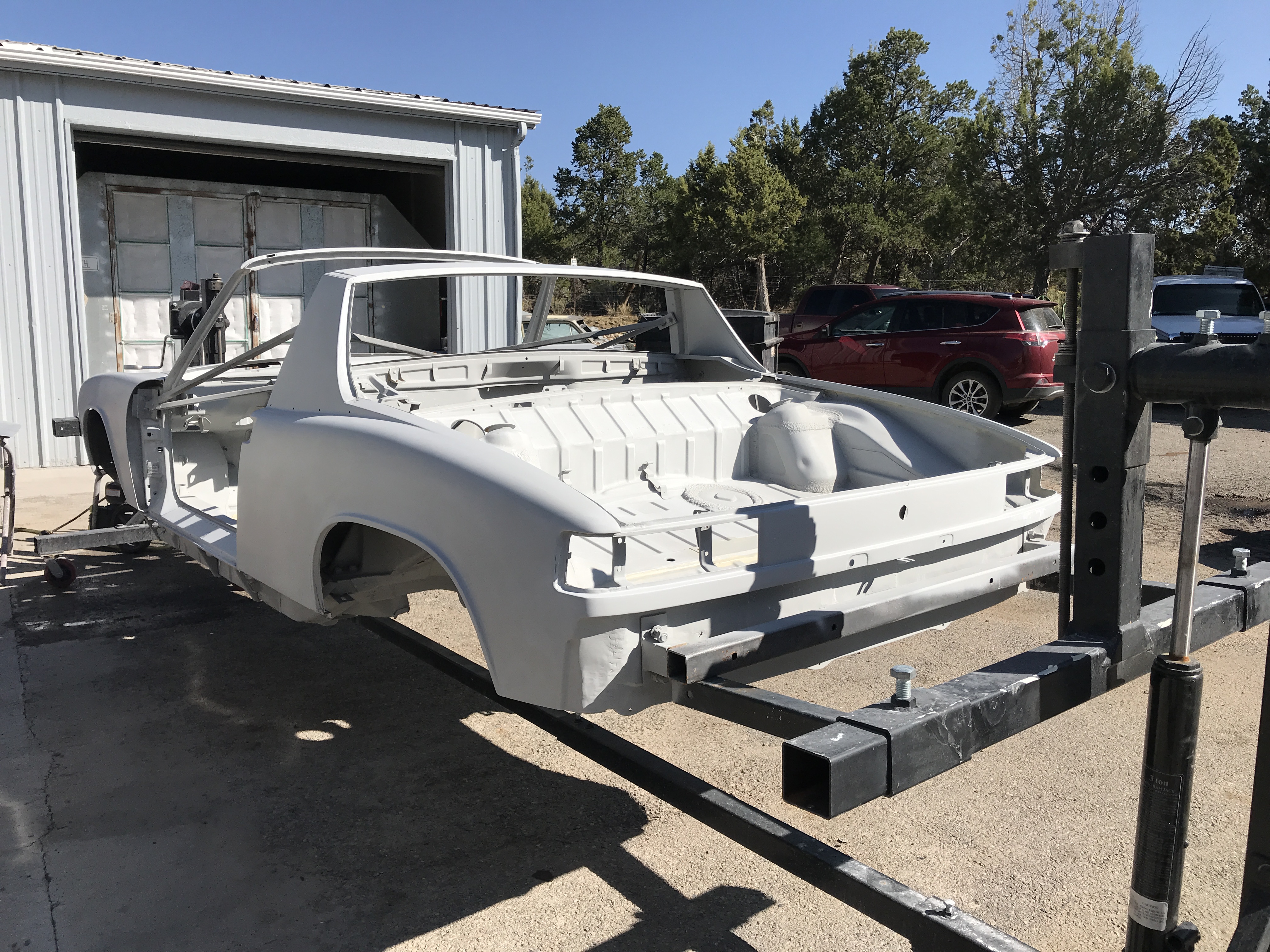Progress at the body shop. This week they got onto my car. They finished the hand sanding on the body and doors, and were starting on the trunk lids.
