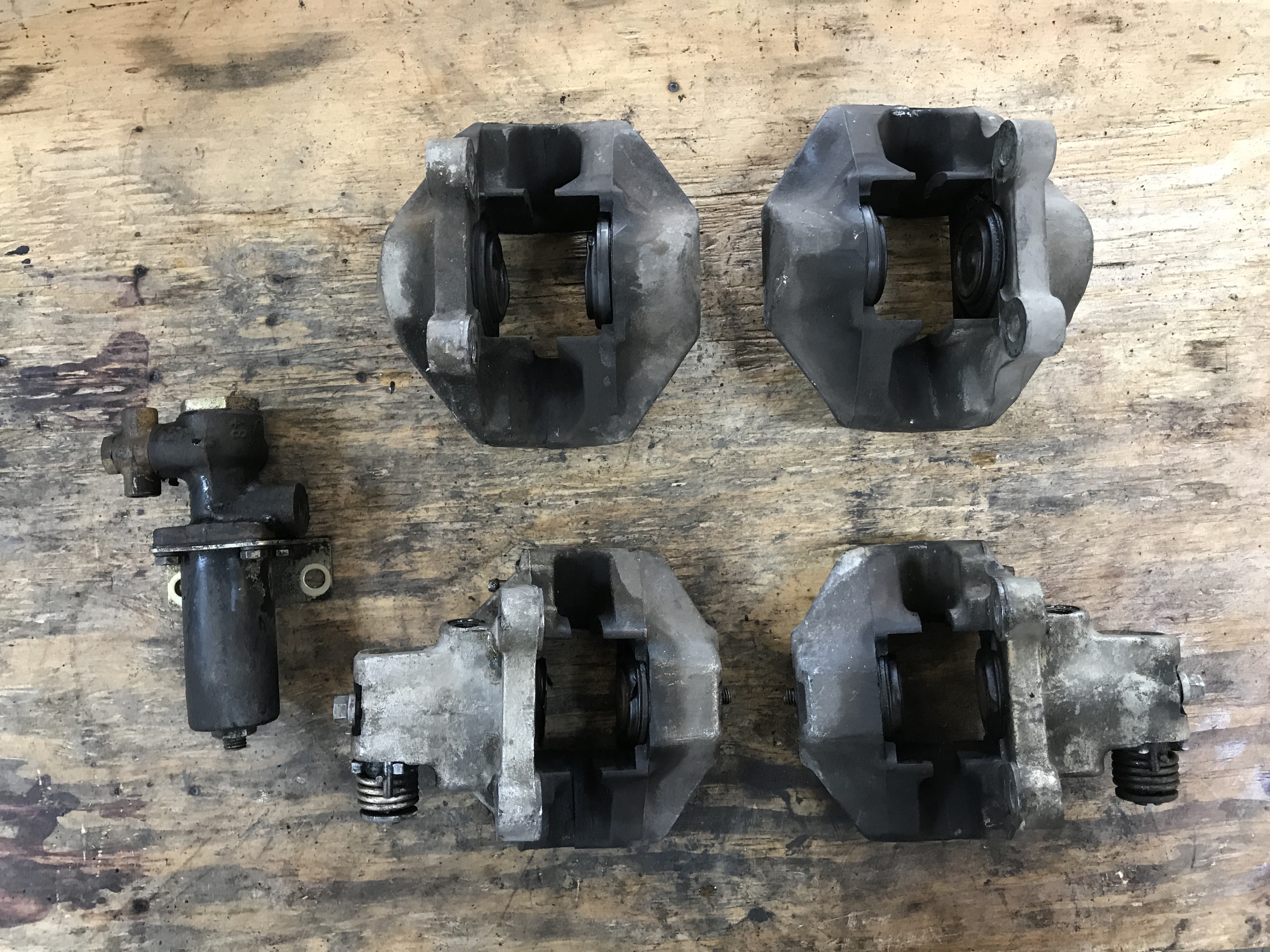 Next up, the brake components. The calipers are nasty dirty, but complete.