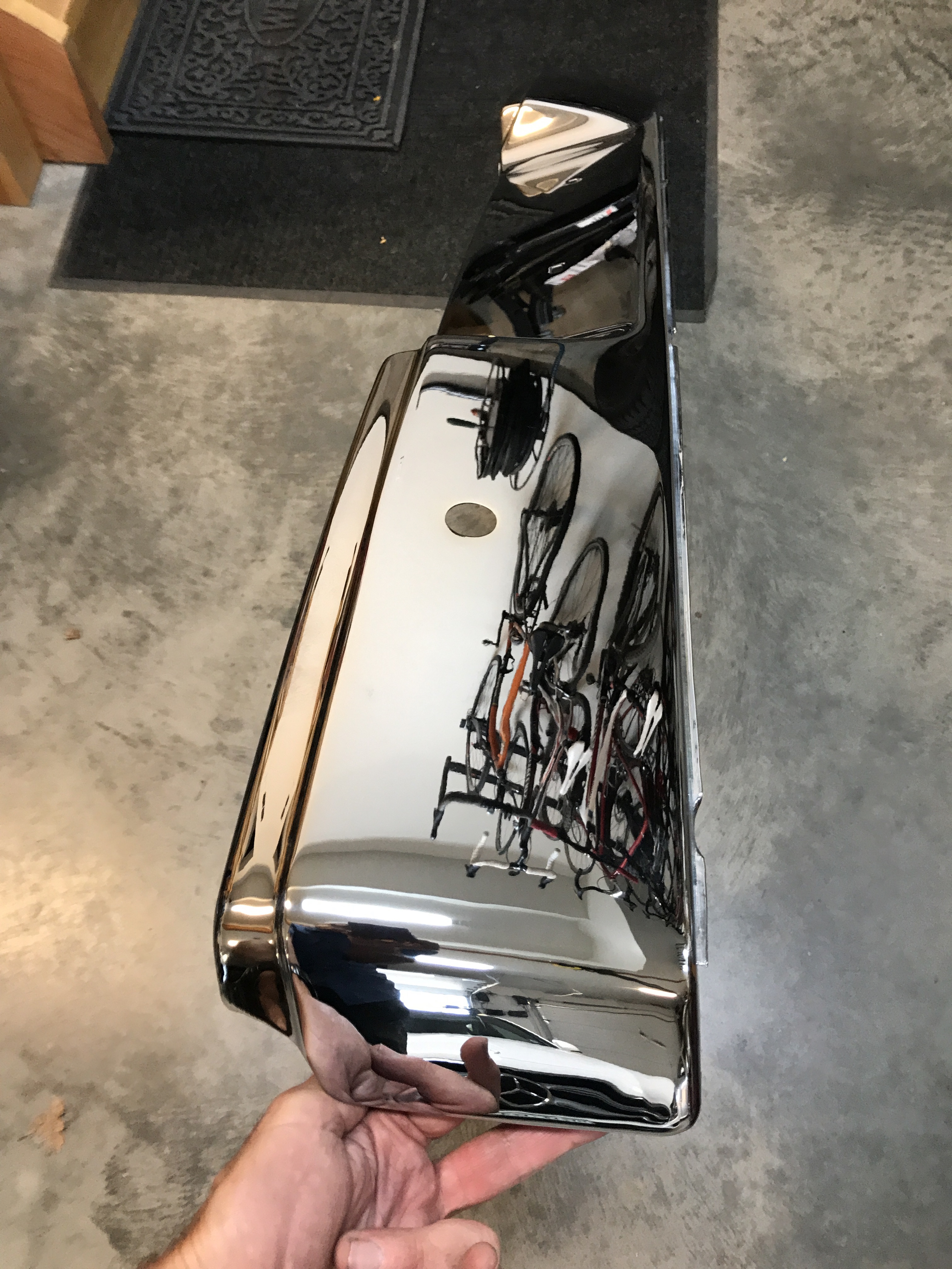 My daughter and SIL came from Arizona for the weekend, and brought my re-chromed bumpers.