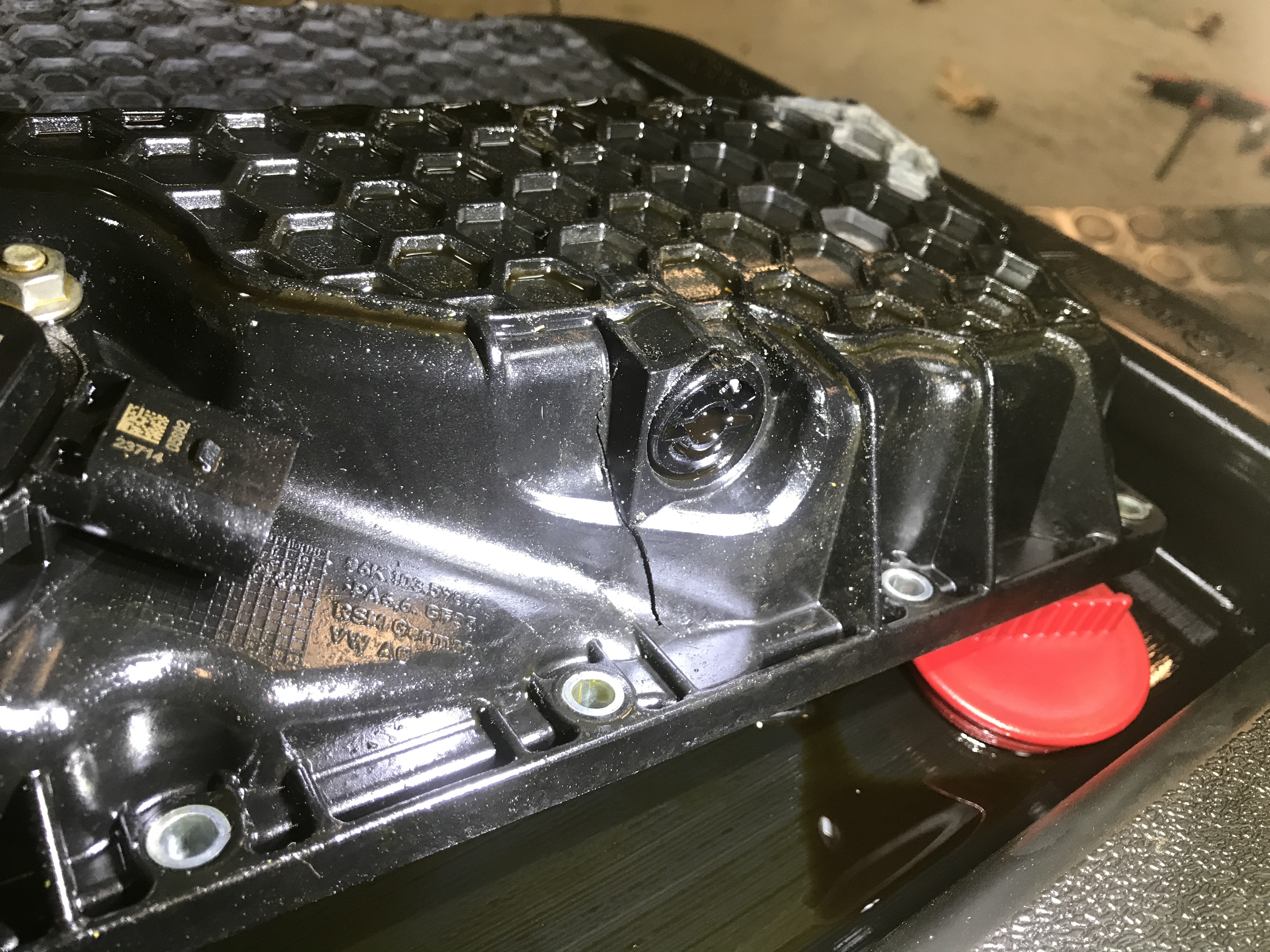 We got it home and dropped the plastic oil pan. It was cracked on the rear edge, but no other visible damage. Parts should arrive tomorrow, and he can be on the way home Tuesday. Hope the car wasn’t hungry (IMG:style_emoticons/default/blink.gif) |