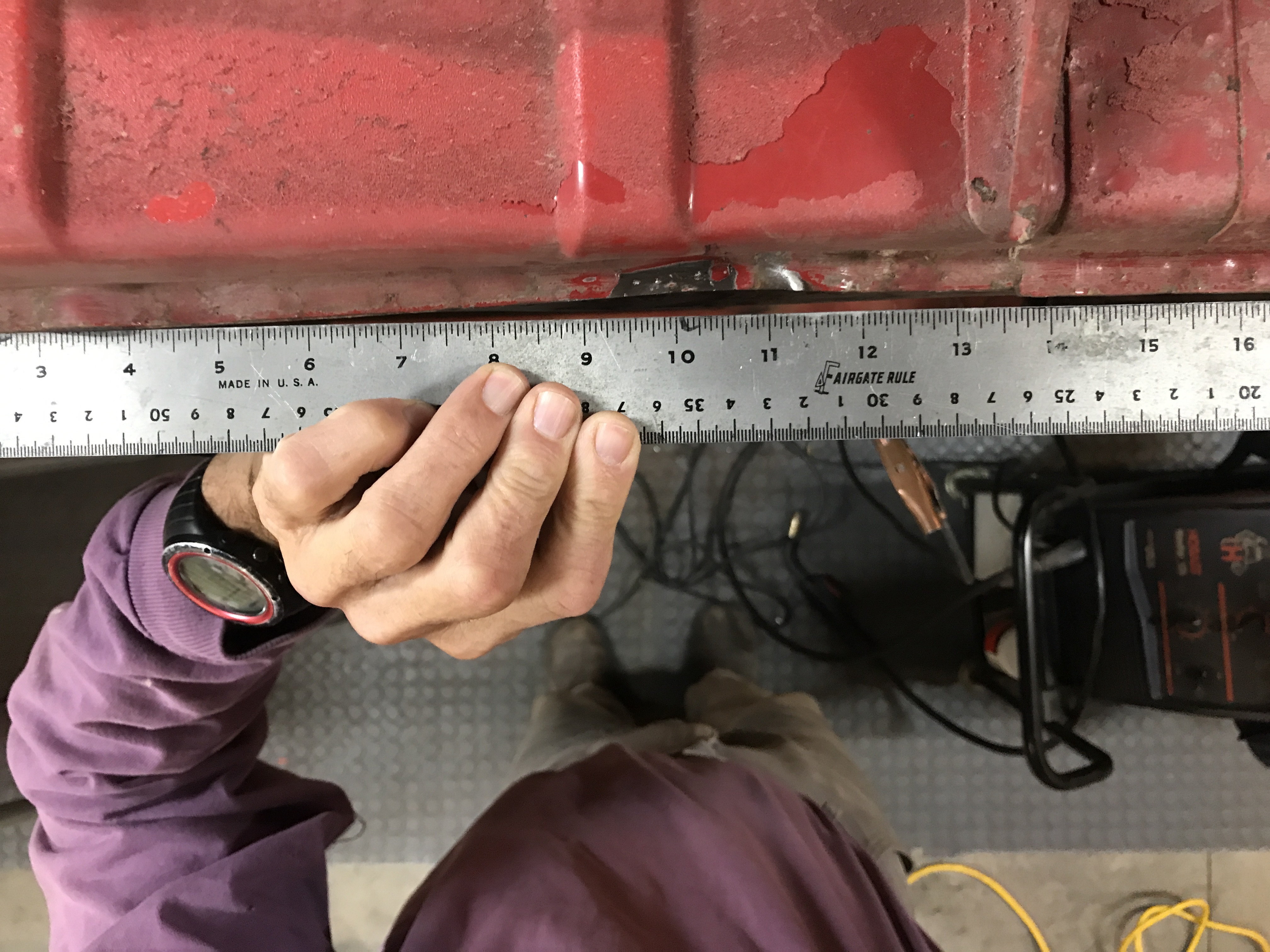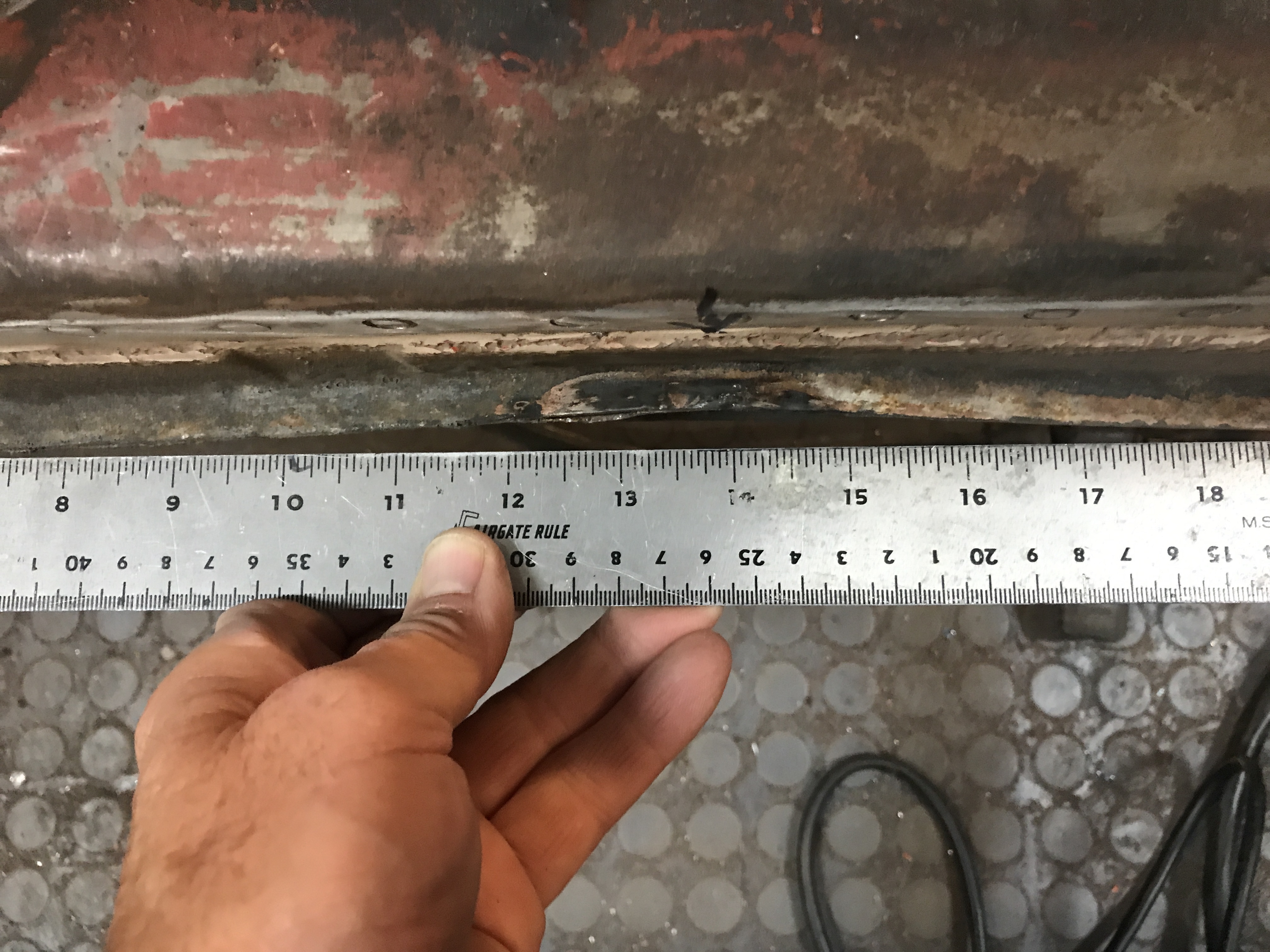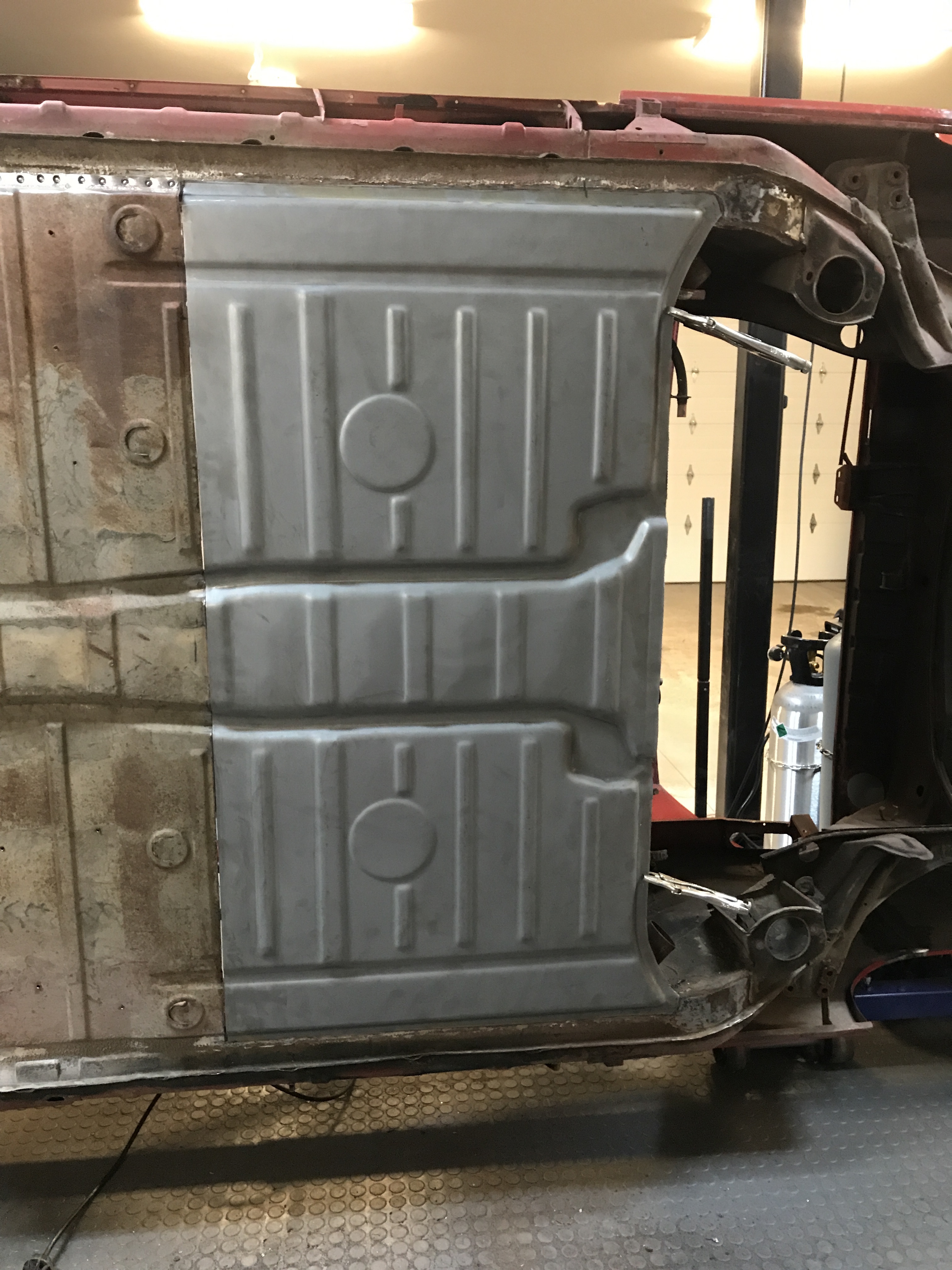 Item #2: Straightening the bottoms of both sills, with dents probably from jacking incidents. Here is the right sill.