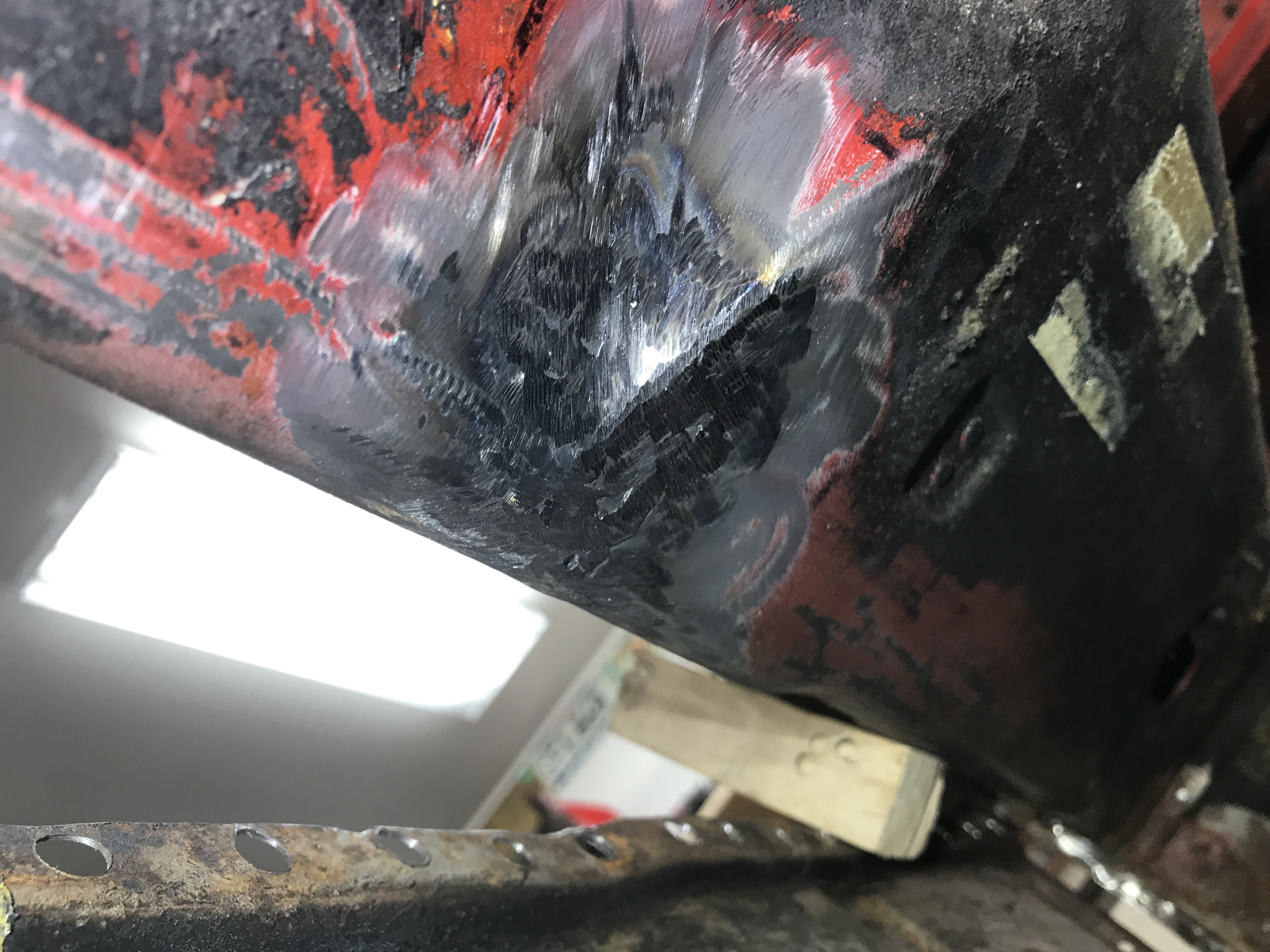 Back to work. First prepping all the joints, grinding out remains of spot welds and cleaning up metal.