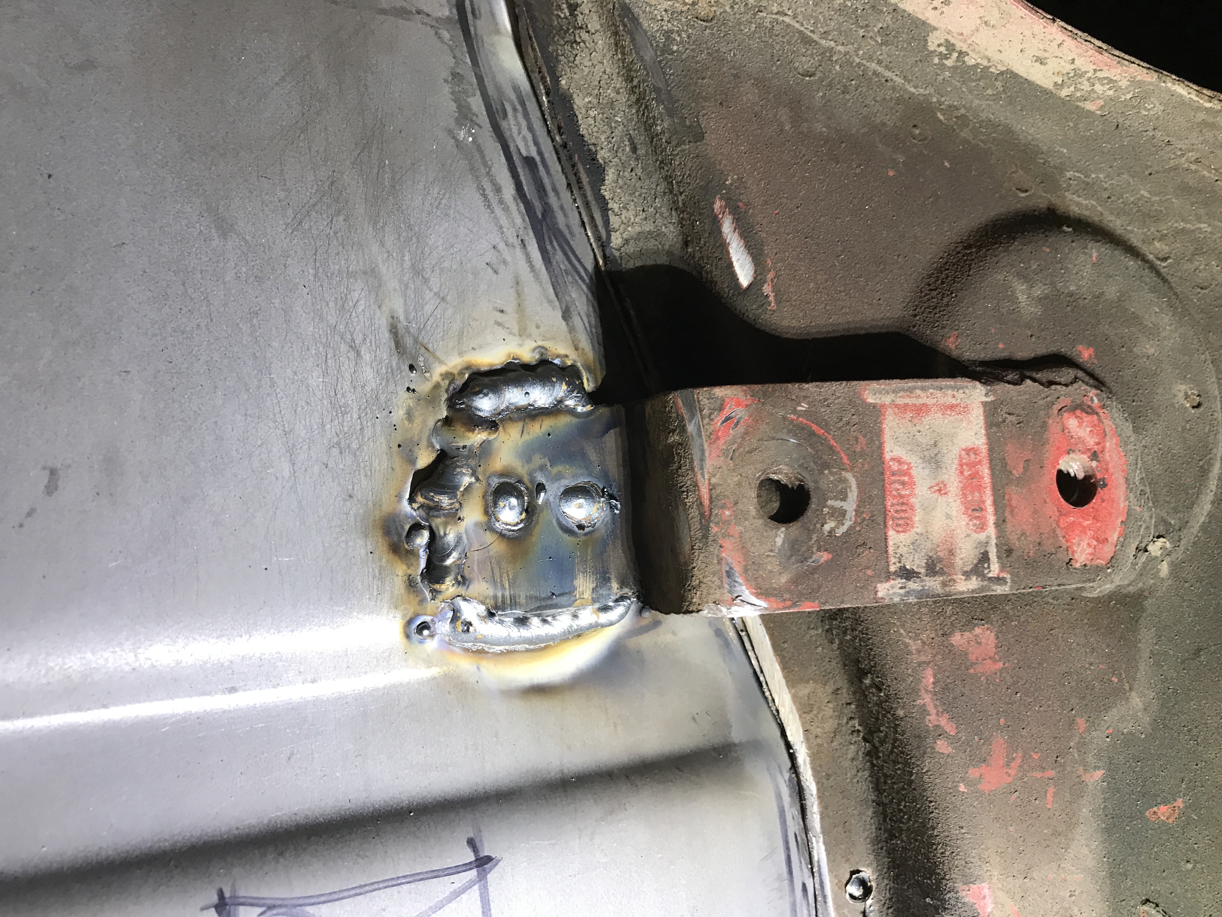 And before I forget, I welded the rear sway bar mounts to the new trunk floor.