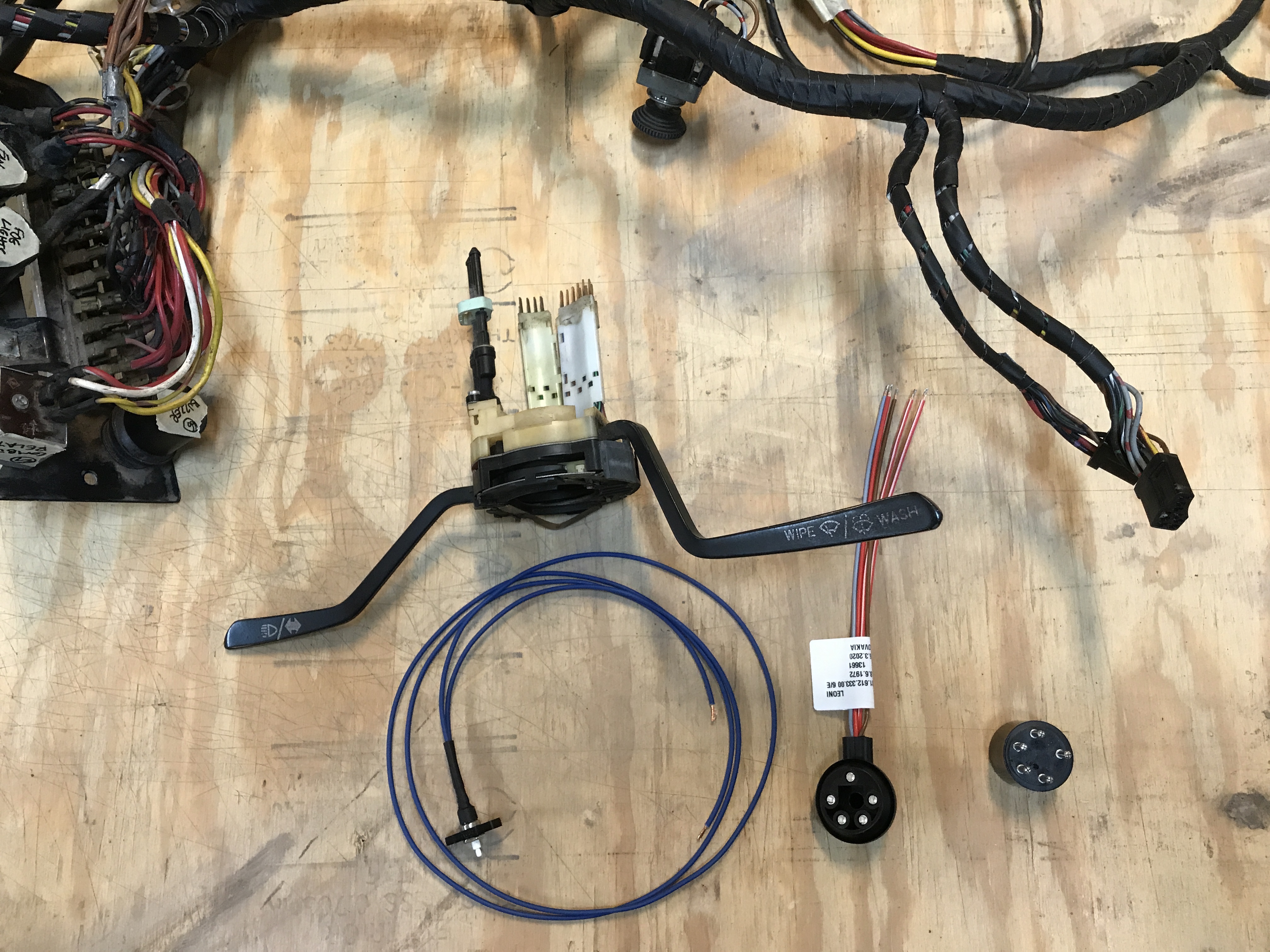 A slight detour. Before I install the wiring harness, I need to install the washer pump switch from Carmagic. No more spare tire pressure and fluid flowing through the steering column.
