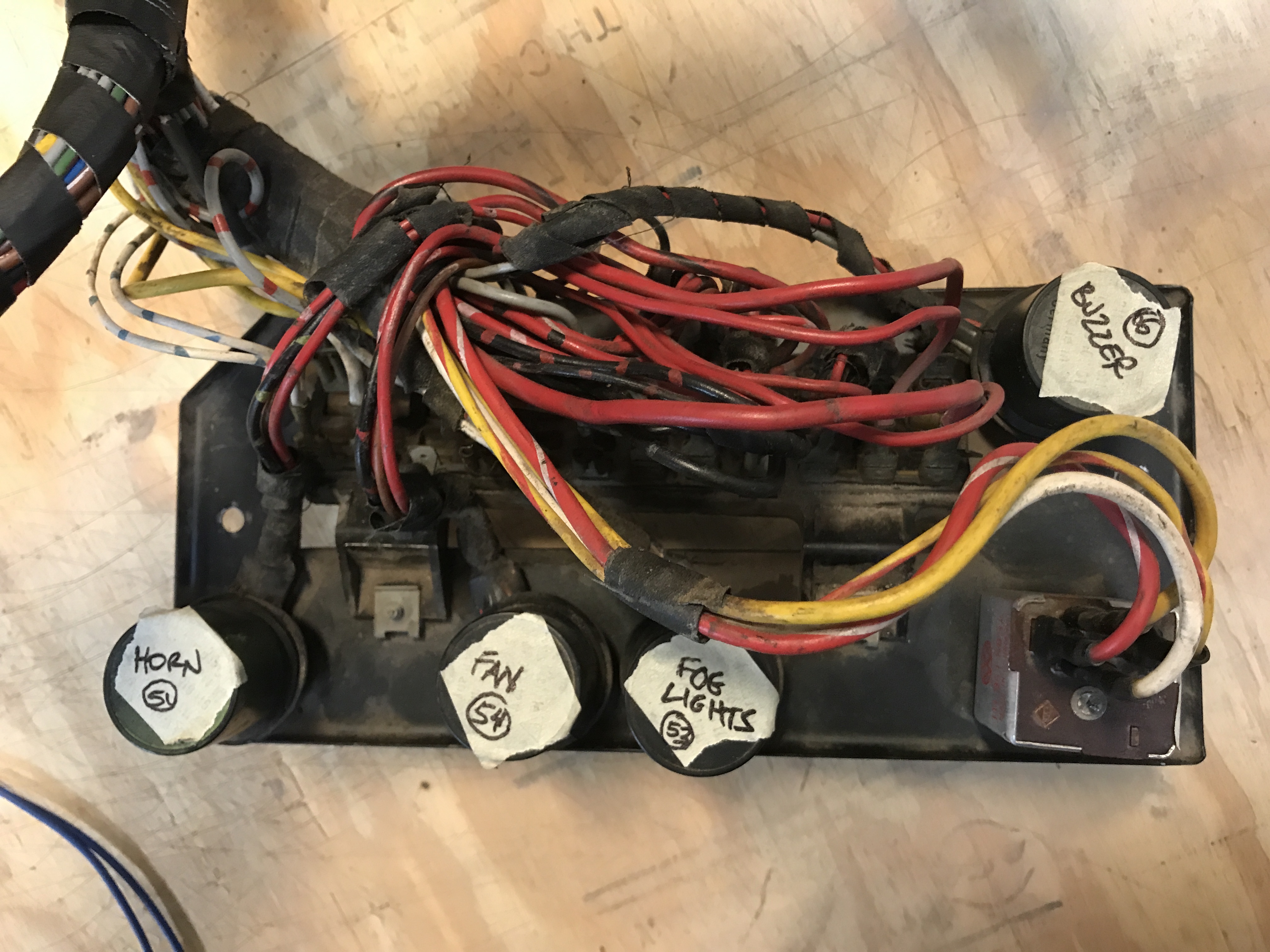 Partial disassembly and cleaning. Not sure I dare unplug all the connectors! As long as you have a schematic handy, I would. It's a good time to make sure all the connections are clean and tight and some DAPO didn't get creative with where they routed circuits. I labeled mine with little zip tie tags before pulling them off but in the end I didn't really use the labels and just followed the schematic because sure enough, a few wires had been switched around over the years. Thanks, Brent. When I refurbished the harness I checked and repaired everything, from shorted and melted wires to corrosion to DAPO stupidity. I can't remember why I did not clean the fuse-relay panel then, probably got distracted by something more fun. |