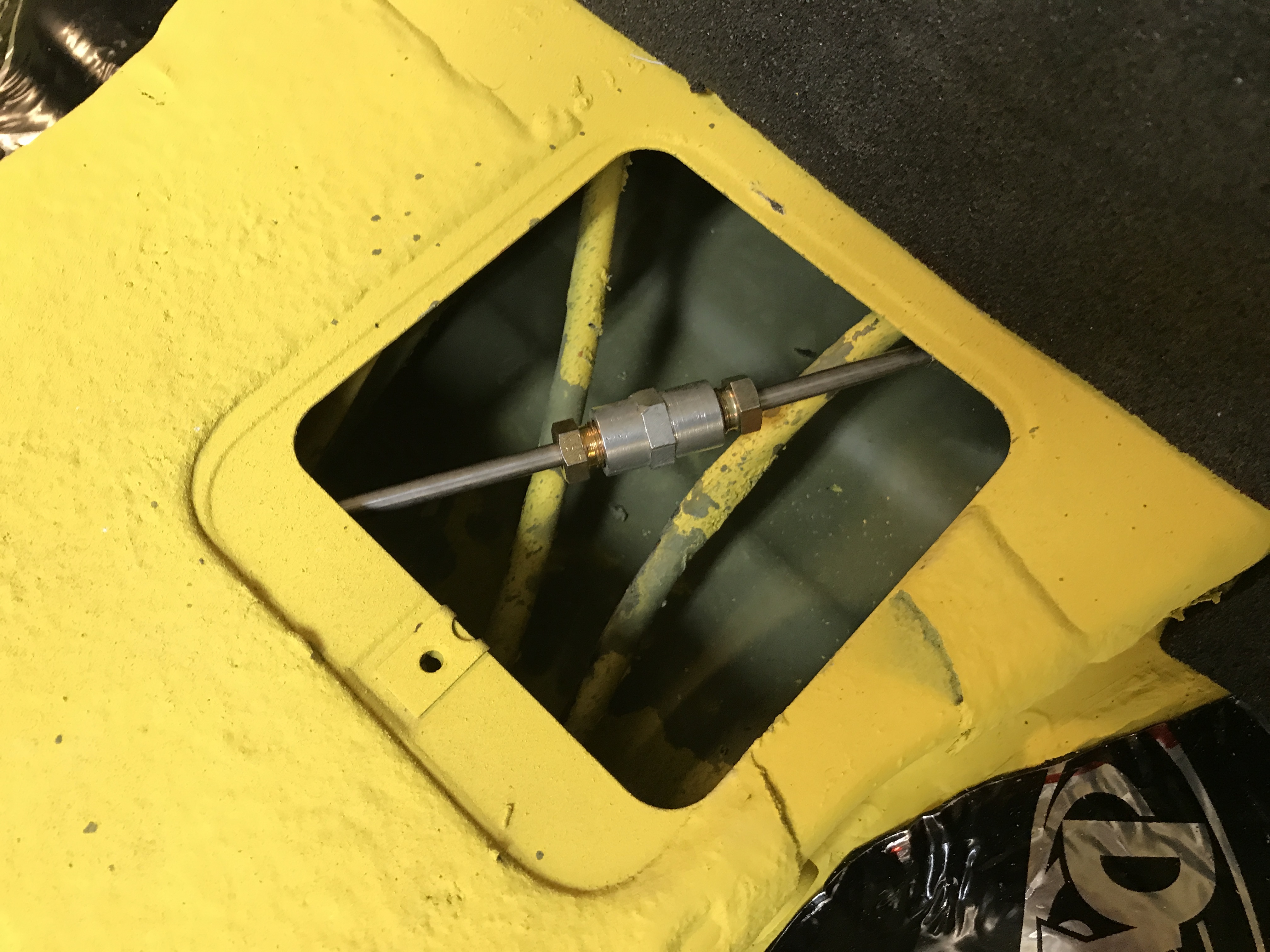 The two lines come together at this union--first time using a wrench on the rebuild!