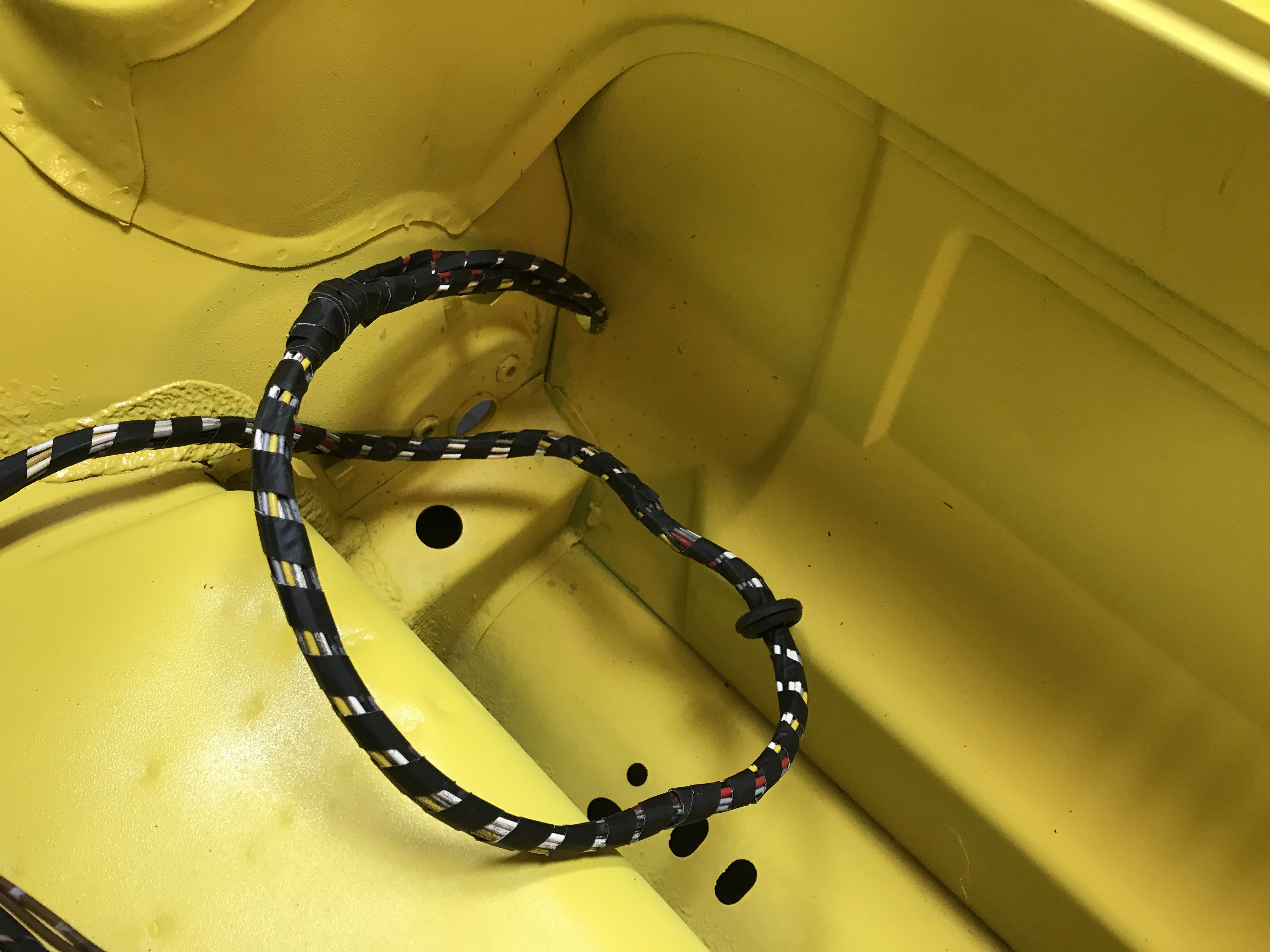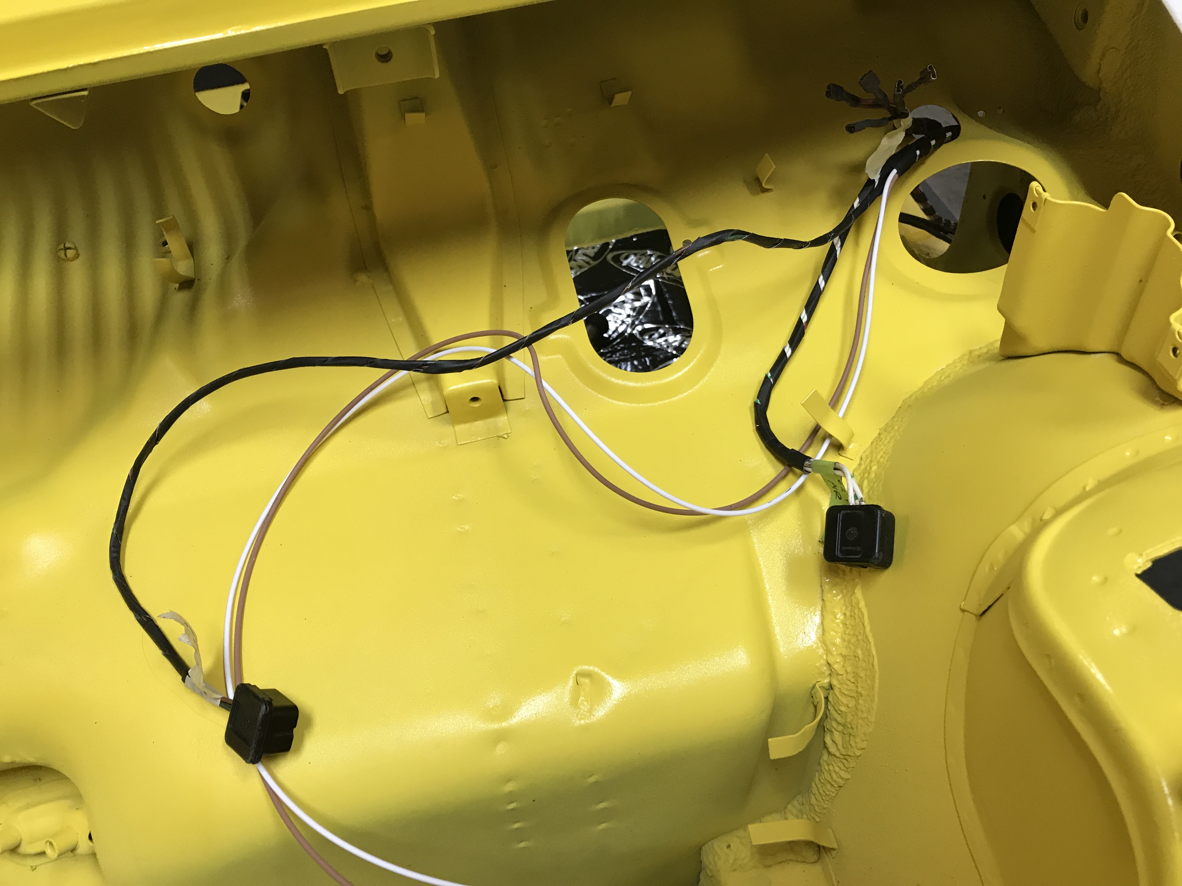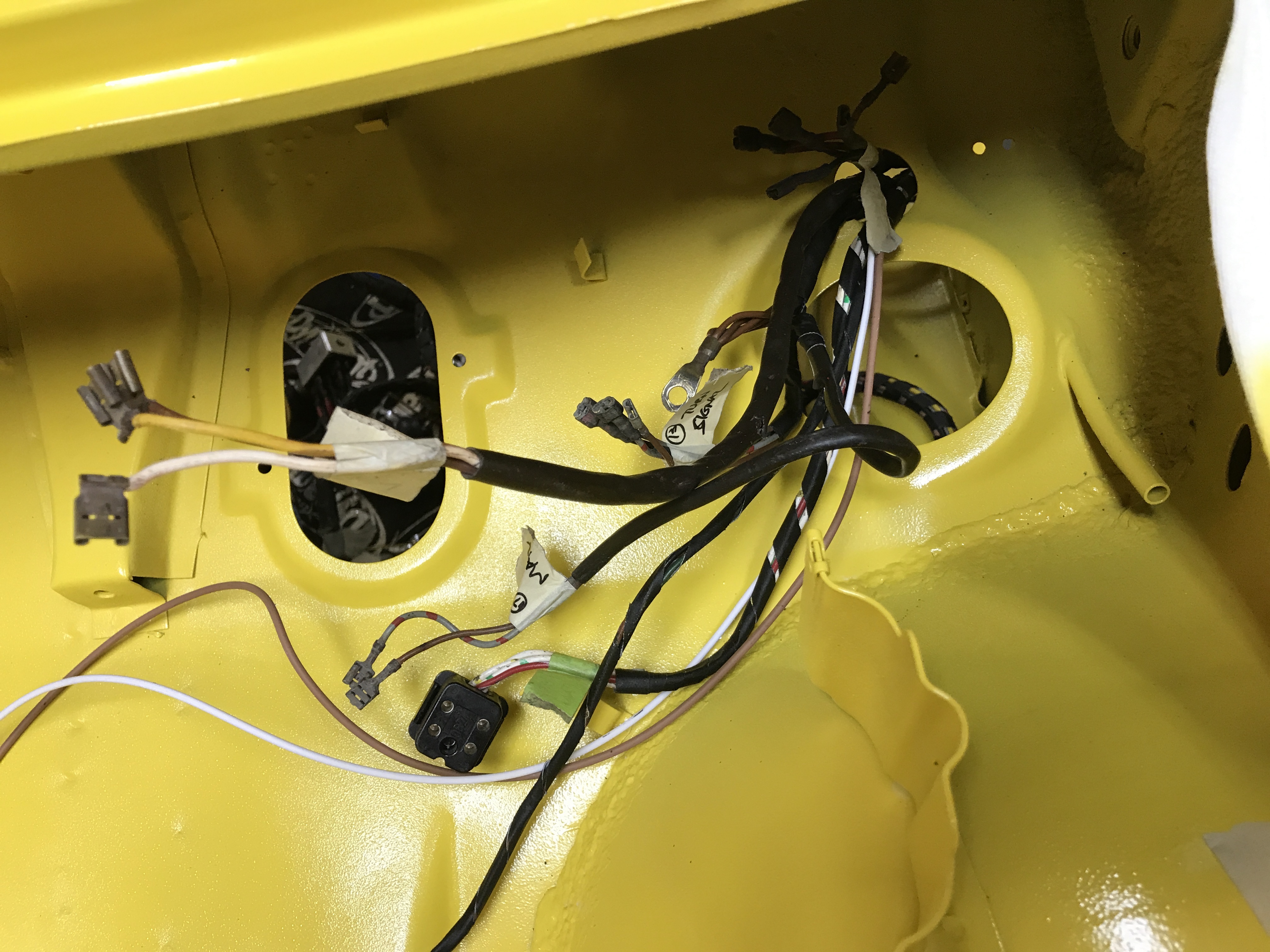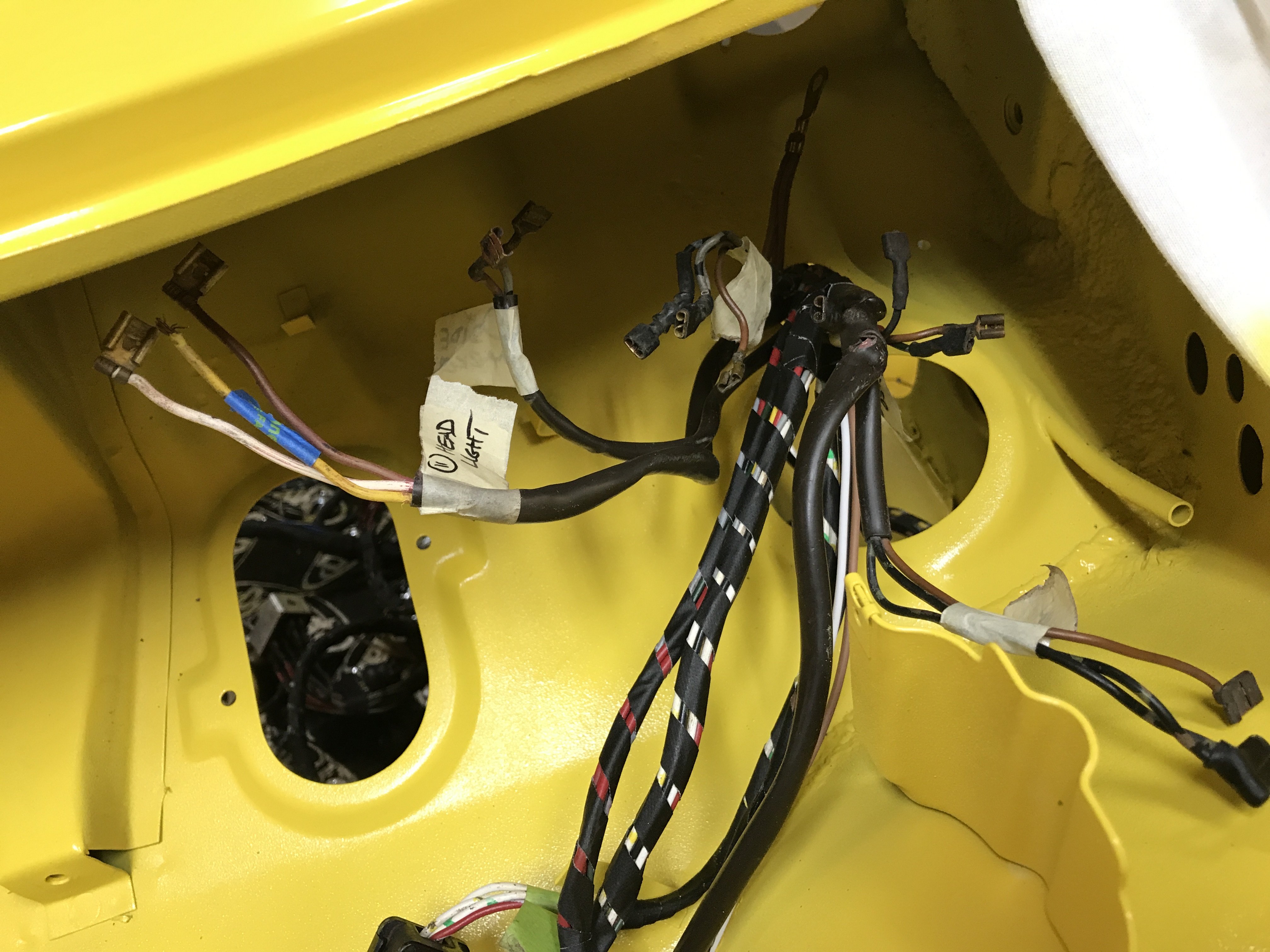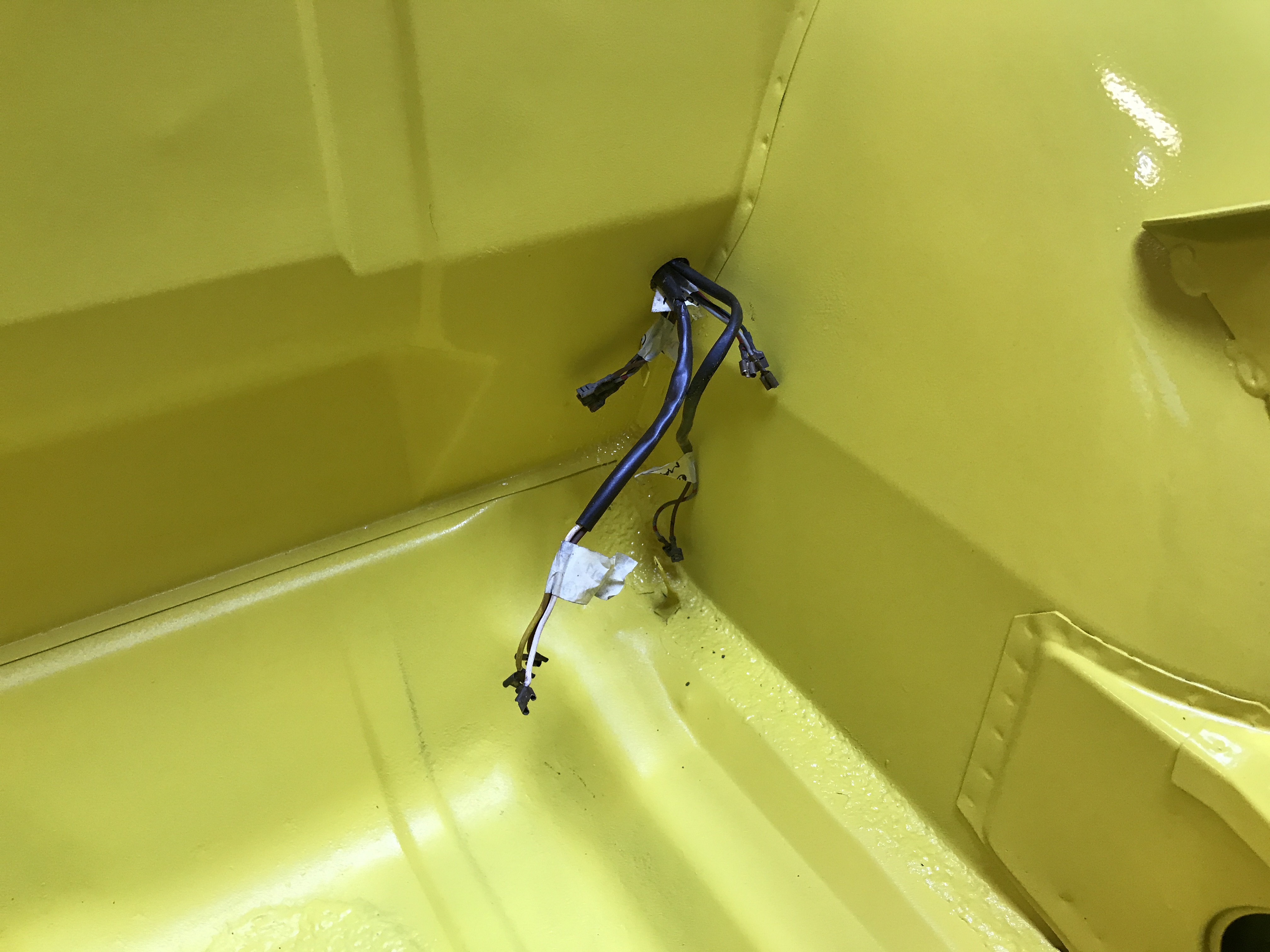 Next, the far ends of the front light leads. The unwrapped wires are for the future washer pump.