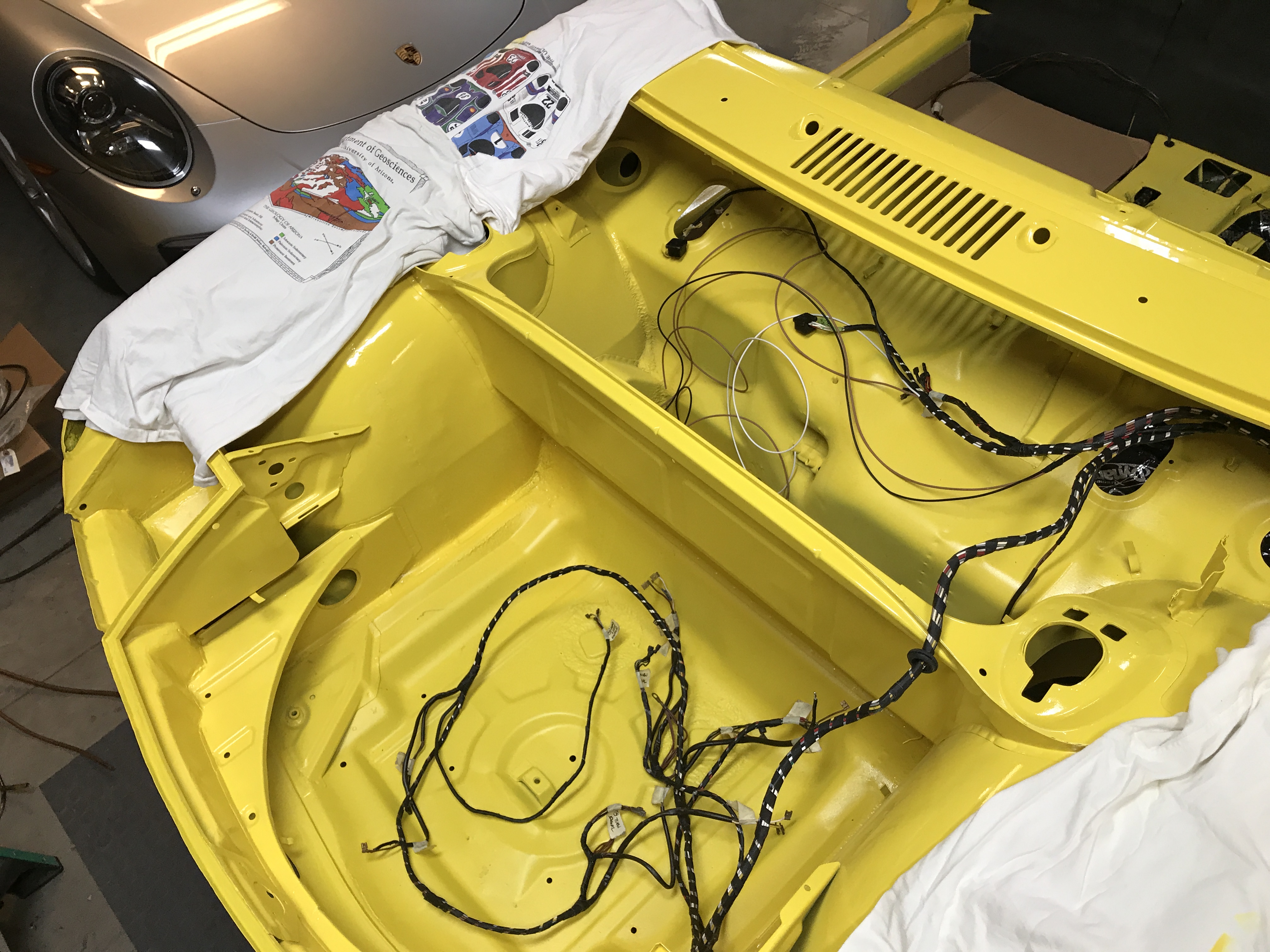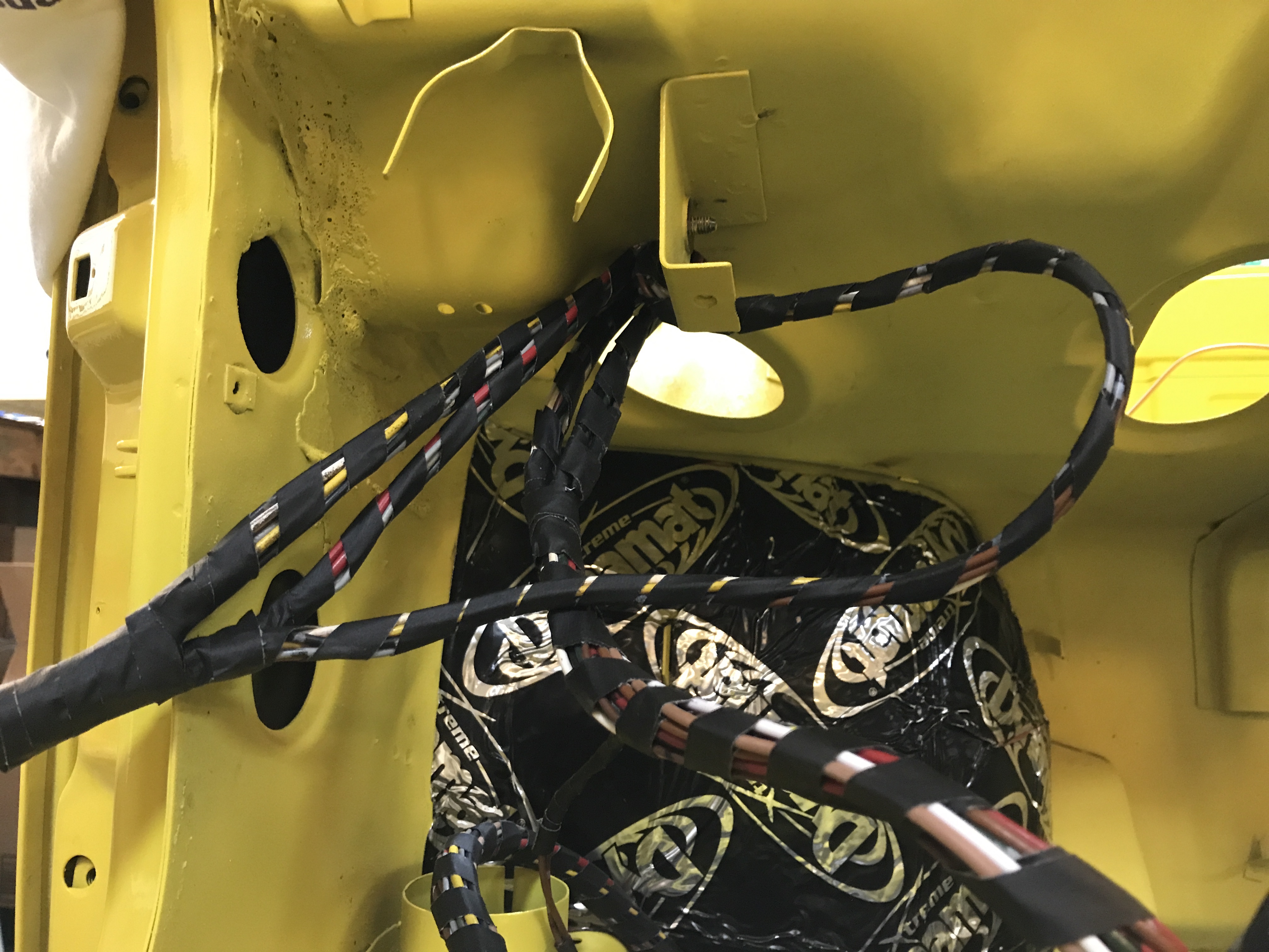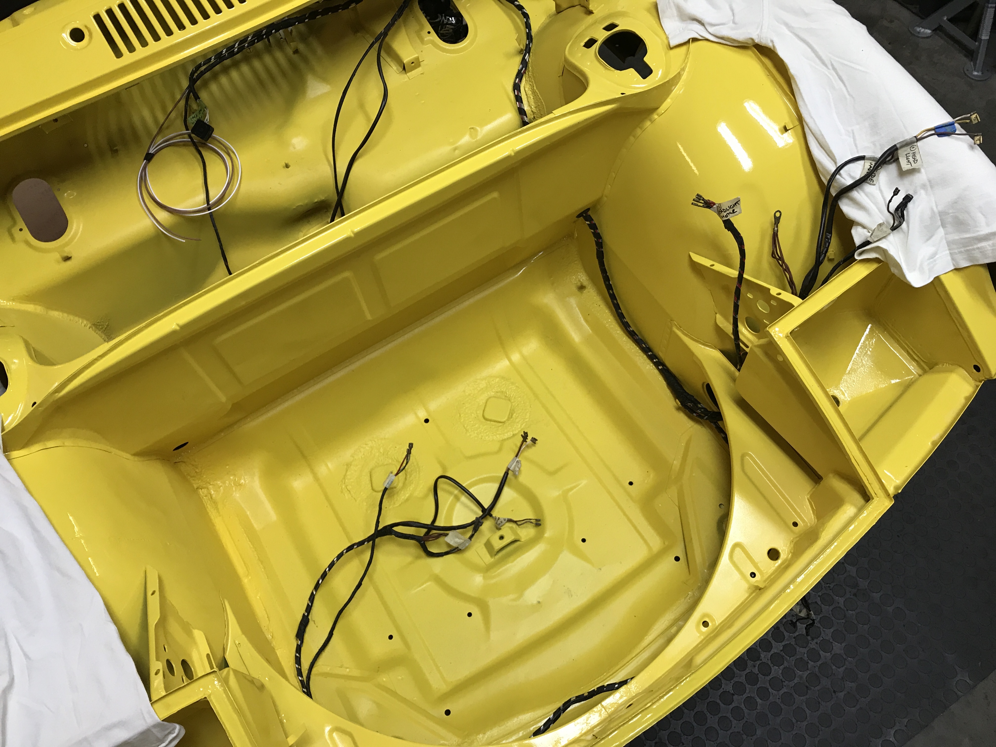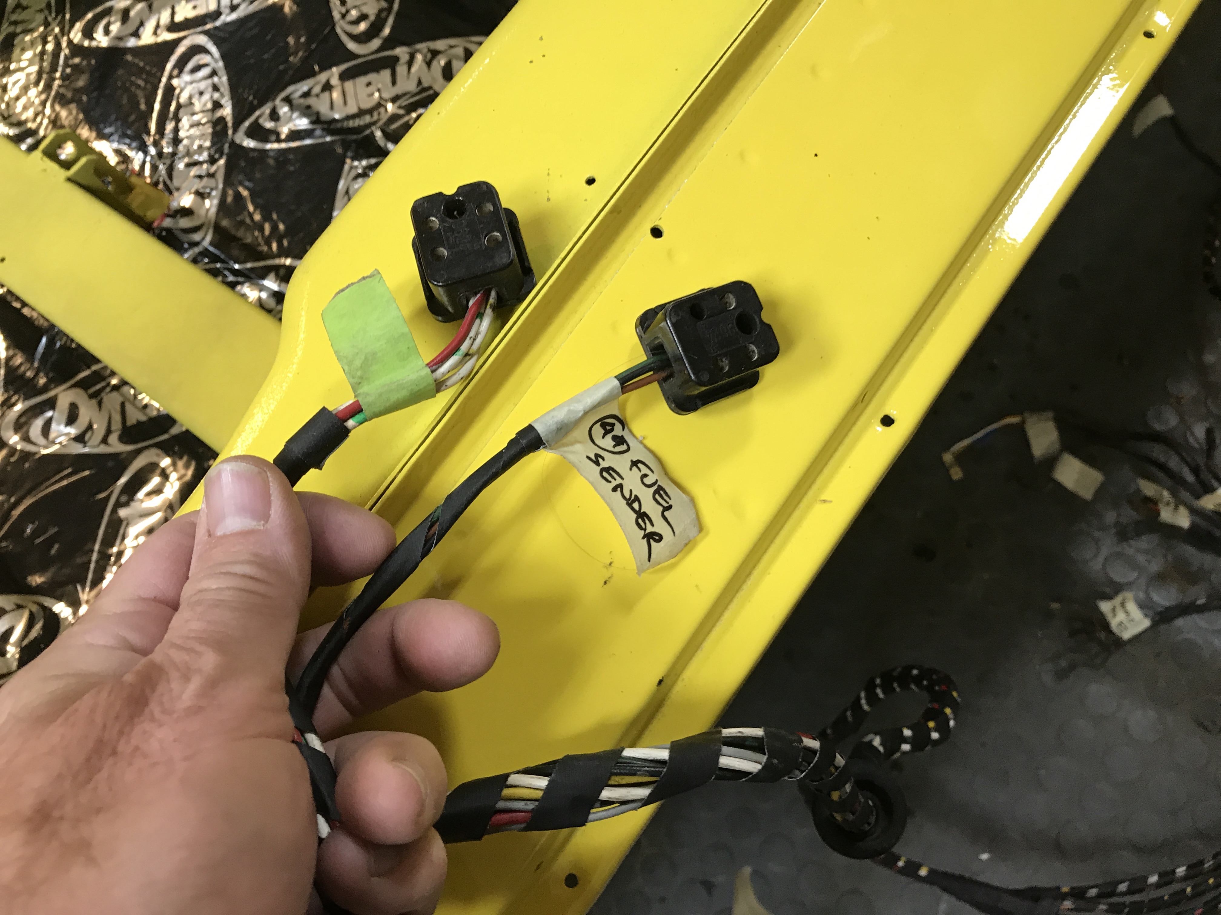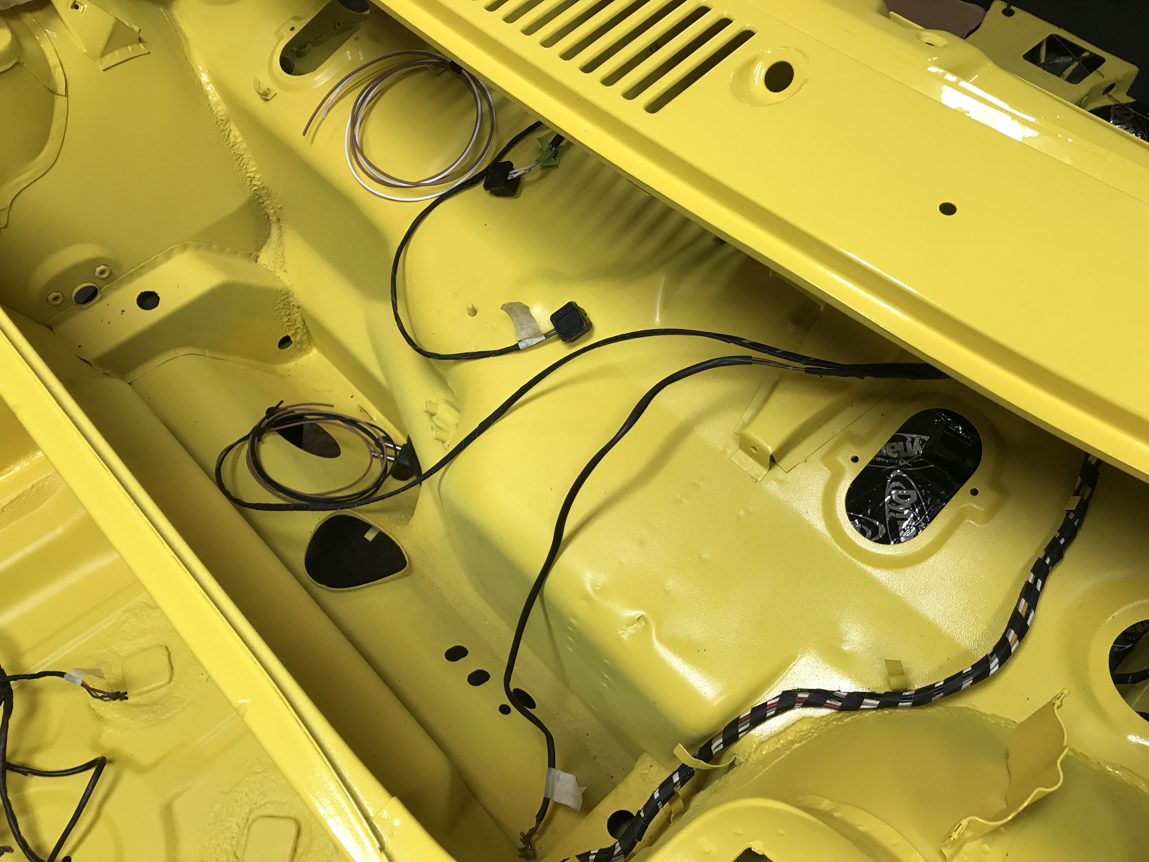 Next, the far ends of the front light leads. The unwrapped wires are for the future washer pump.