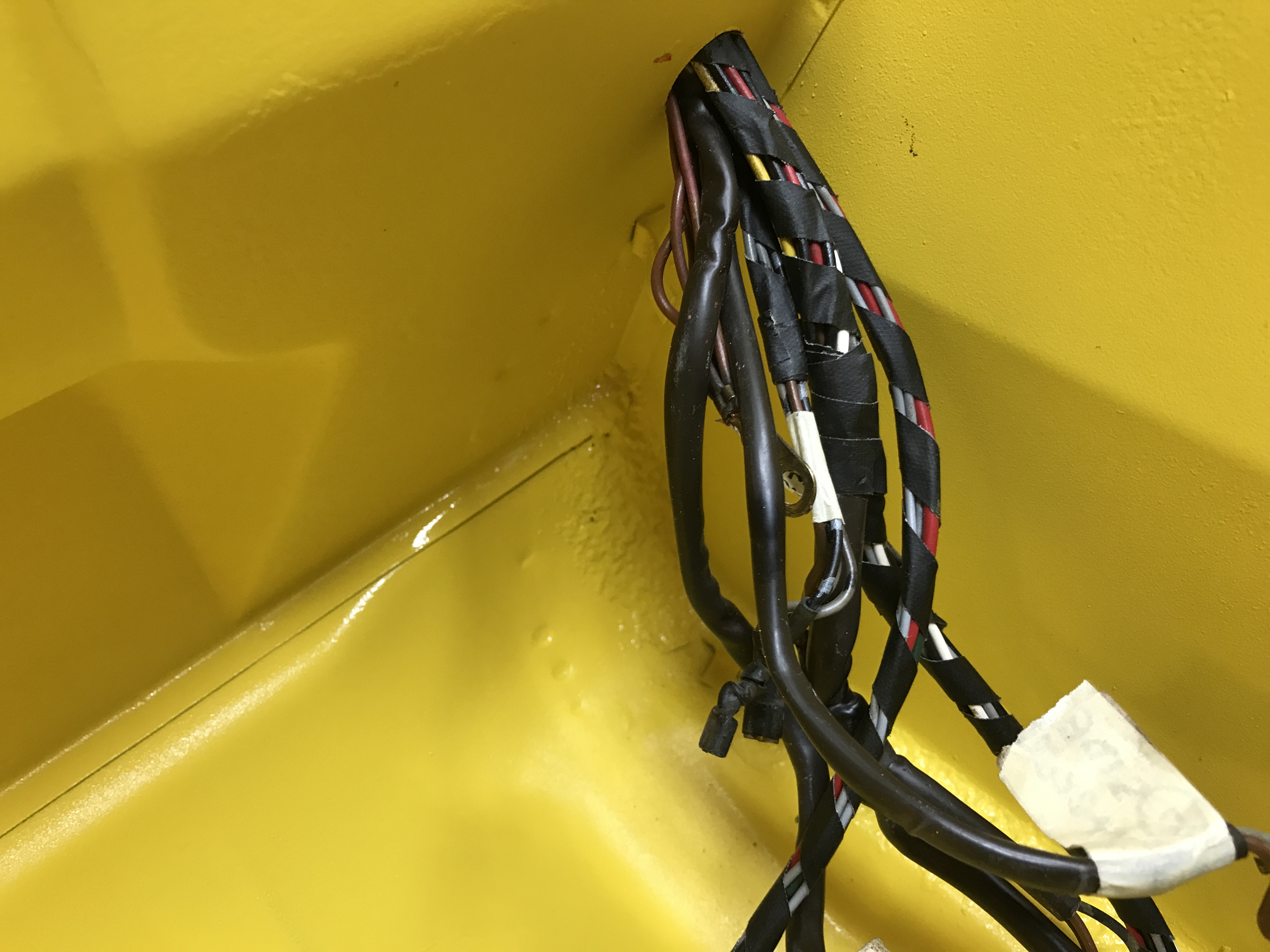 More leads started through the hole. Note the big flag connectors (upper left) are for one of the headlights, and do not have the large plastic connector plug around them (yet).