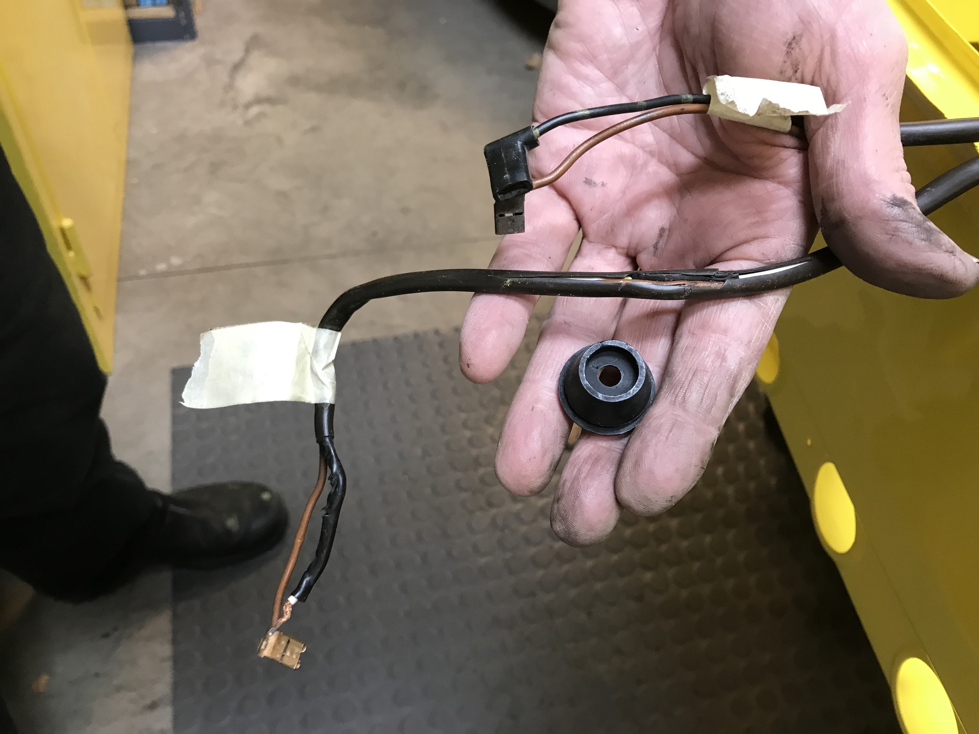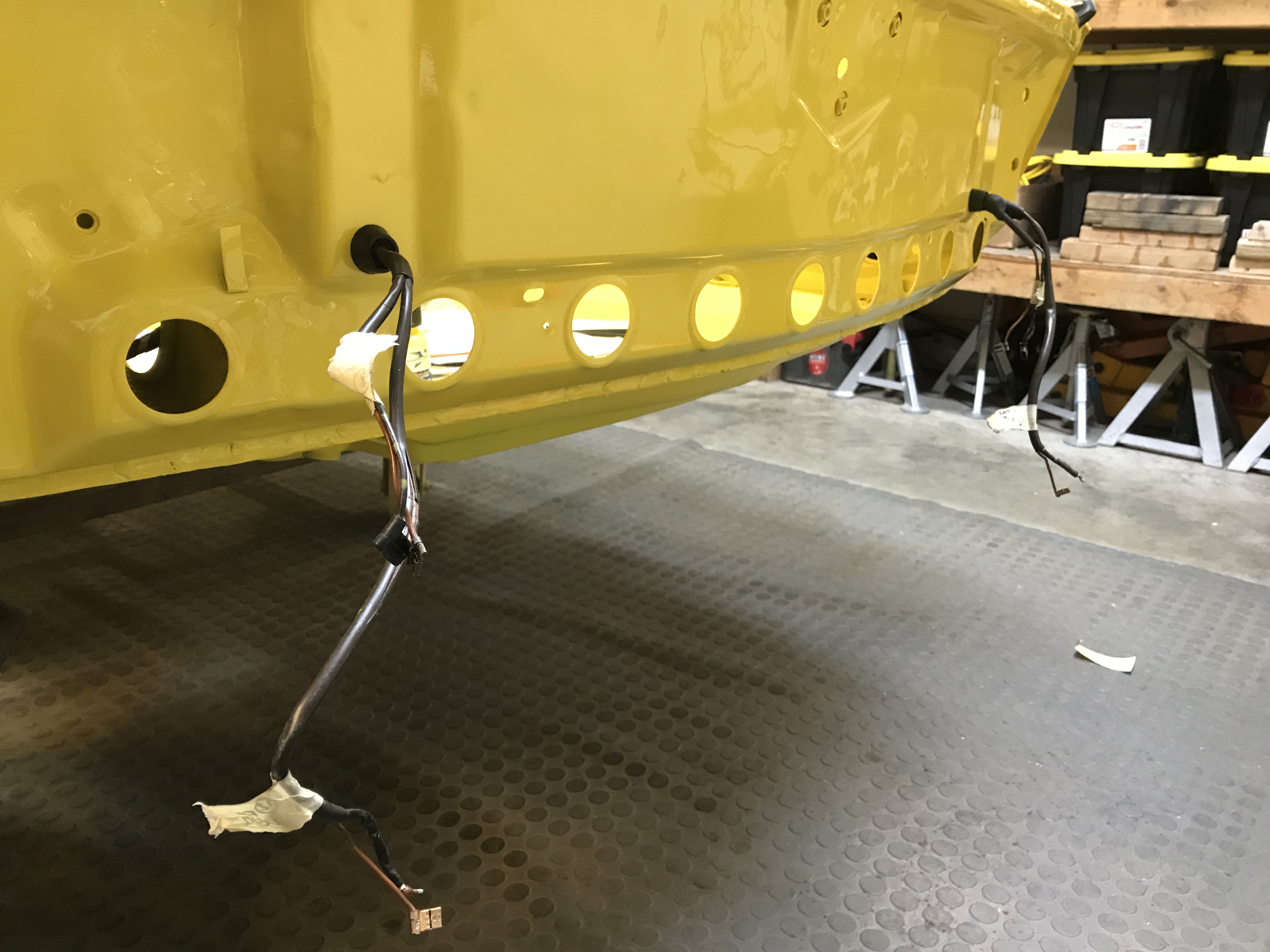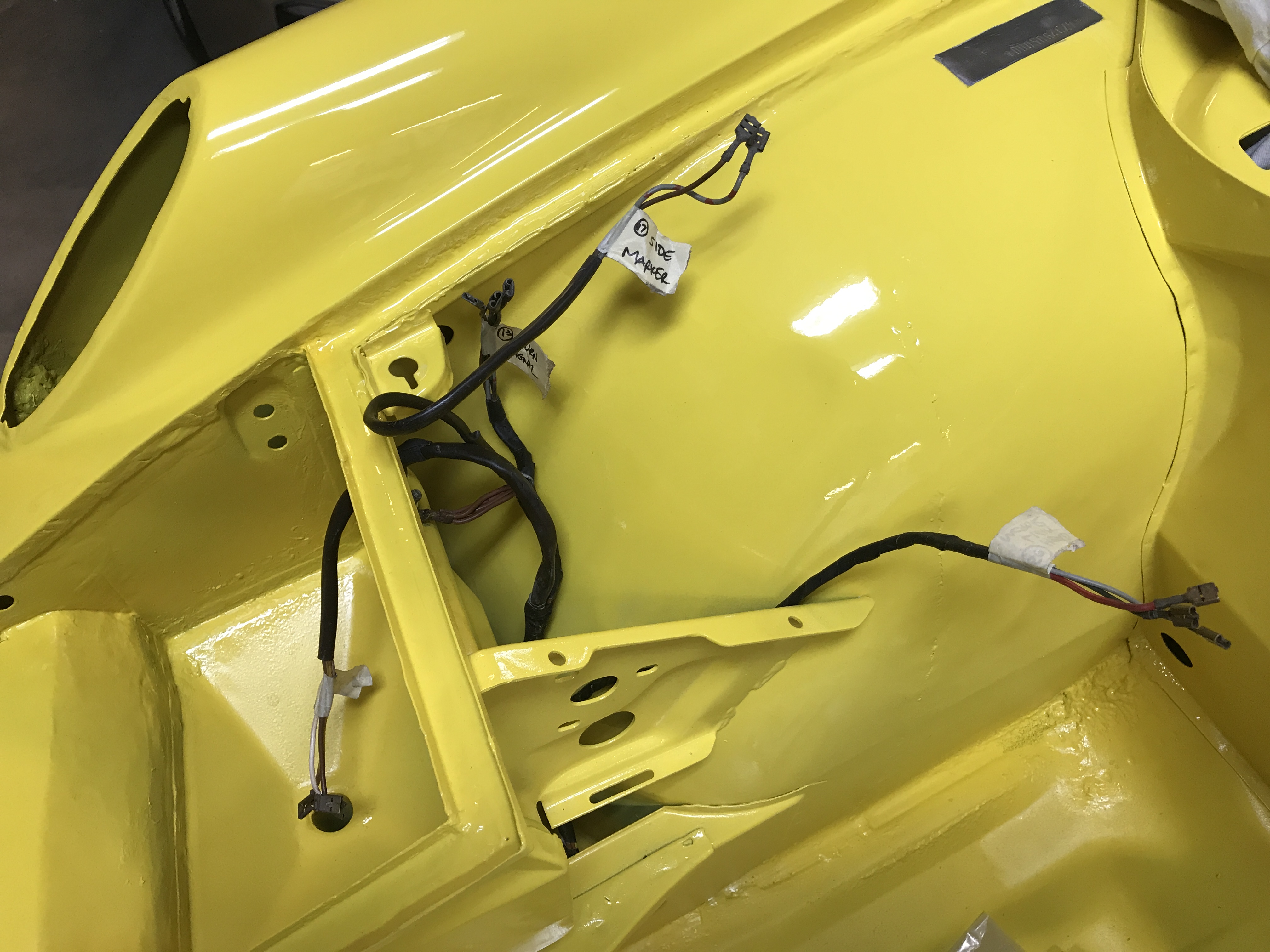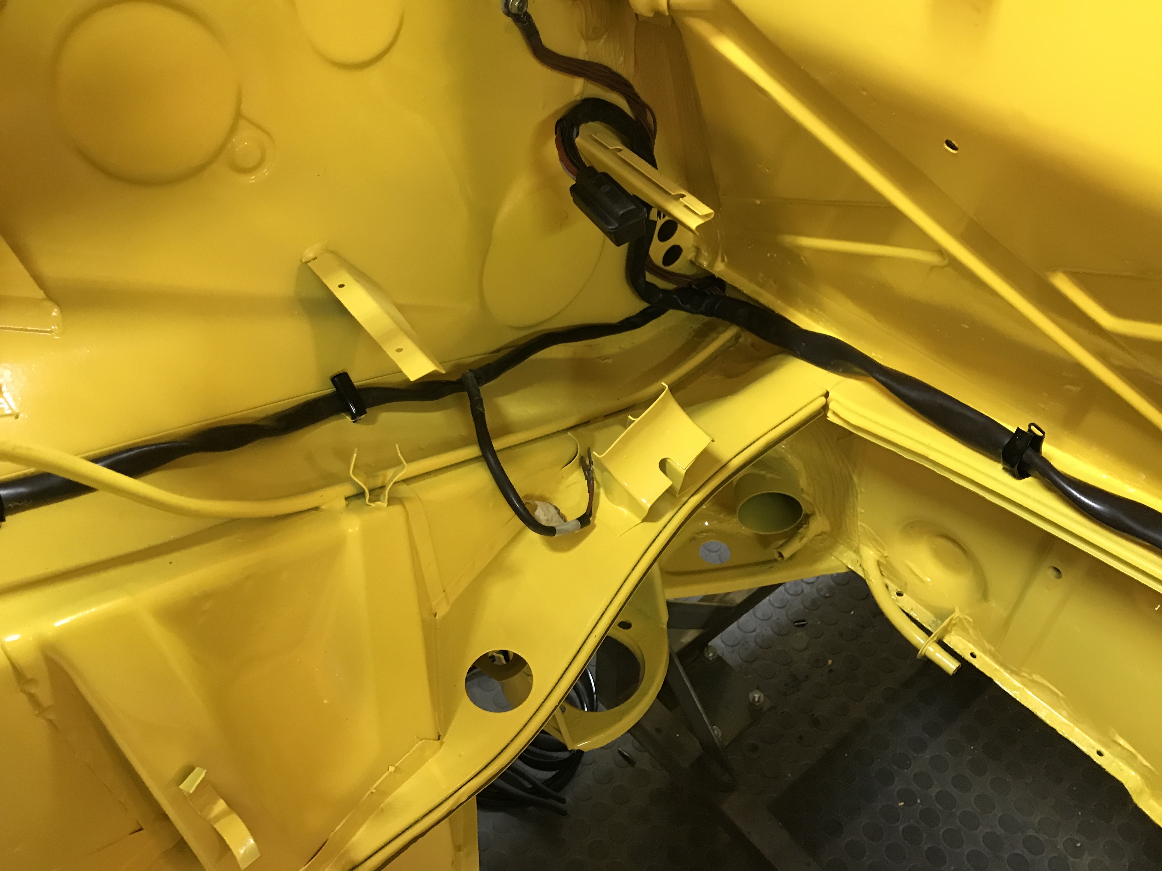 More work on the front harness today, getting things in place including grommets for both the leads to the fog lights and horns, and to the head lights.