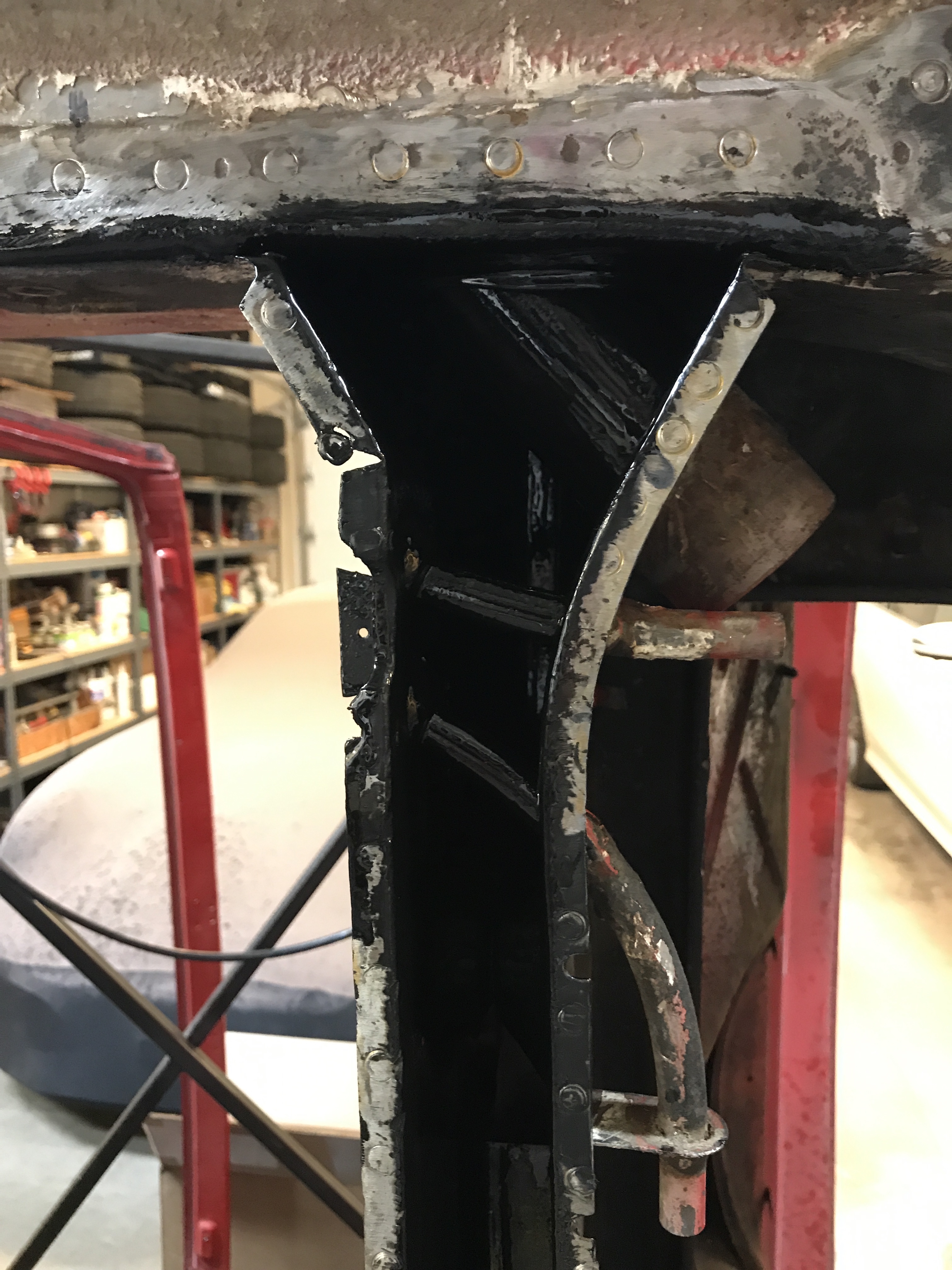 Jumping ahead to #5: treating and painting the rust inside the lower firewall.