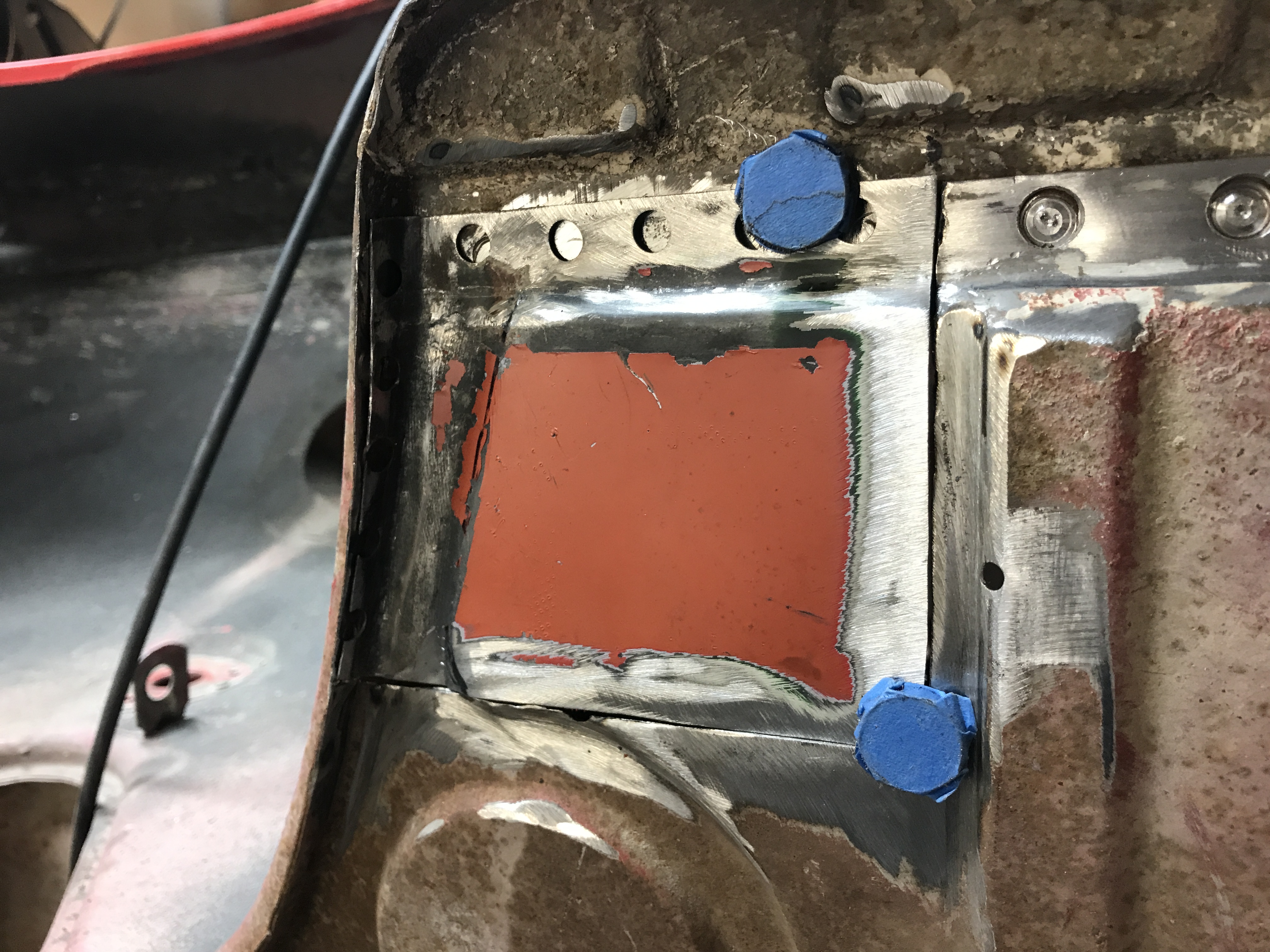 Item #4: the. front floor corners. Here's the patch for the left side, again made from genuine 914 sheet metal. Attached thumbnail(s) |