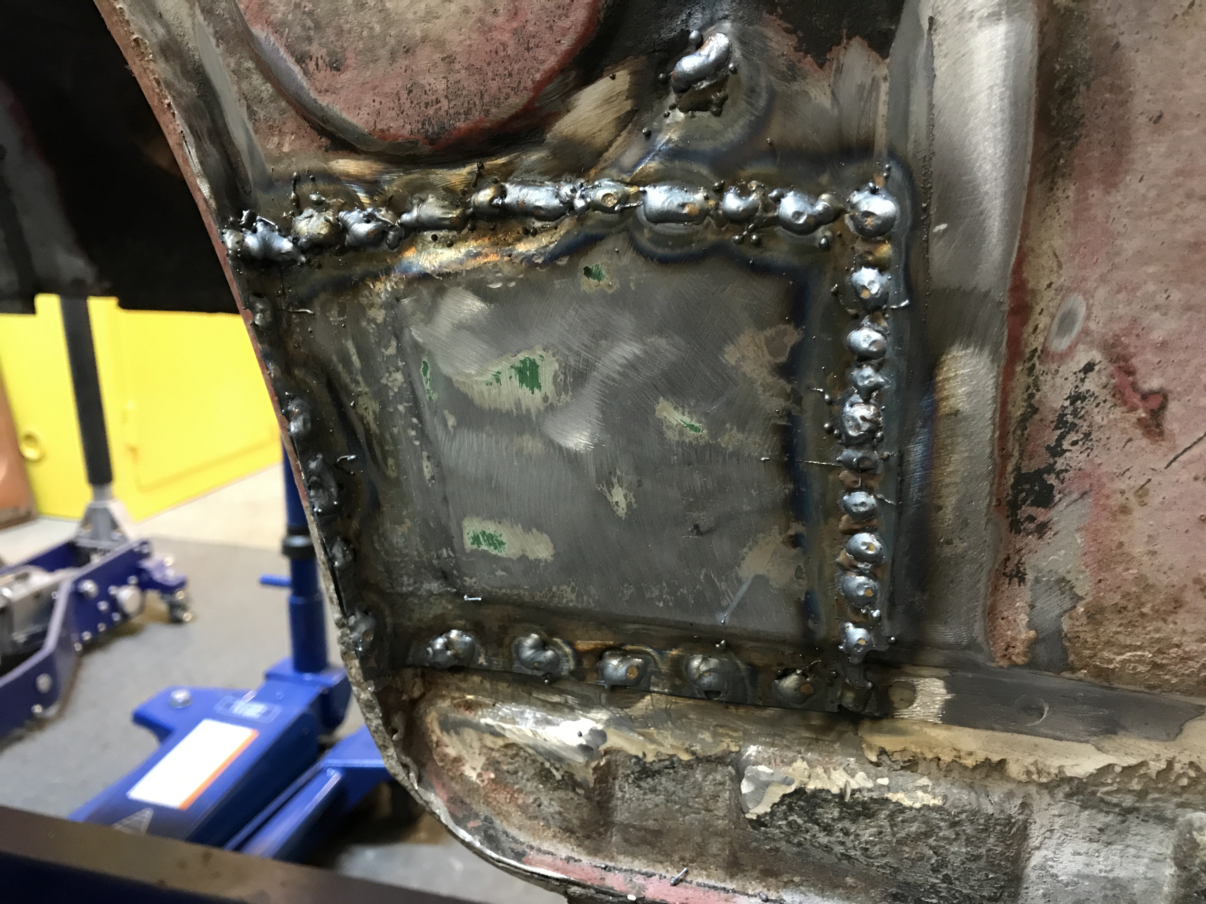 Left side welded in, and a quick grinding. A few spots to re-weld and then grind it pretty.
