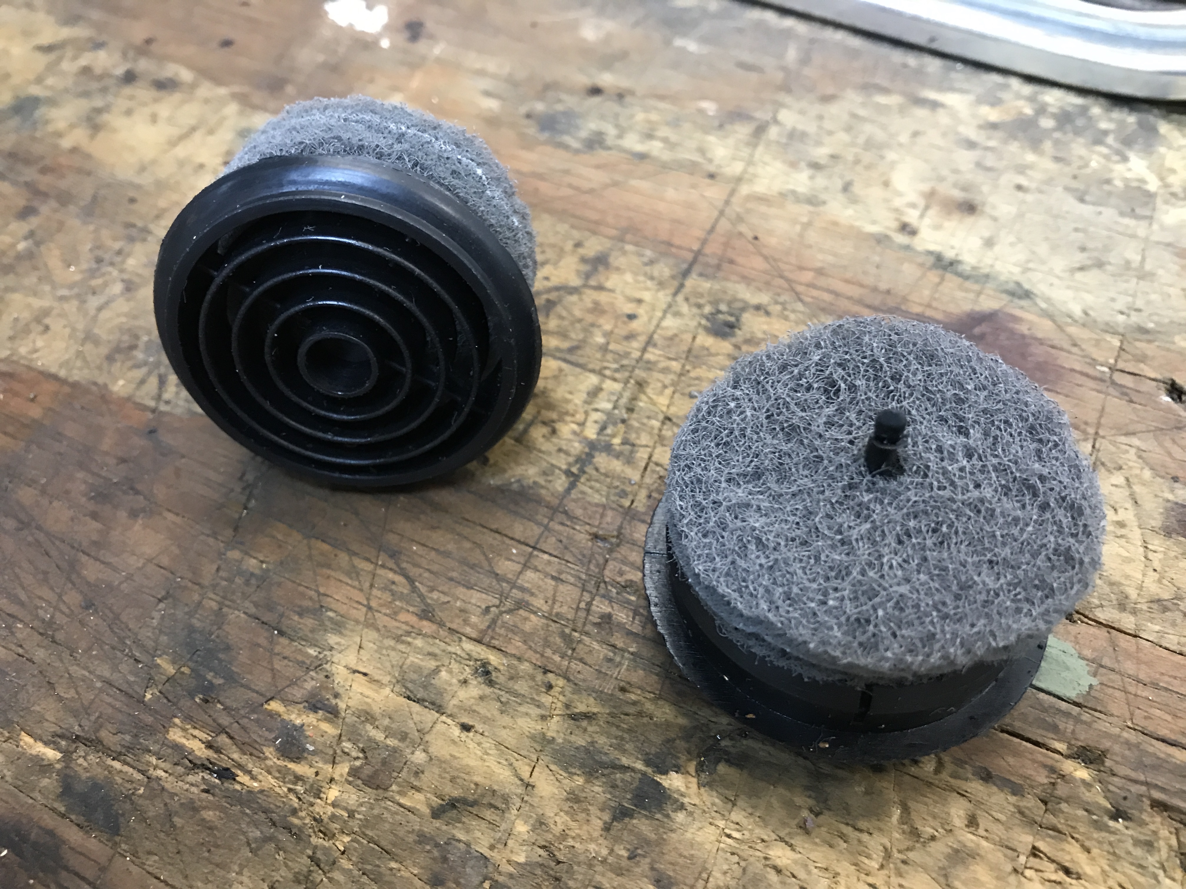 Then the new grills and filters for the door jamb air vents. But these seem to lack a retainer for keeping the filter on the central spike.
