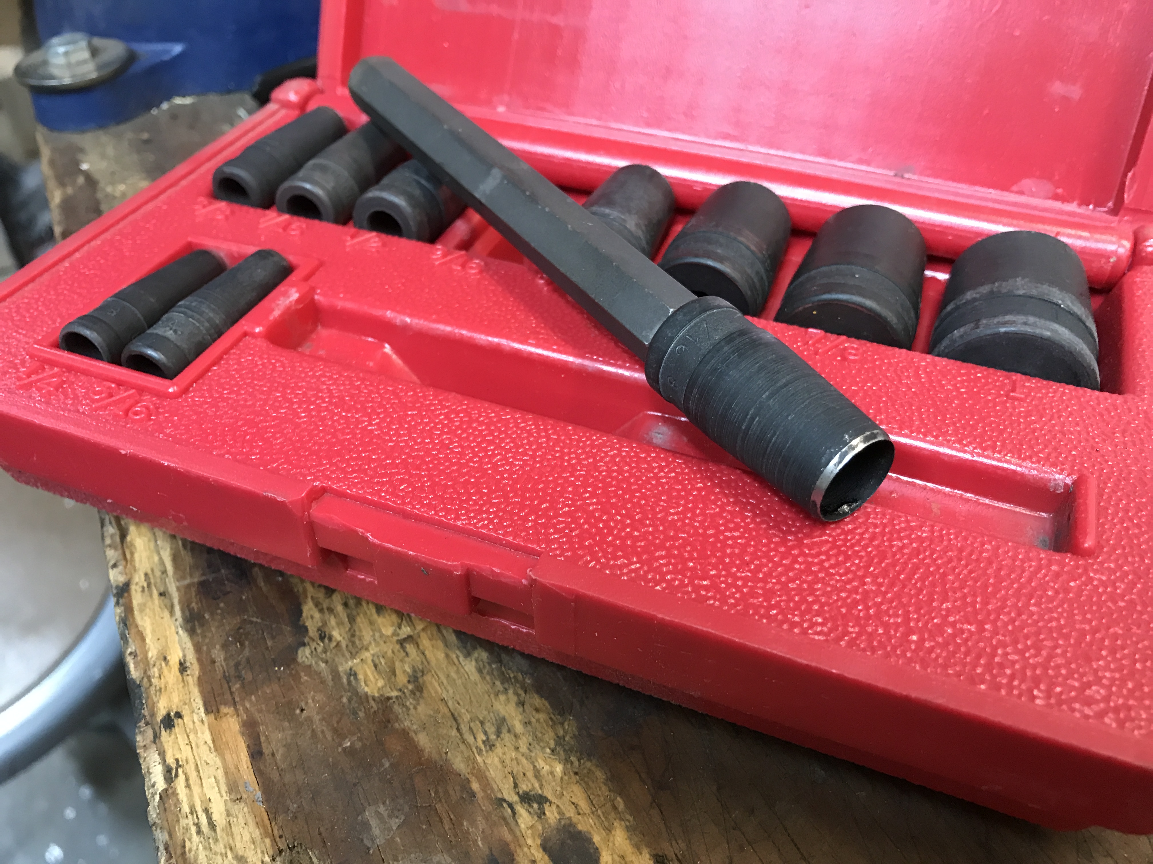I found some scrap stiff rubber sheet, and got my hole punch set.