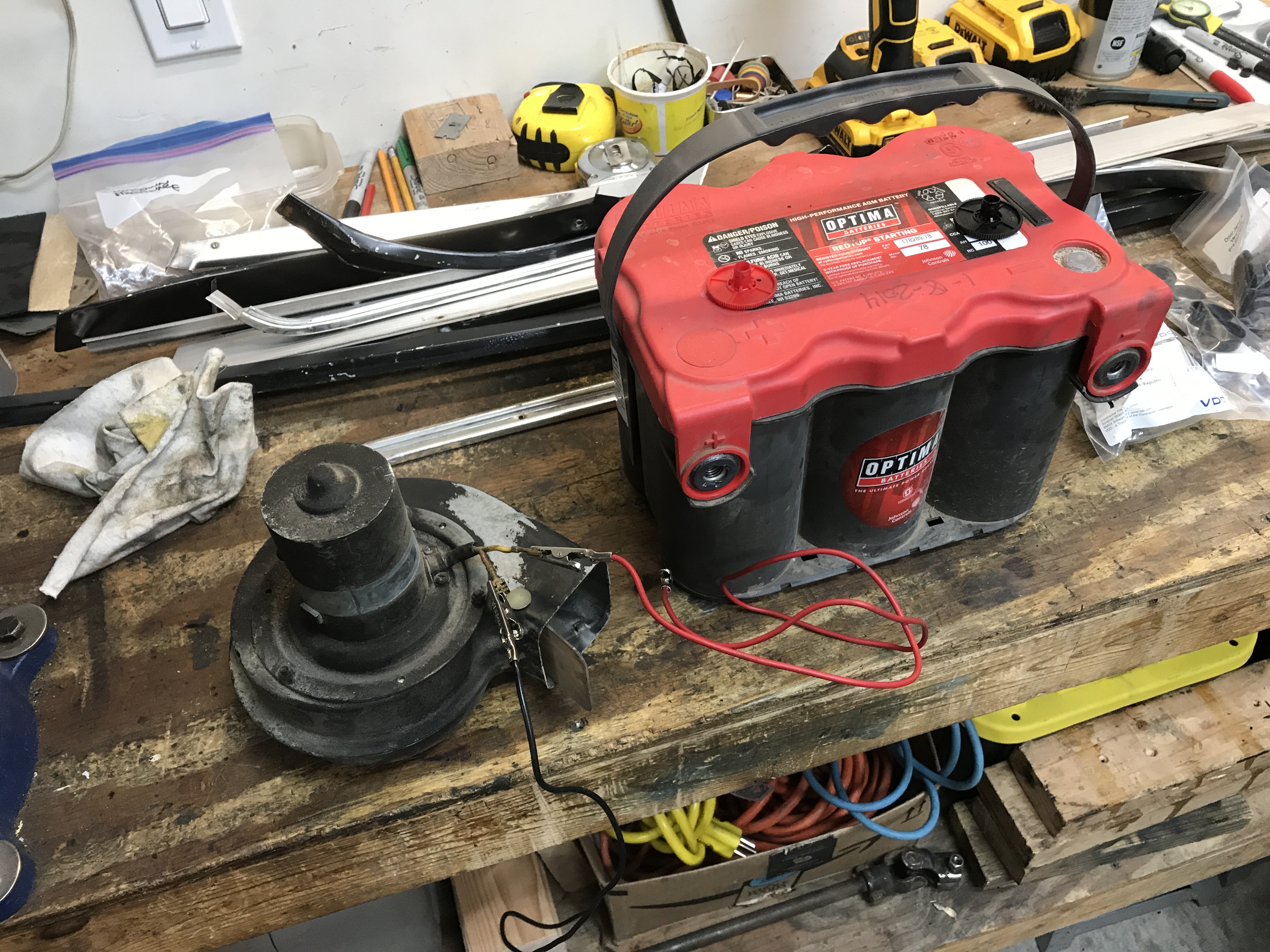 Then the main business of the day: testing all the electric motors. Here is the heater blower--it runs!