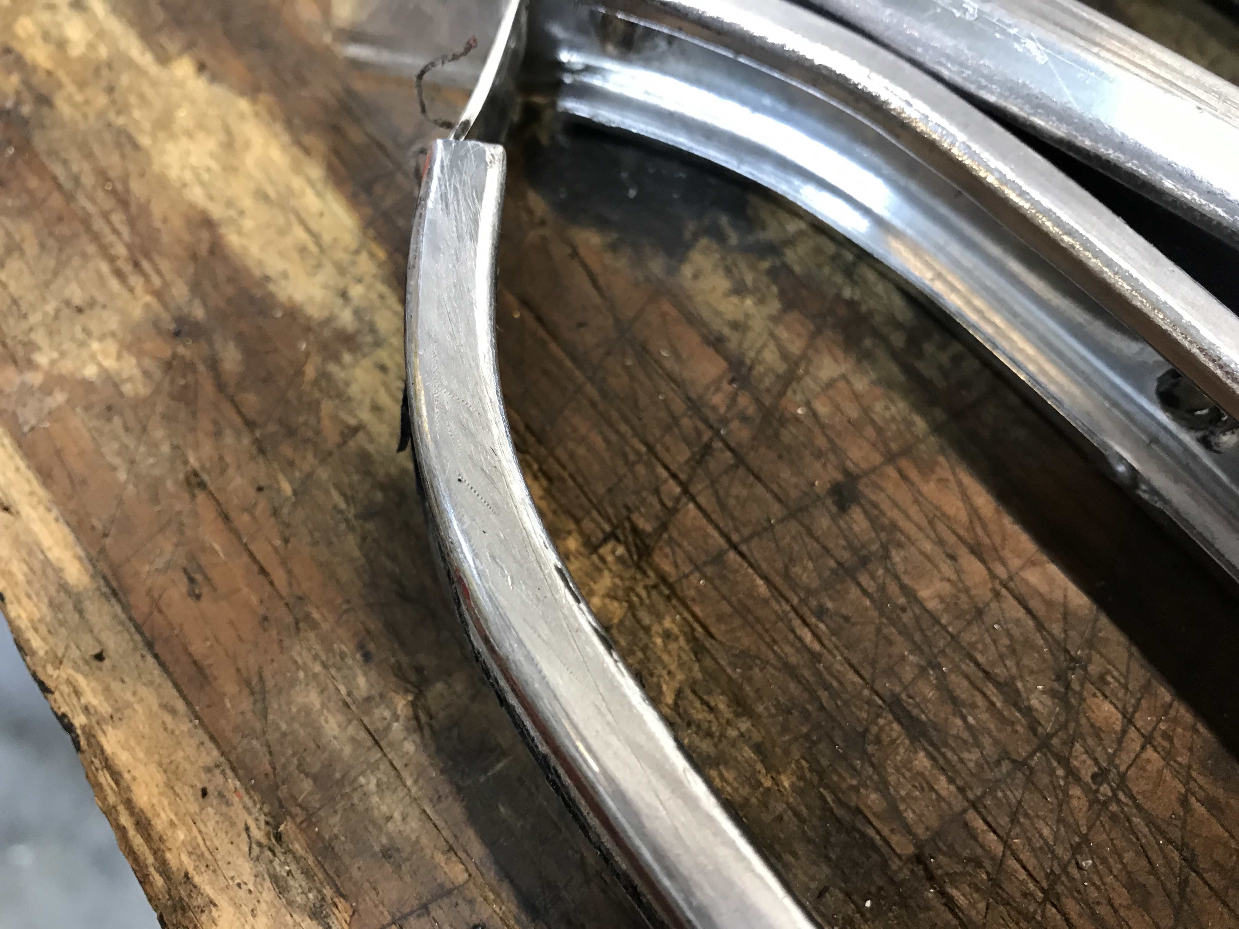 Same story on the blacked-out window gasket channels: sanding under the paint.