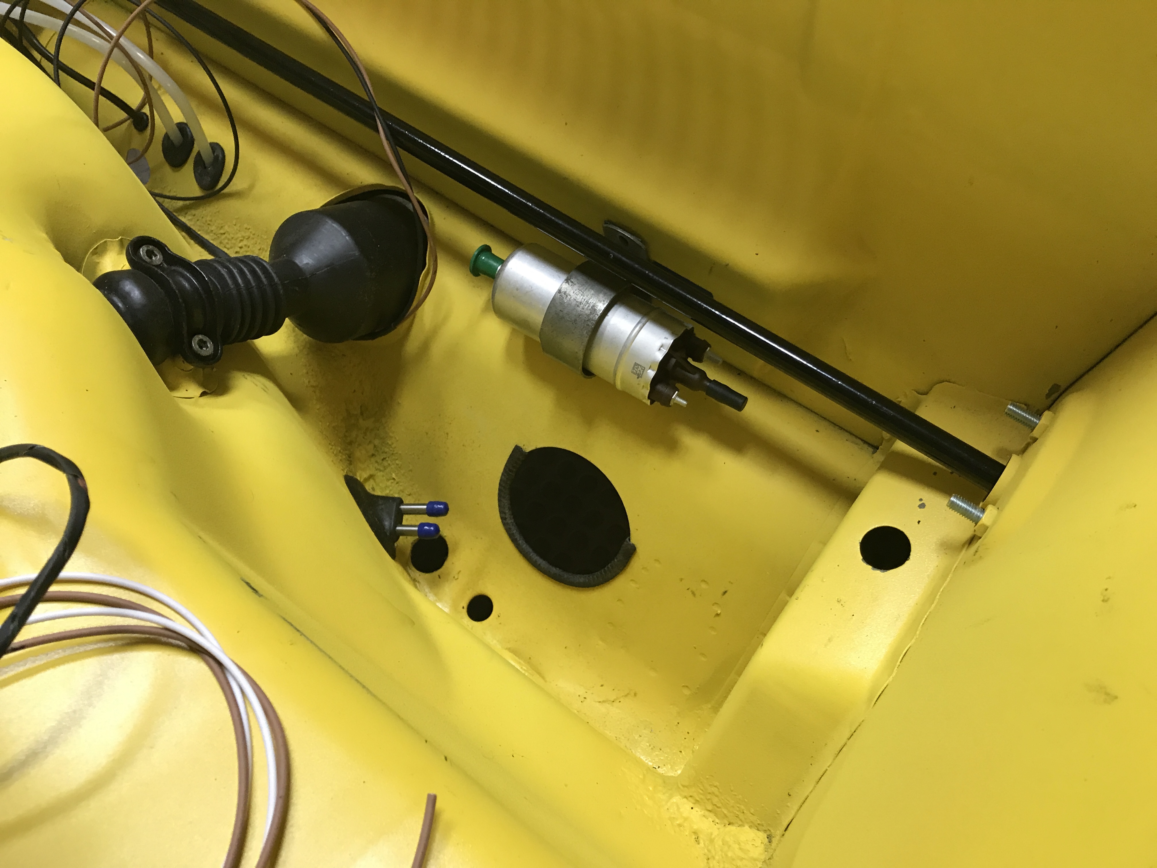 And I started on installing the relocated fuel pump. This might go under the tank, inside the body shell.