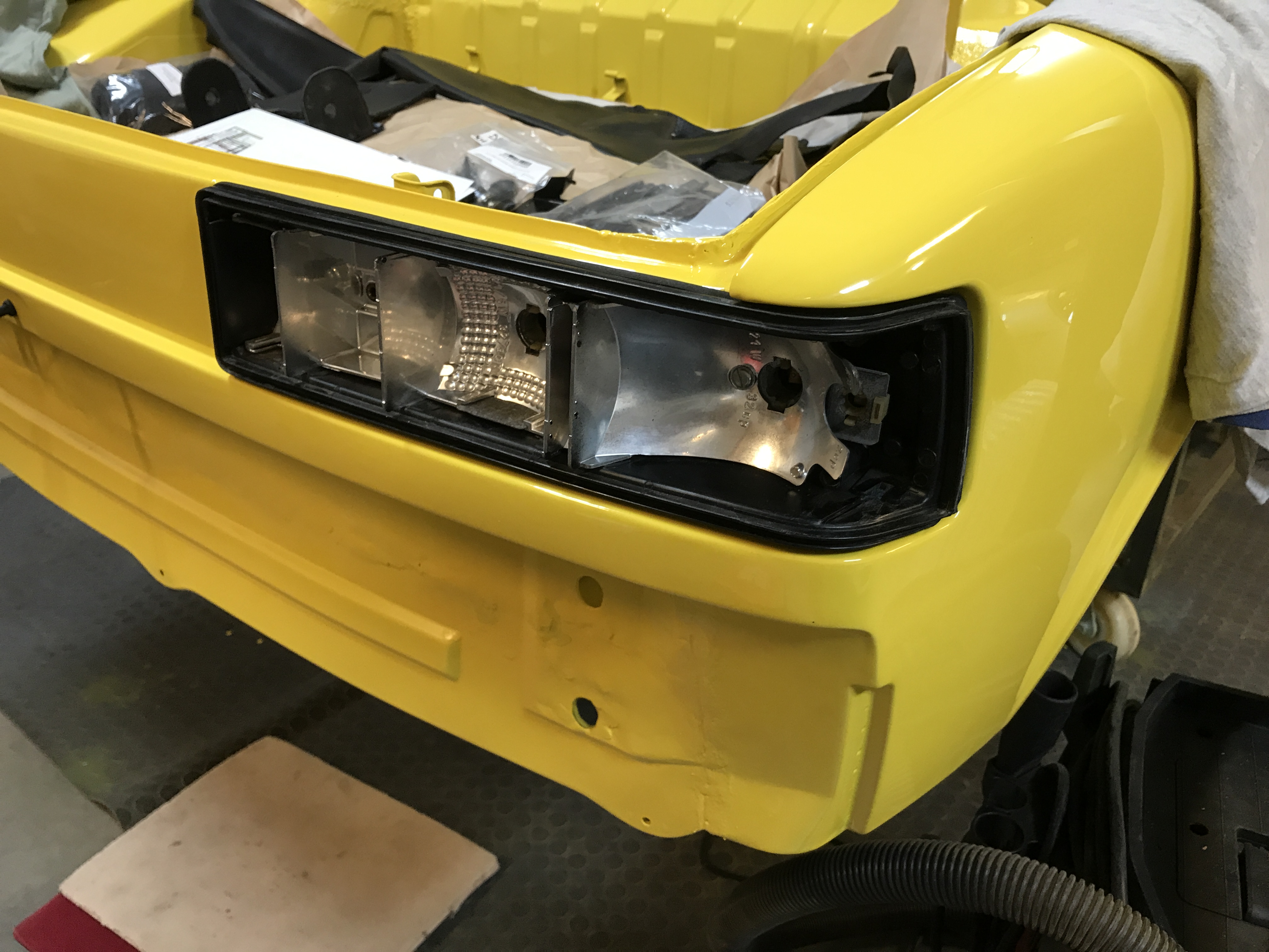 Good idea, Mark. Here's how it looks--probably OK. Funny how in sync our builds are. I'm just finishing up a video on this. I now not only have car-envy, but gap envy as well. your car is super straight. As you know by now, those brackets have a little play in them so you can line things up. Check the gap against the hood in the down position as well. Also put the brow in and make sure there's enough clearance before tightening the brackets. Good idea on checking the gaps with the eyebrows. But the real test will be on the right side where I replaced the headlight bucket and front half of the inner fender. Once I get the missing pivot I can install the headlight carrier and check. |