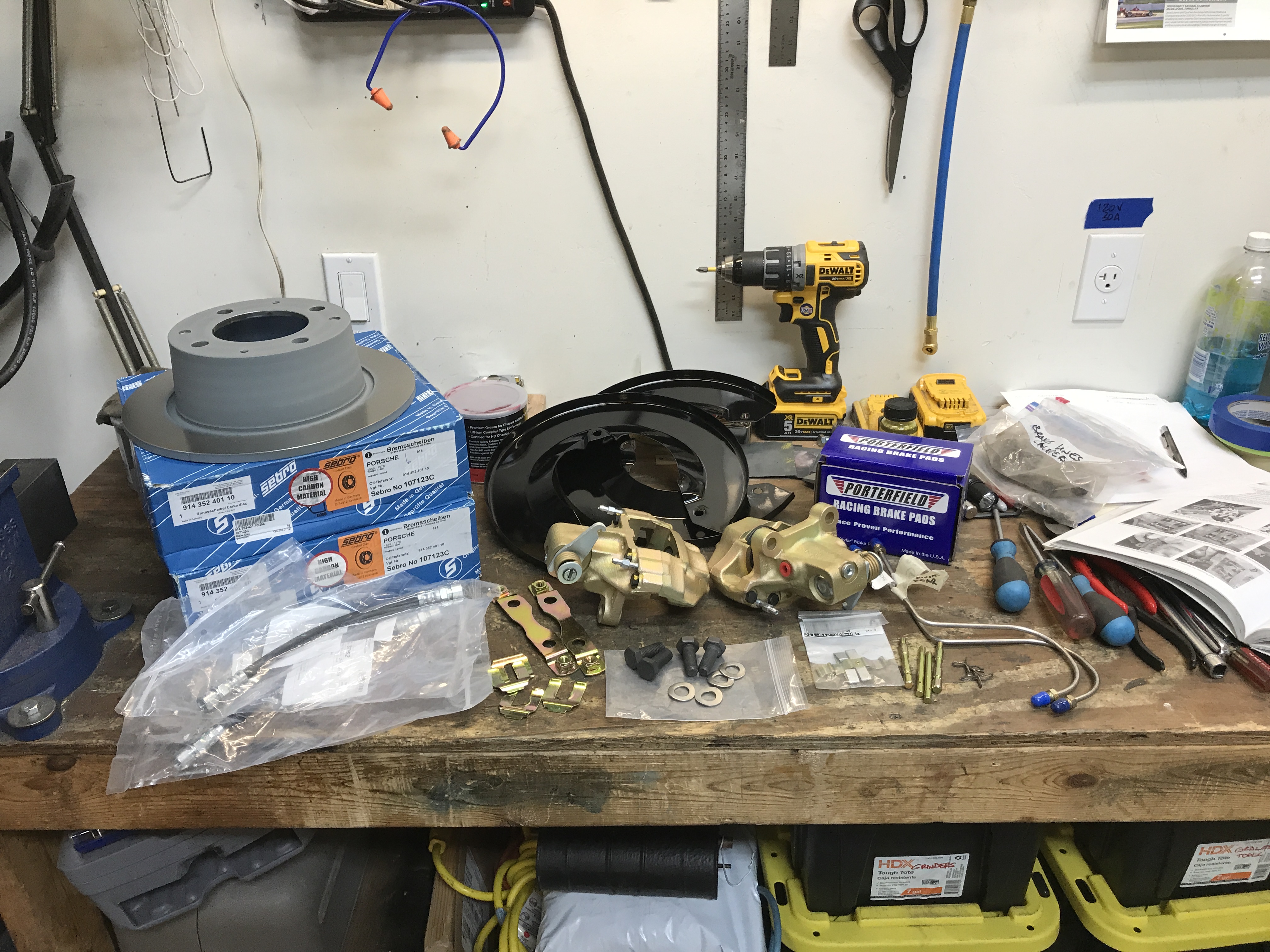 With the rear suspension in place, I can finish up the brake system. Here are all the new and rebuilt components.