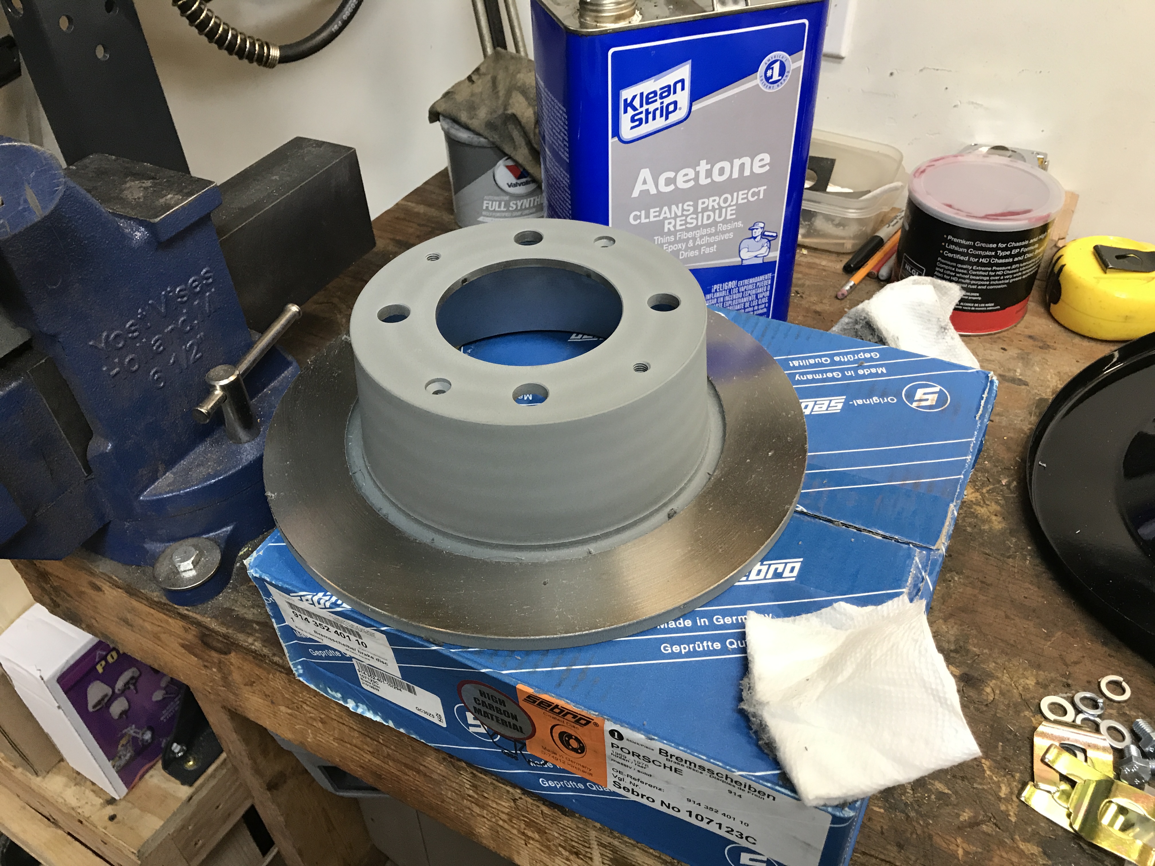 I got to play with the rear brakes today. Step 1, clean residue from the new disks.