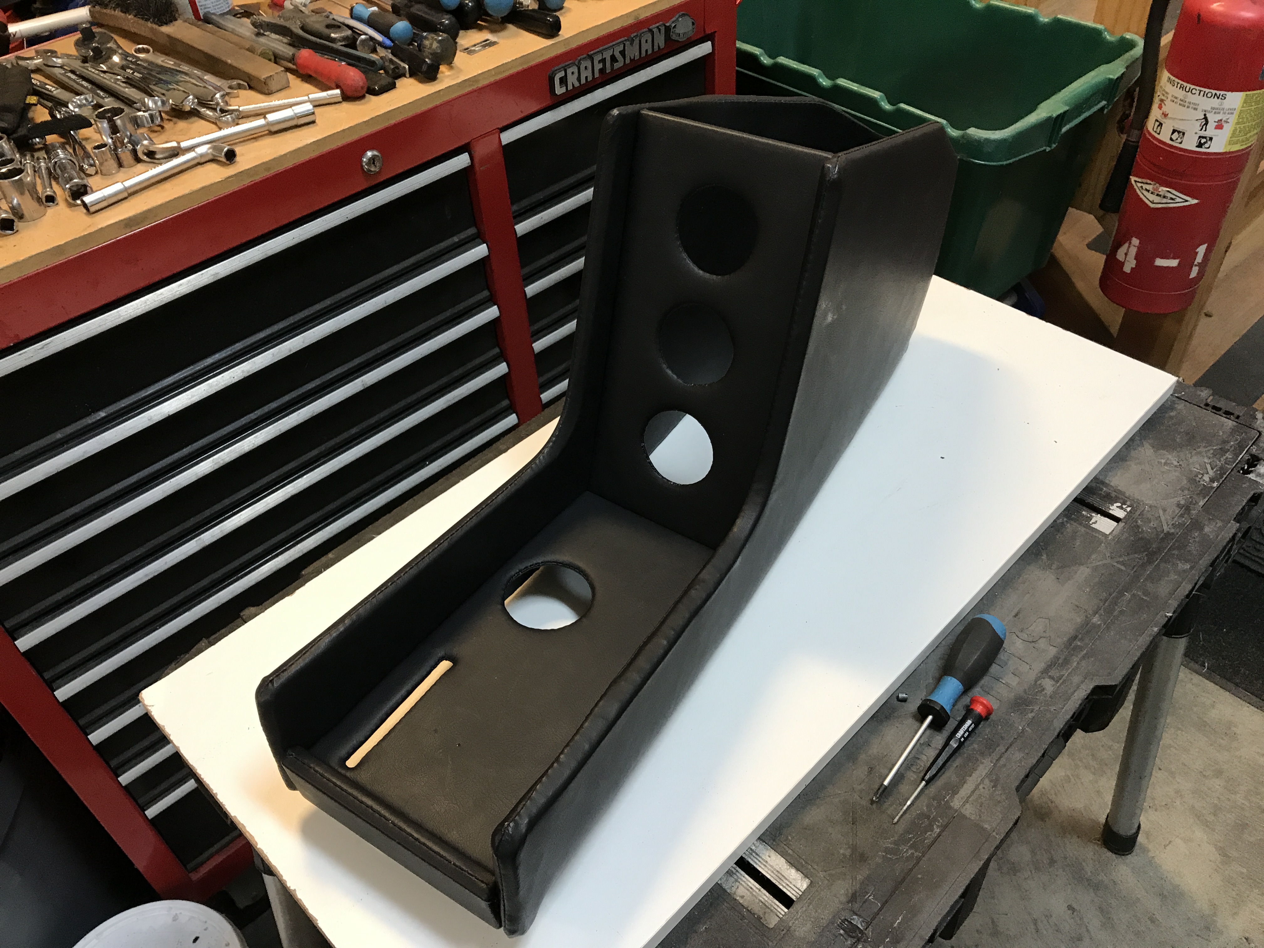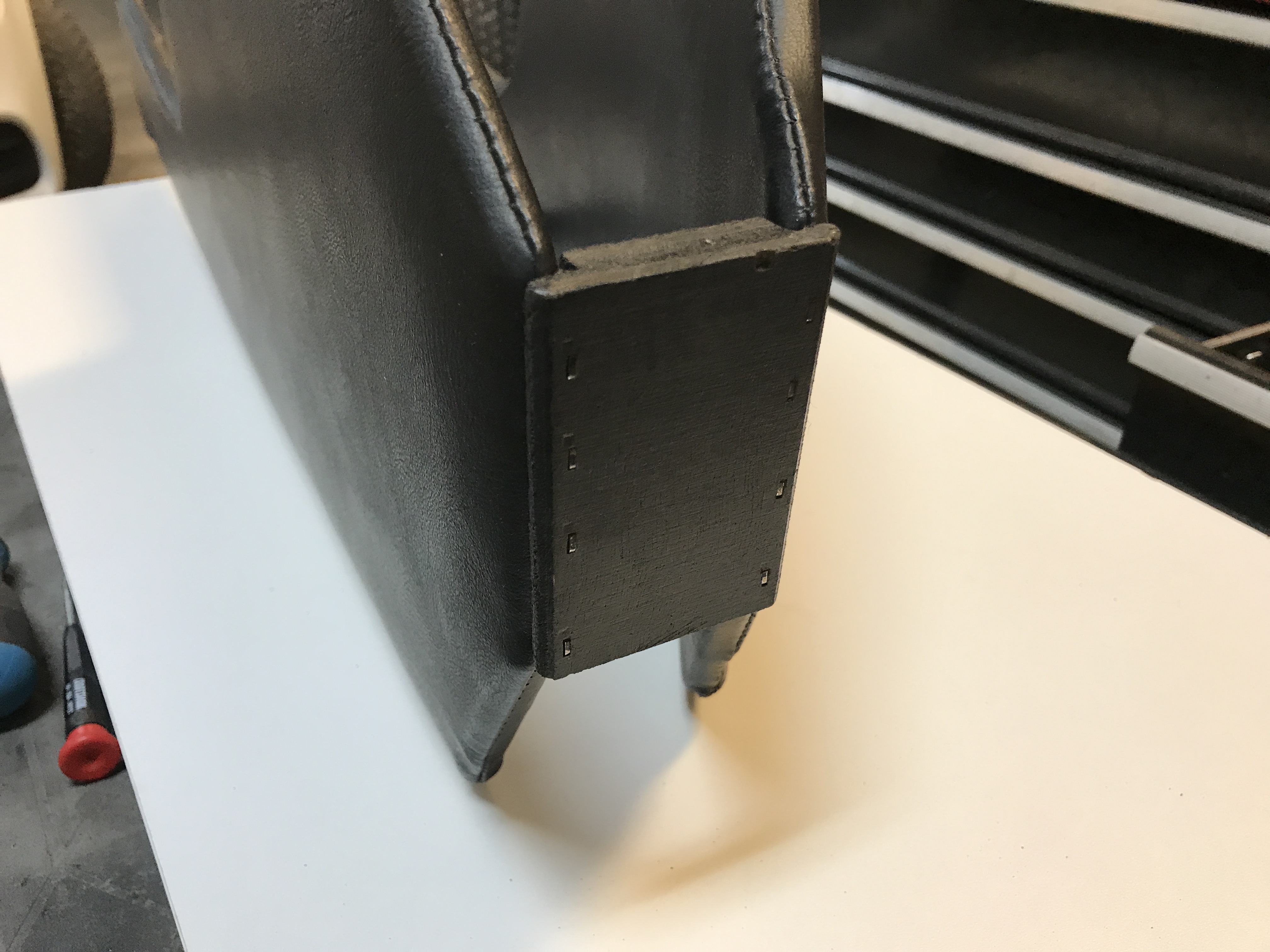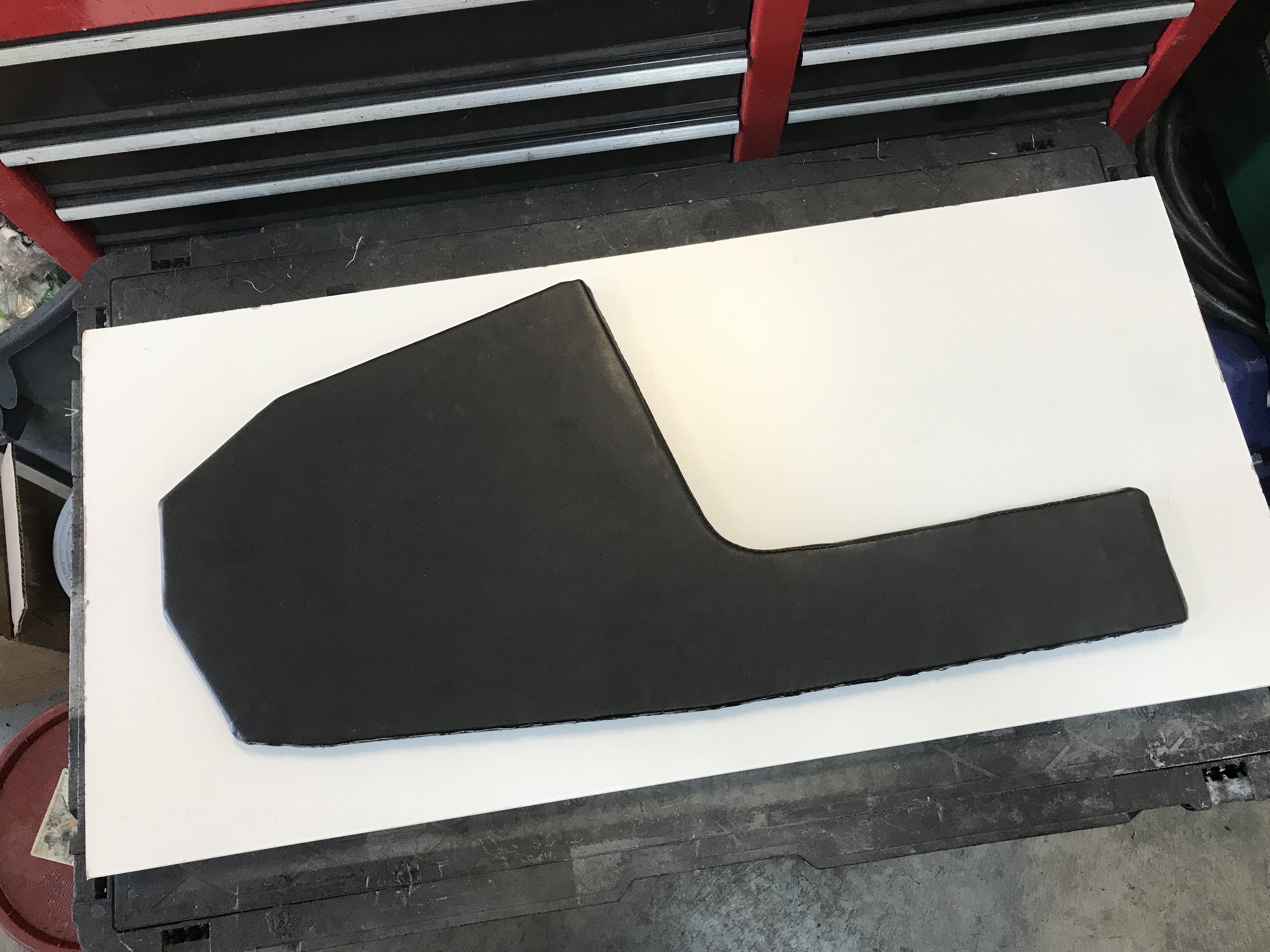All done, with the bottom piece and the gauge panel. I am 90% satisfied--just the top seam along the right side that is not centered.