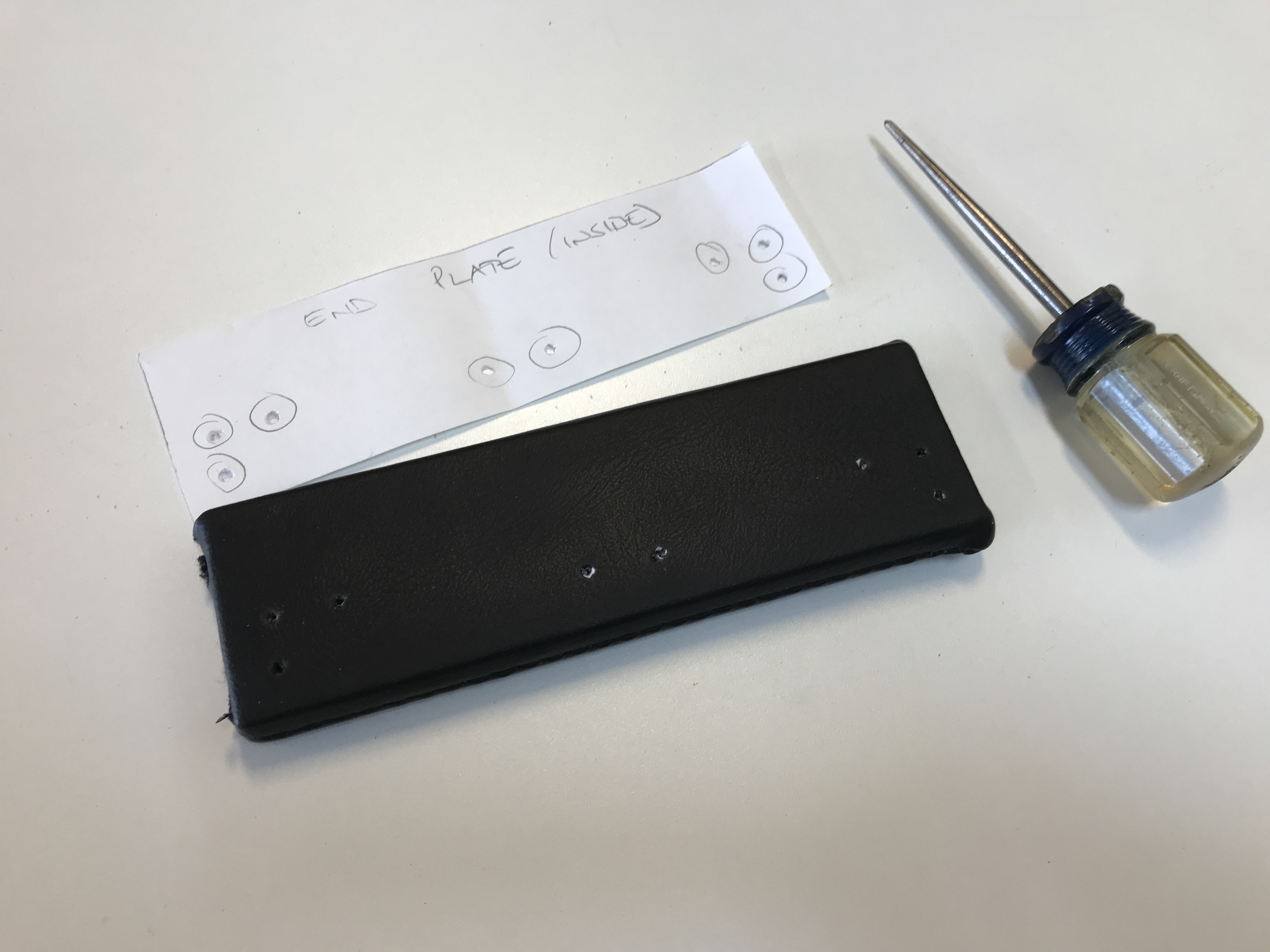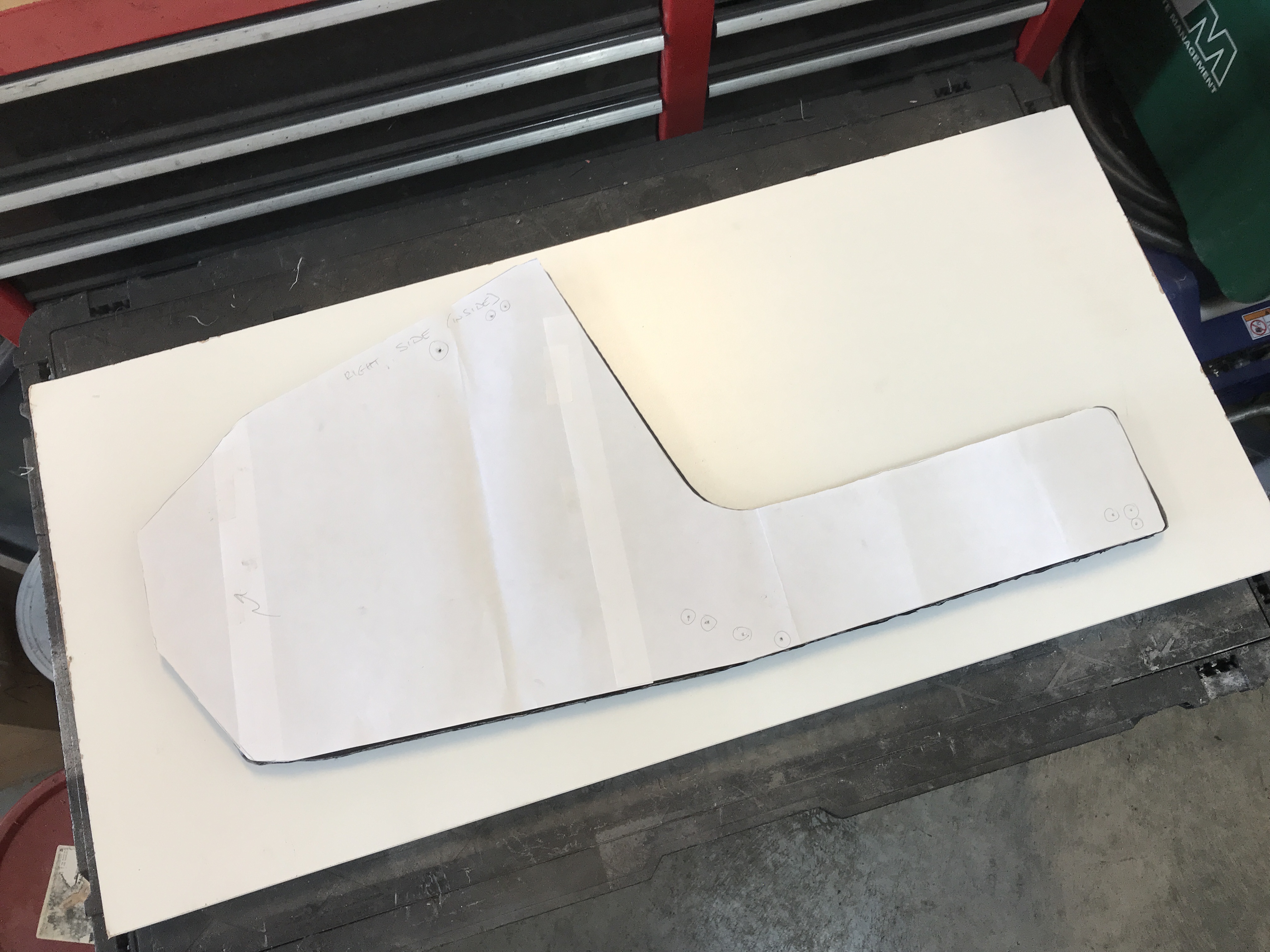 Months ago, I made paper templates to show all the holes for mounting hardware.