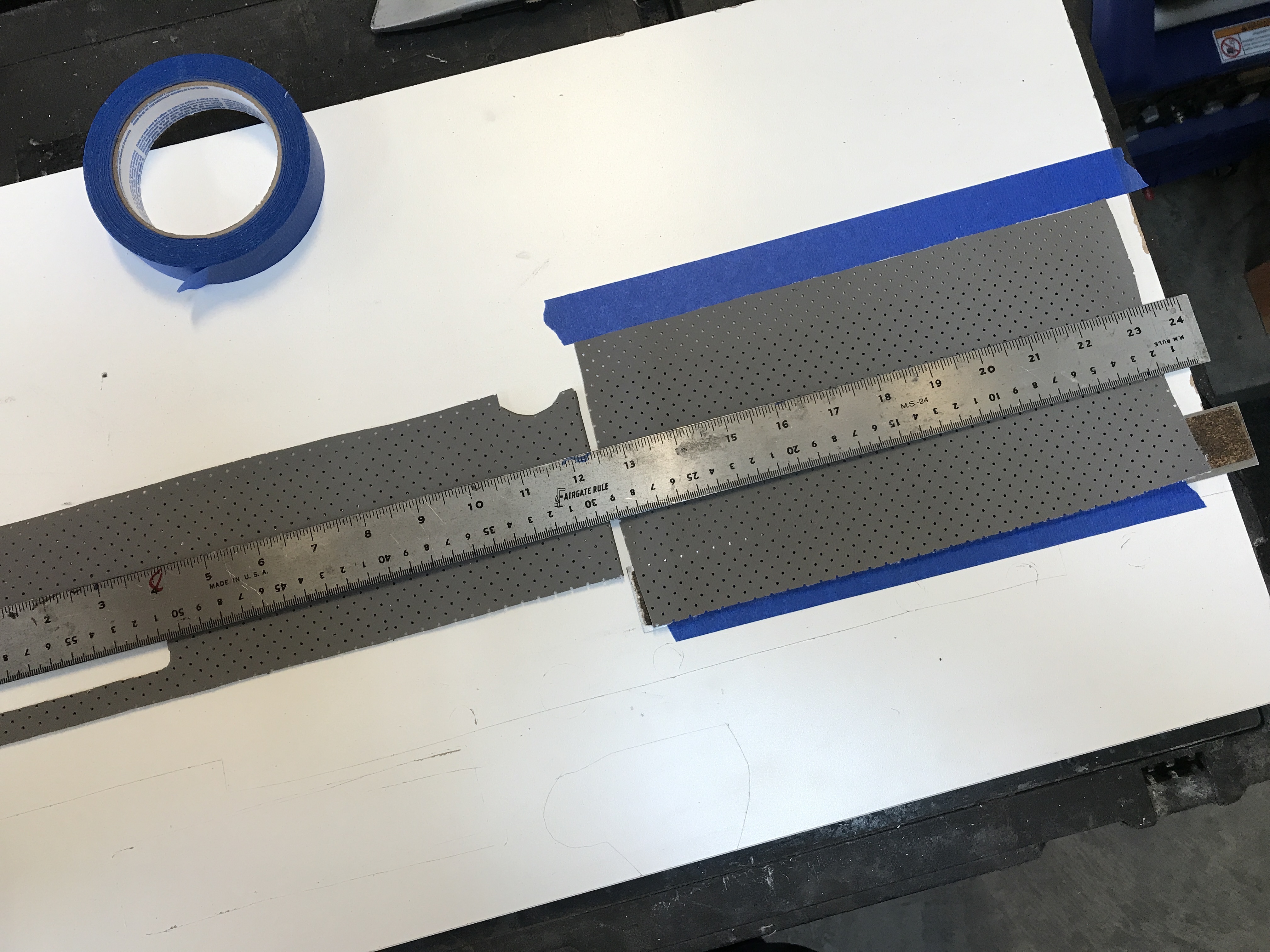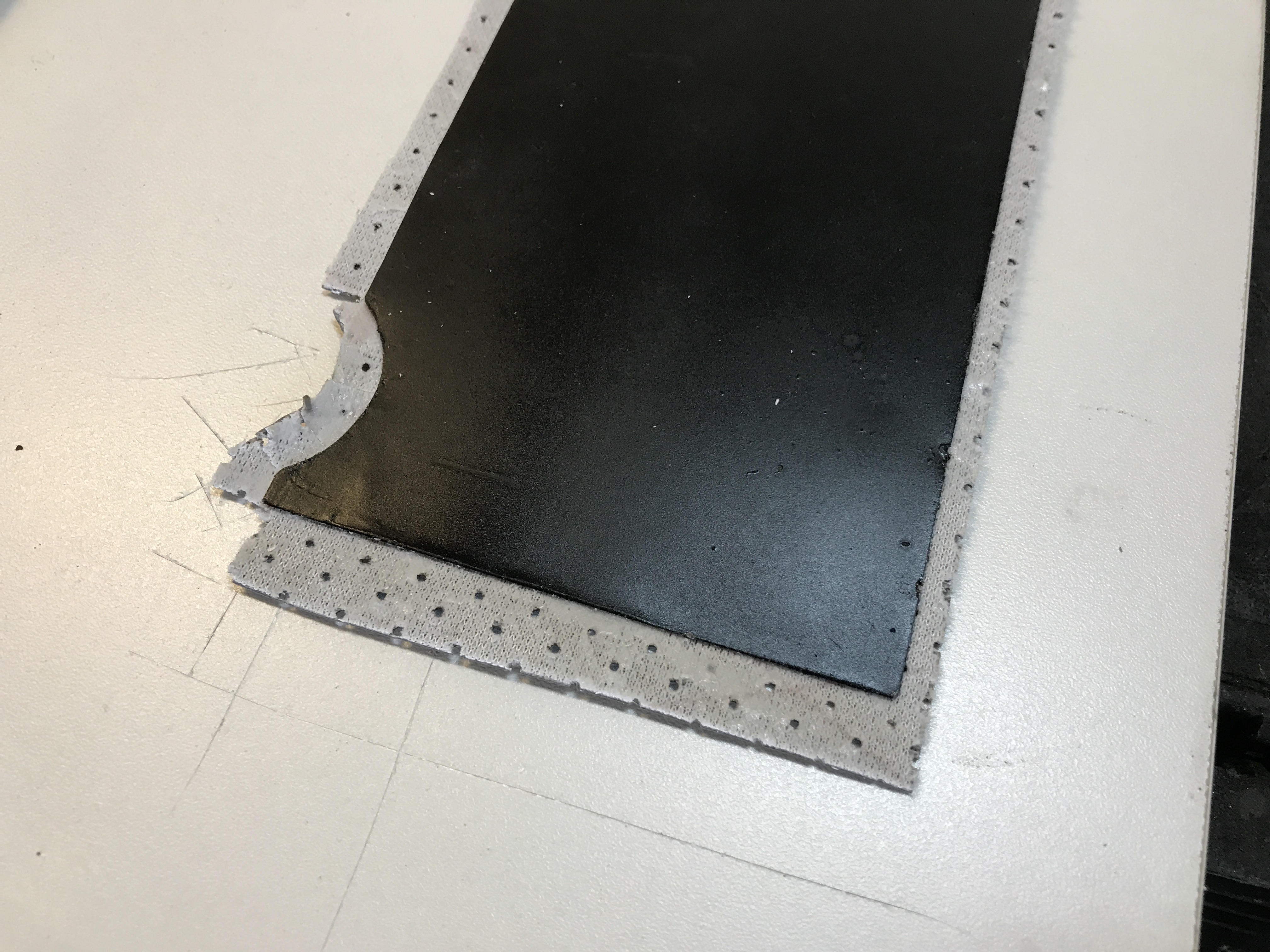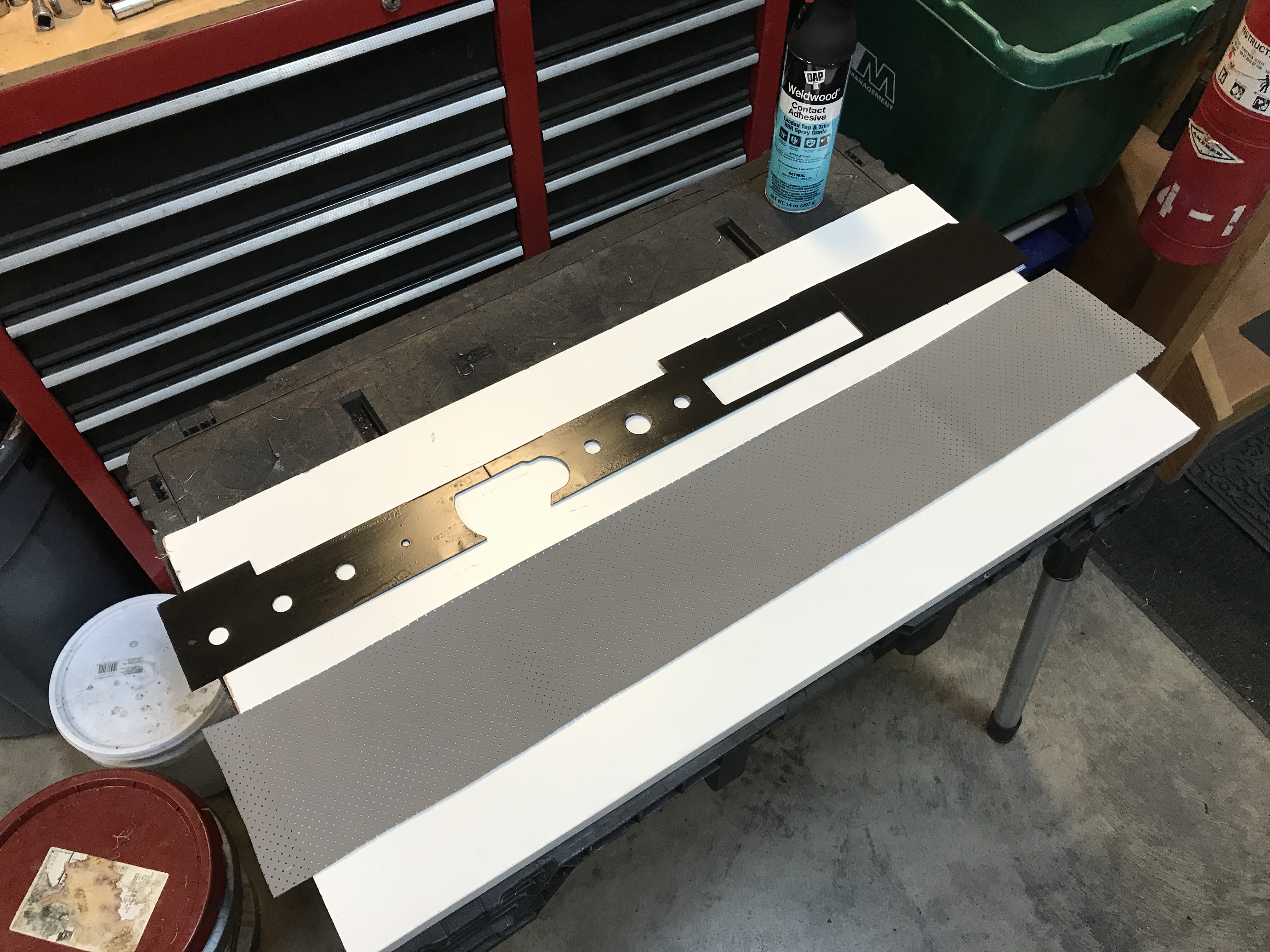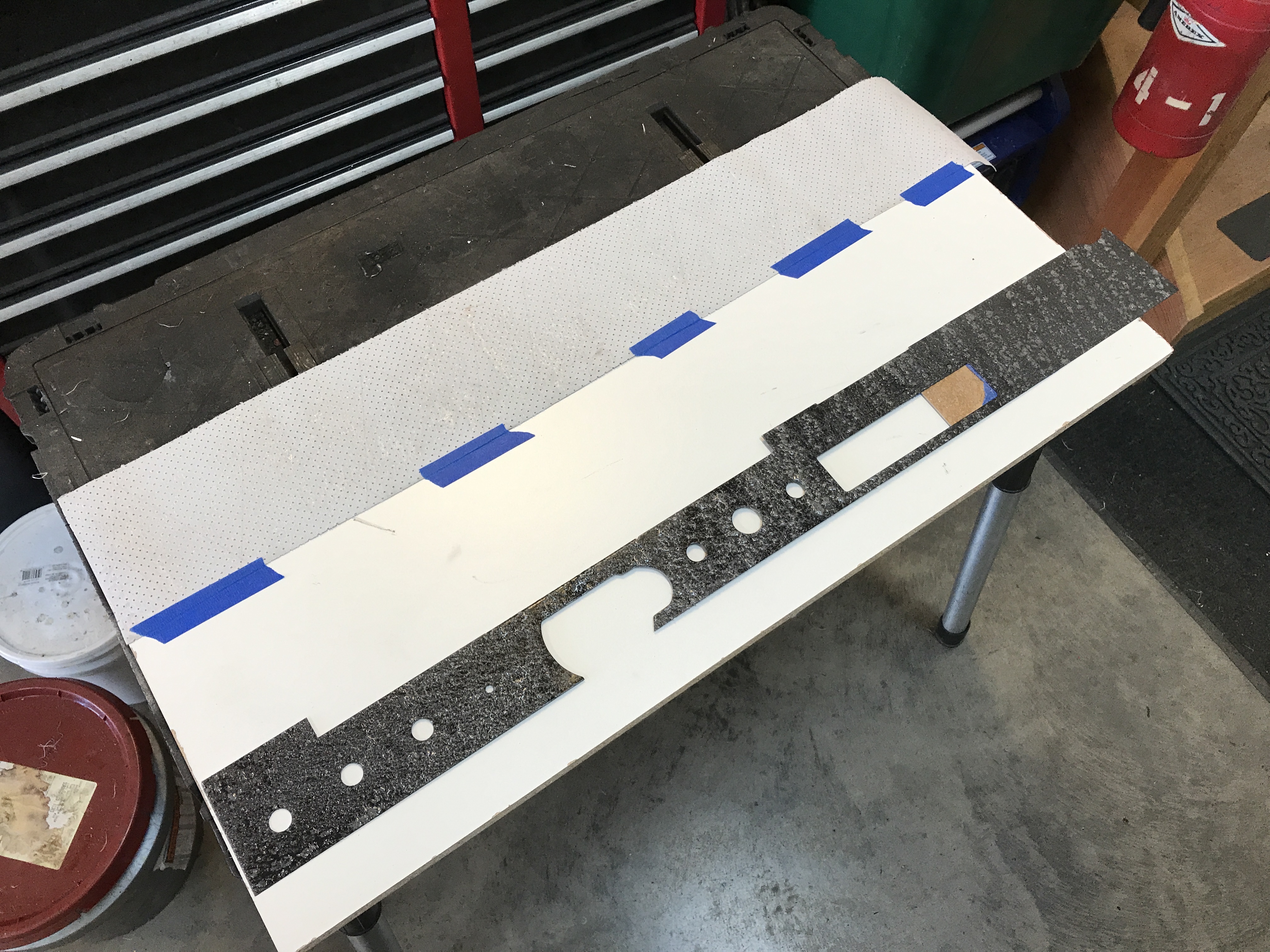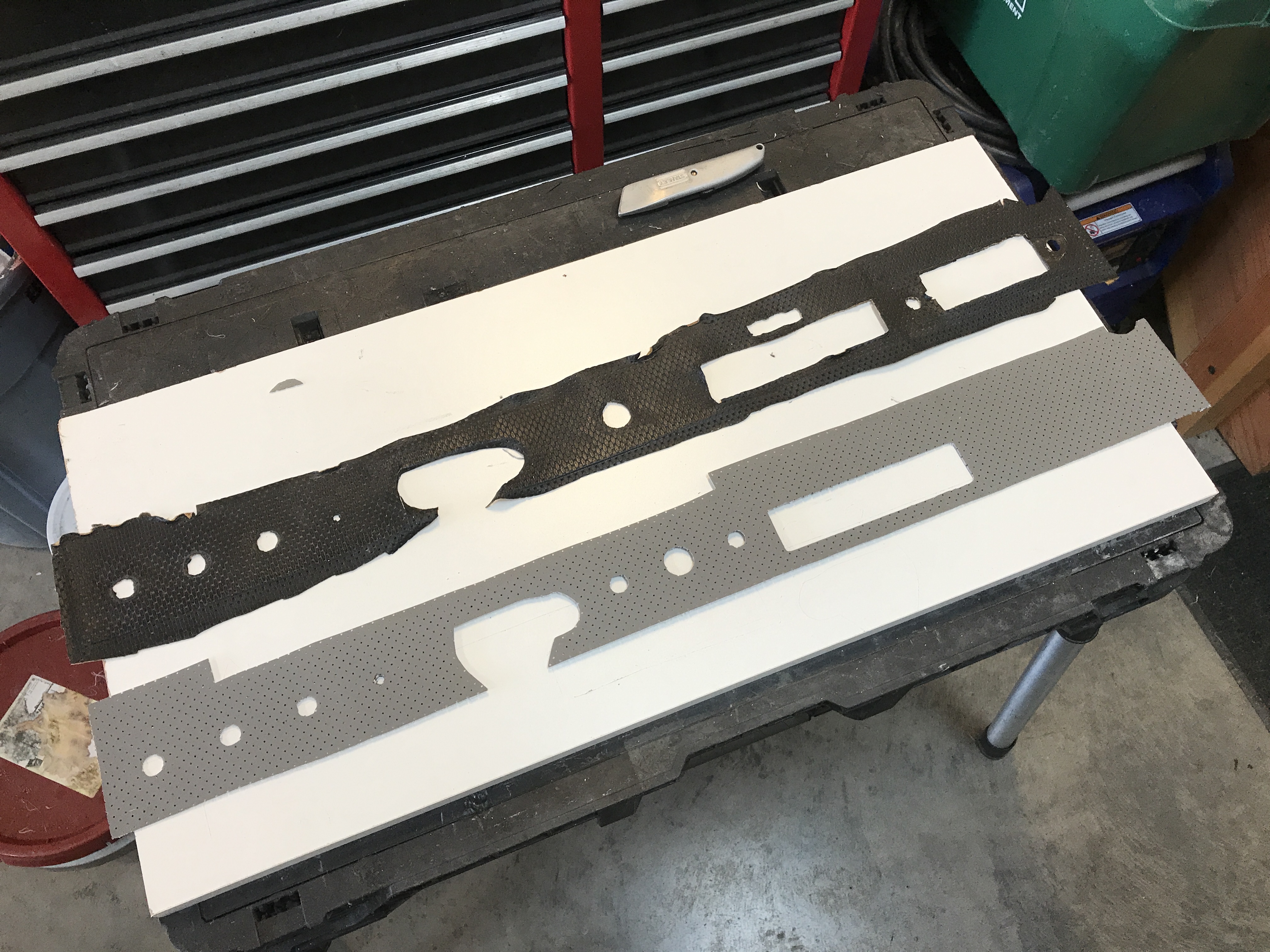 I also needed to make the perforations line up with the rest of the dash plate. I made a jig to position the vinyl and the glove box plate.