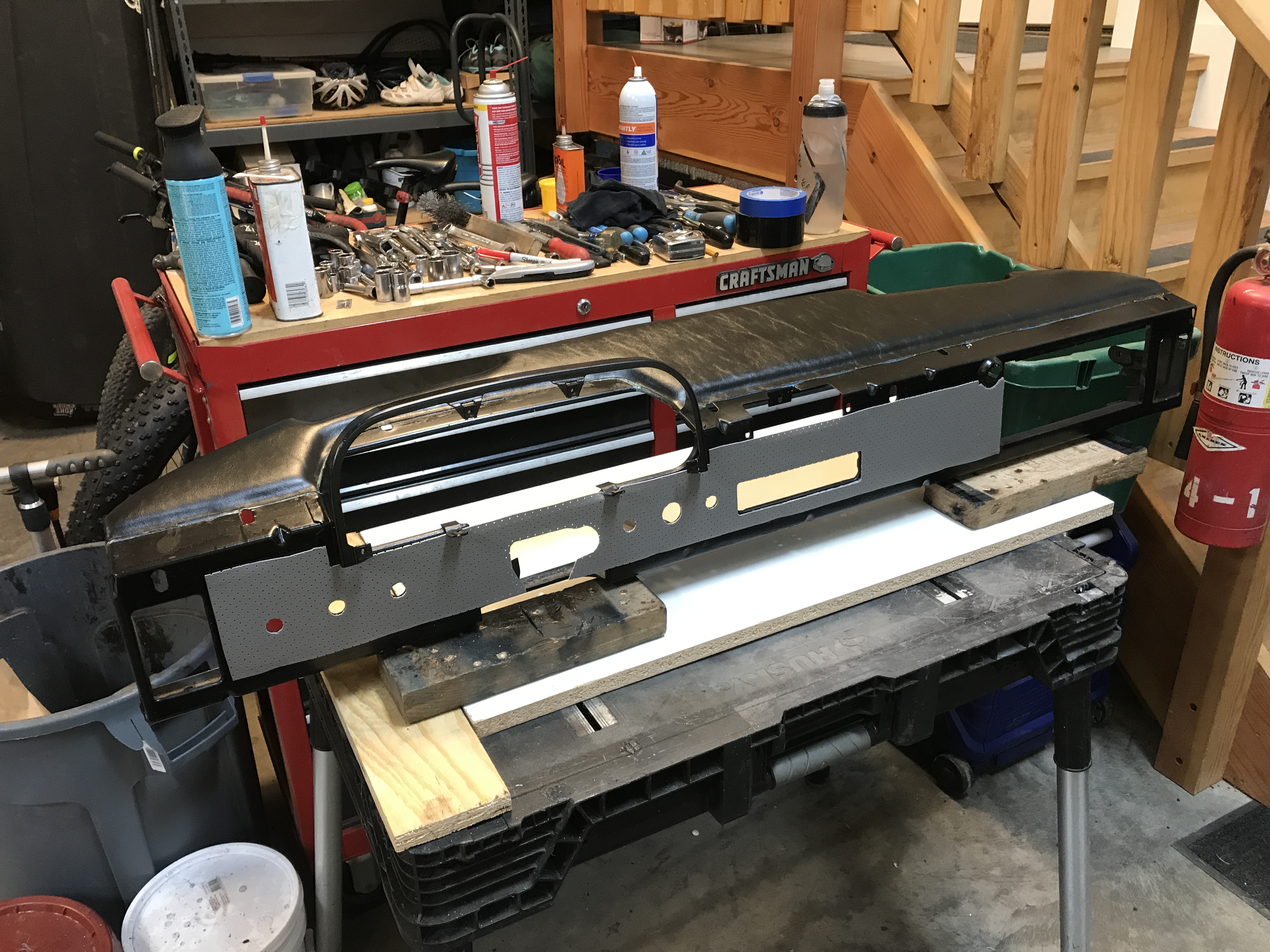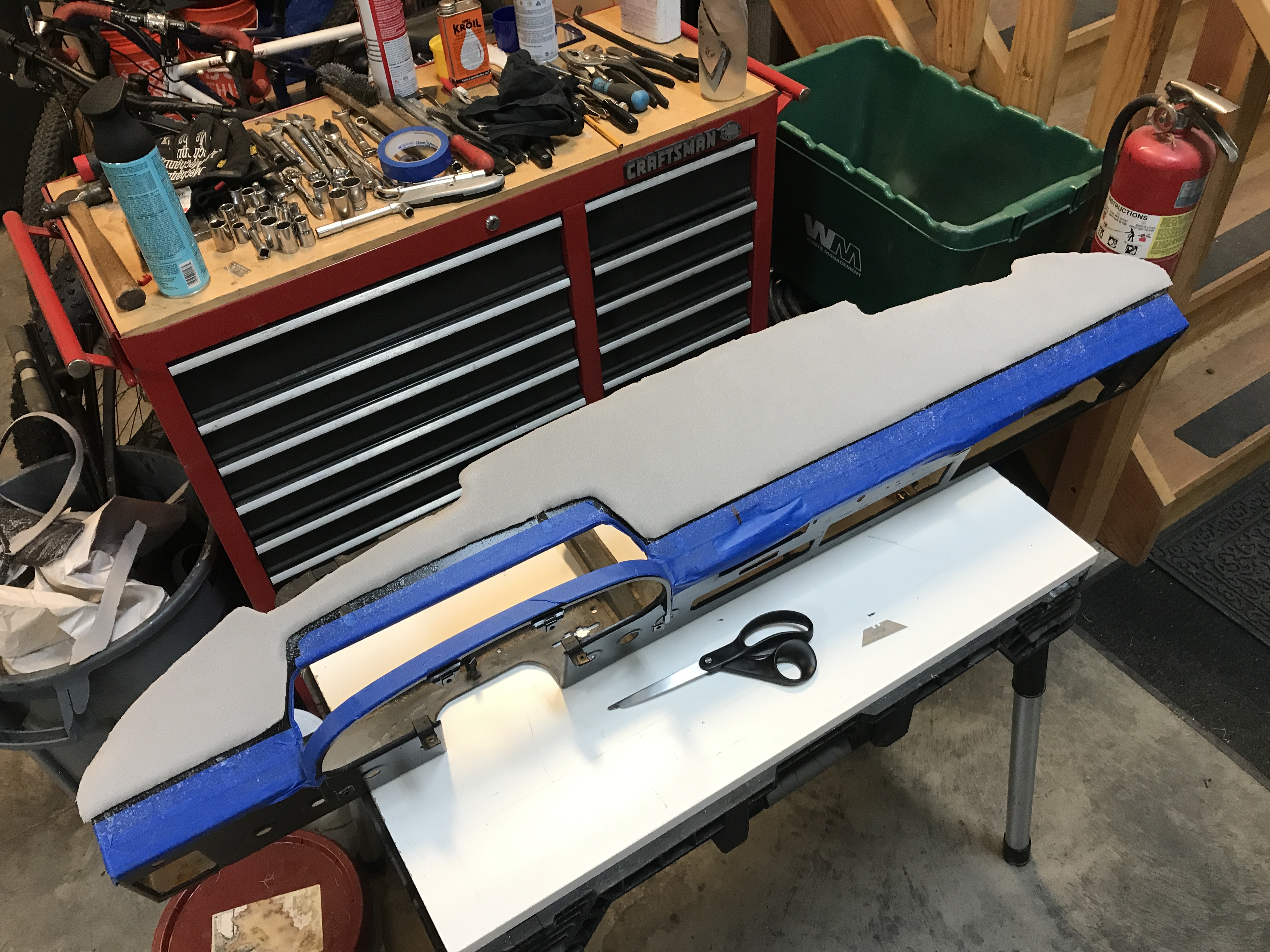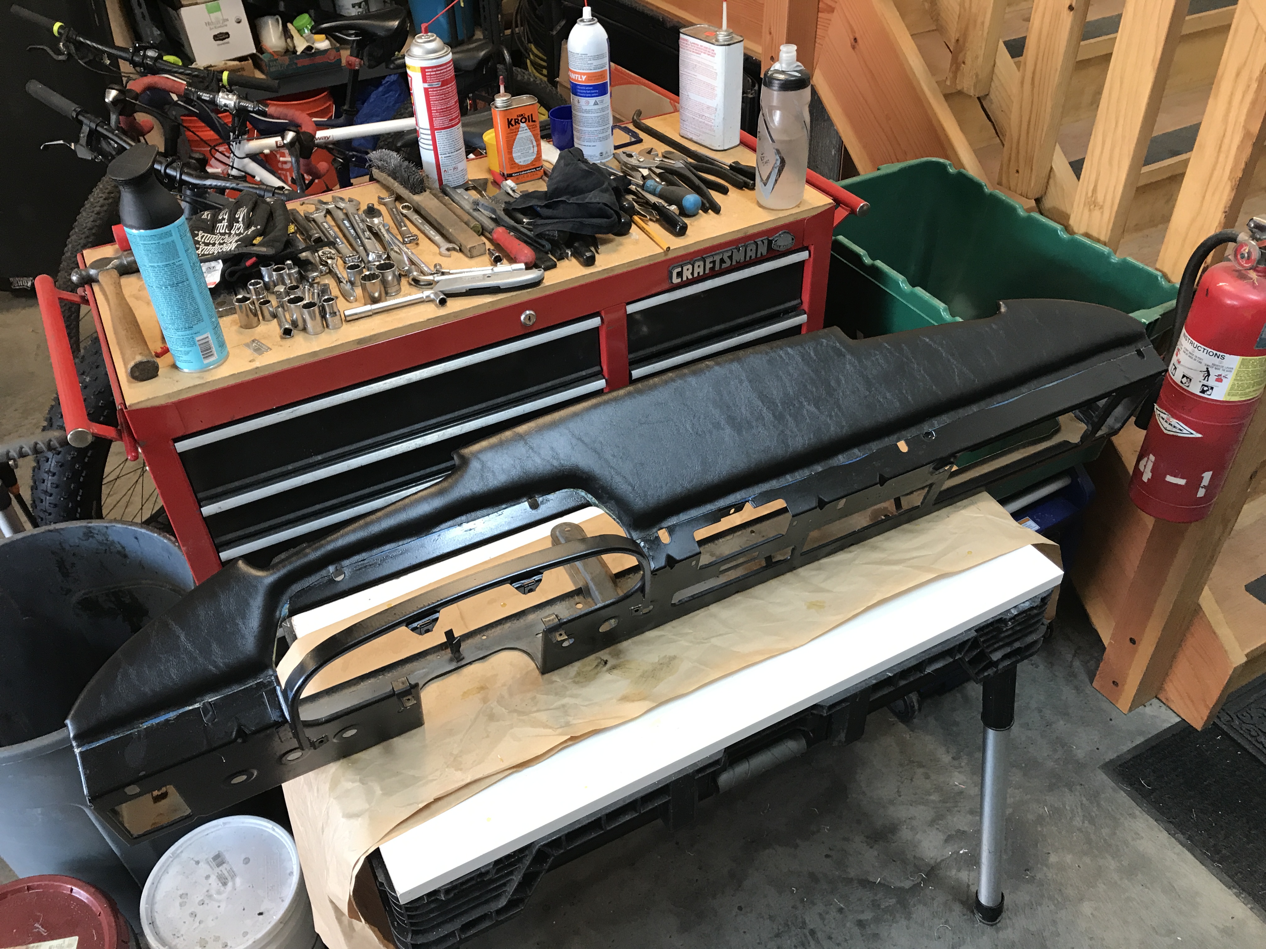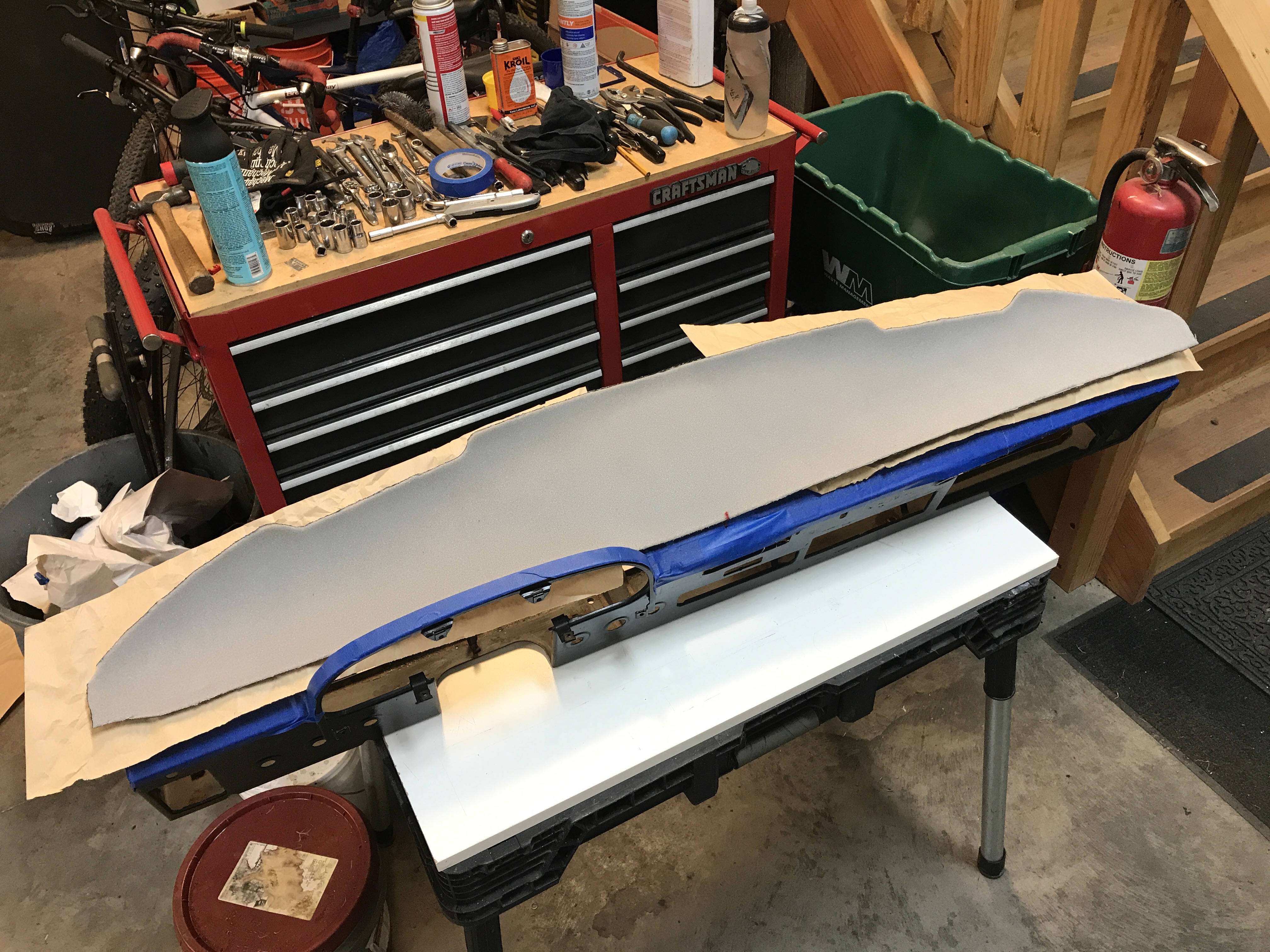Speaking of the interior, I made some progress towards that today and tackled the dash top. I masked off the new paint near the areas to get adhesive. More to come about the paint and adhesive...