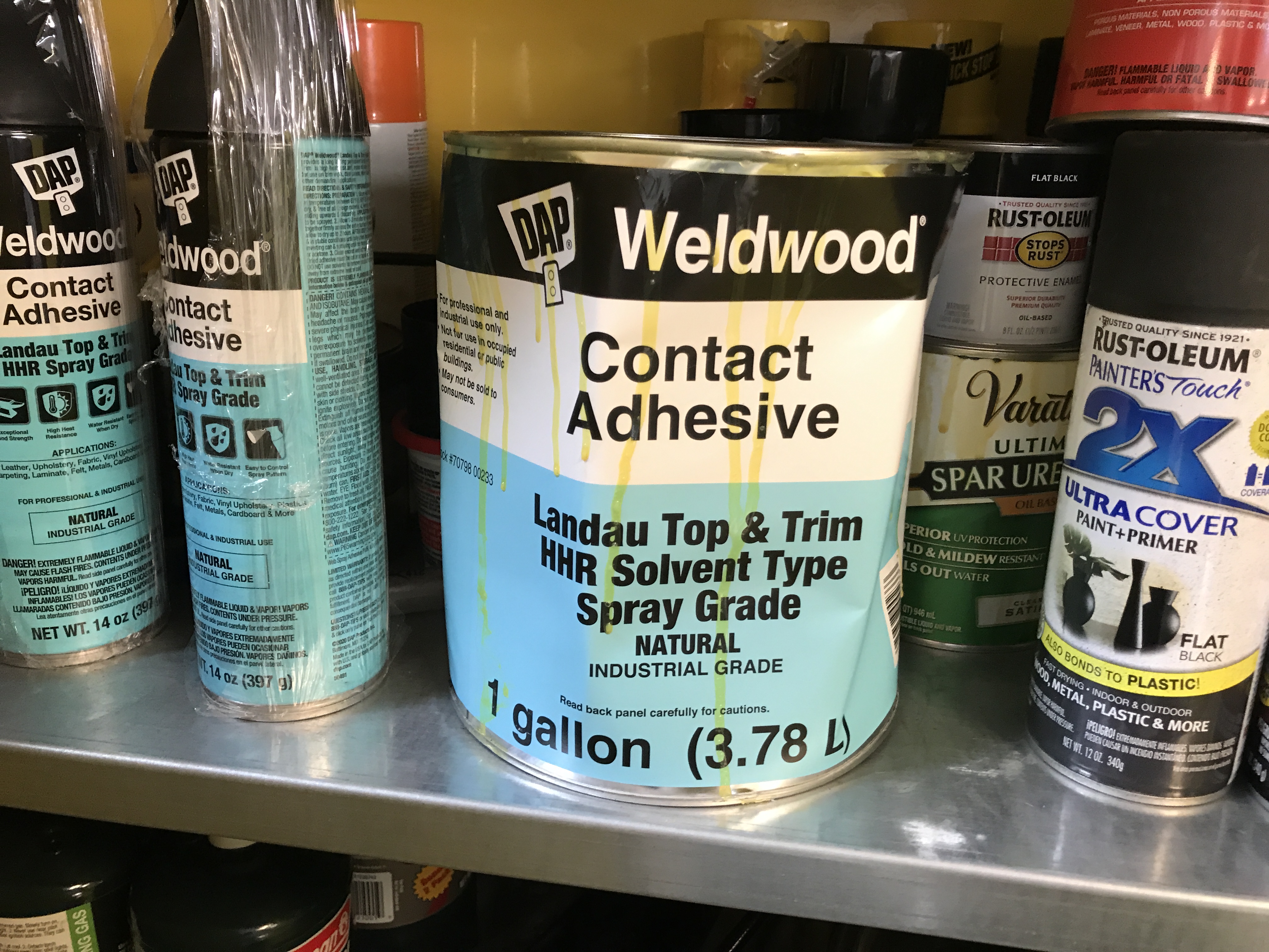 First step was to spray the dash and underside of padding with Weldwood Landau adhesive.