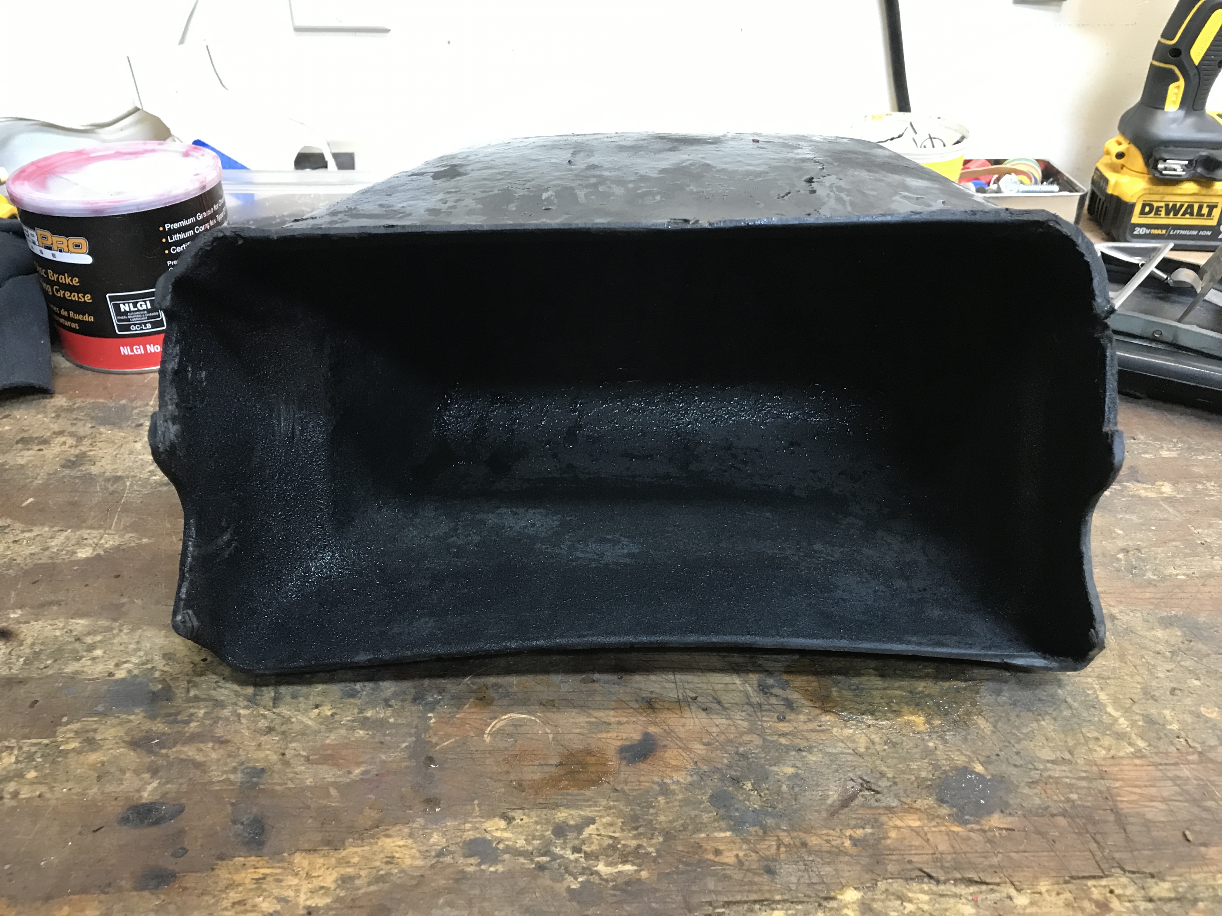 I pulled out the original glove box. Its in pretty good shape, including the inner flocking, but has a bit of a bow along the front edge.