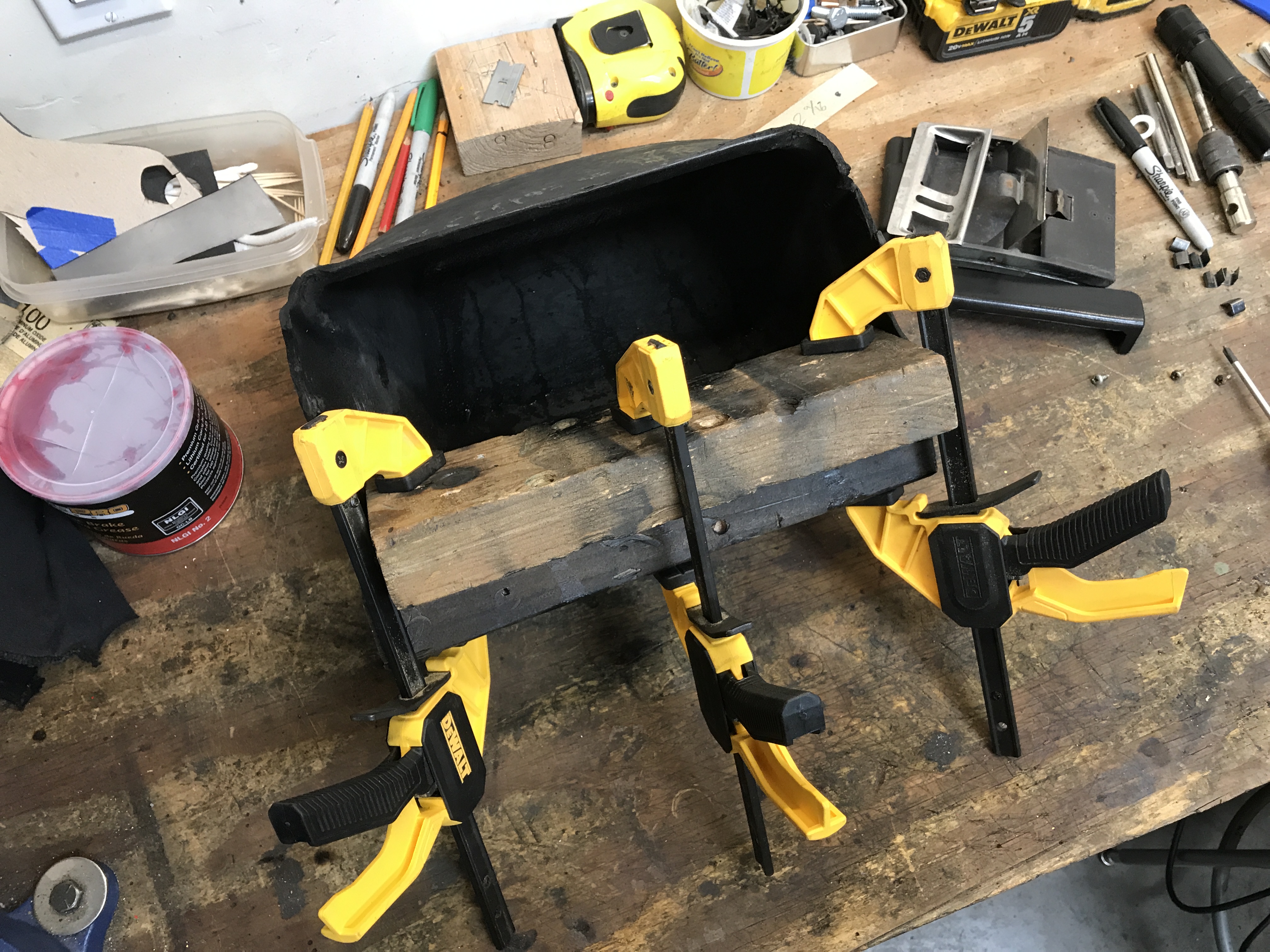 After that, I got out the liquid Weldwood. I decided to do what the factory did and glue down only the edges of the vinyl.