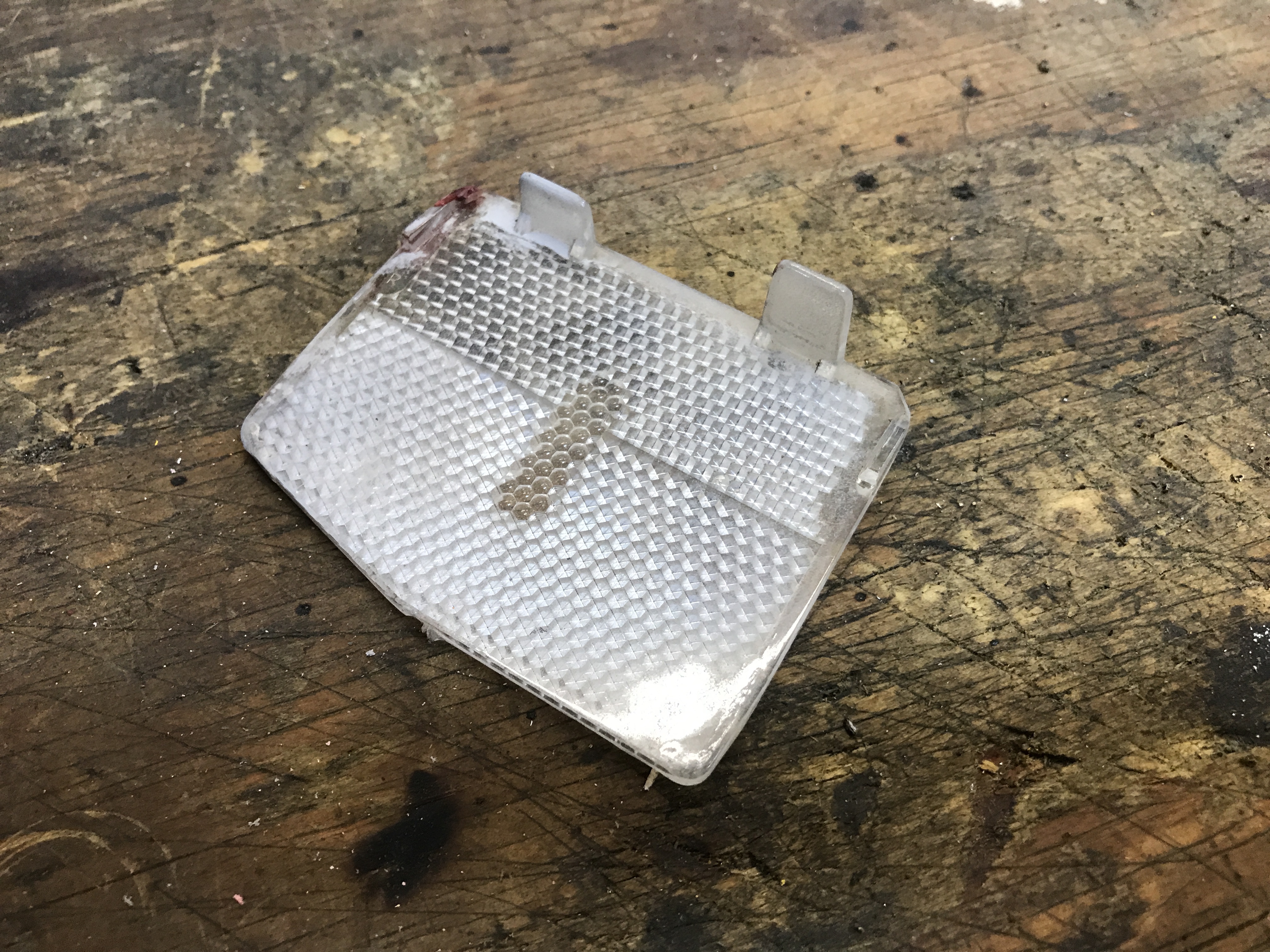 After cleaning up the old glue and a bit of sanding to smooth out the mounting tabs, I glued it in place. Tail lights are now complete, except for LED bulbs.
