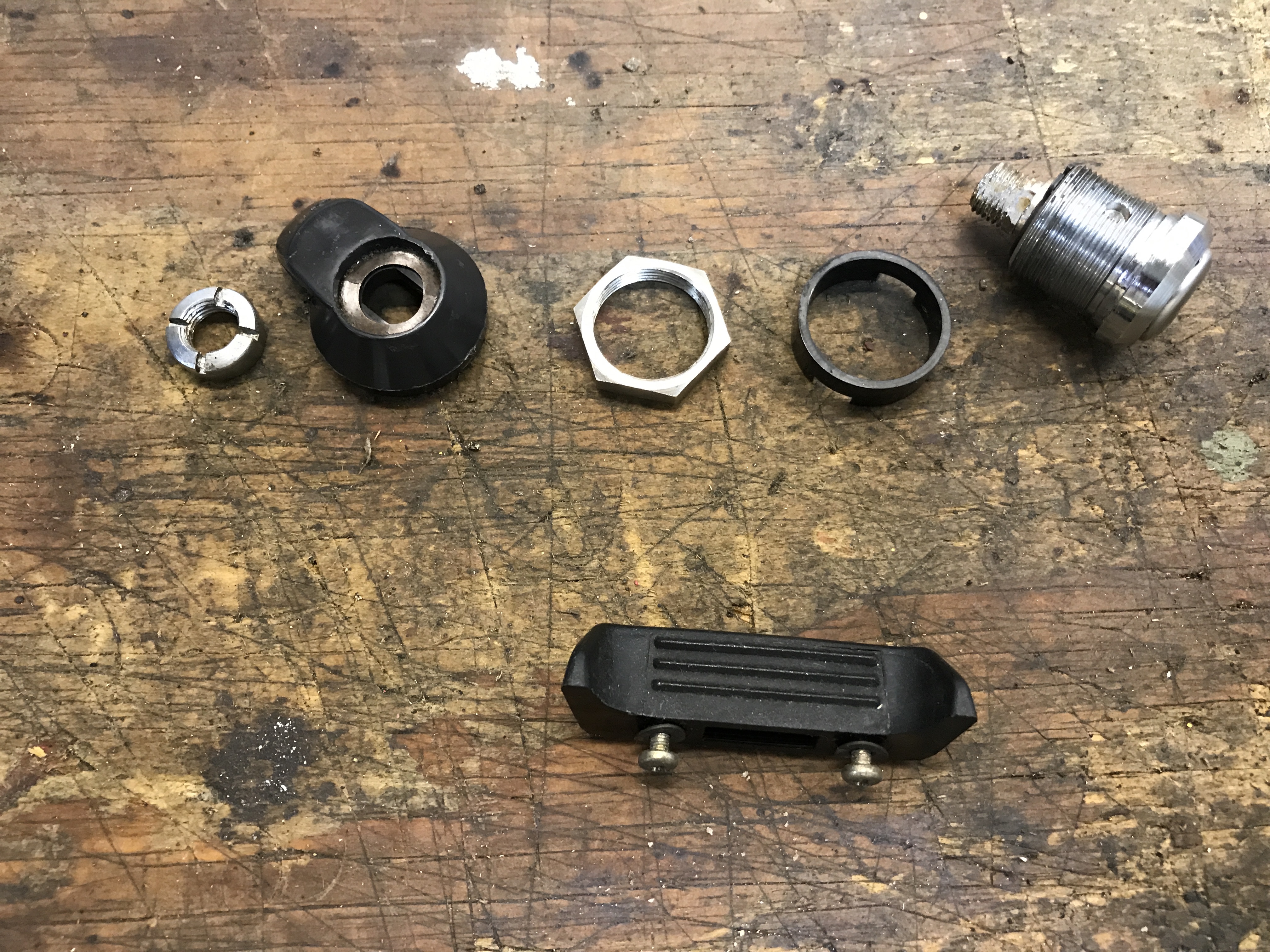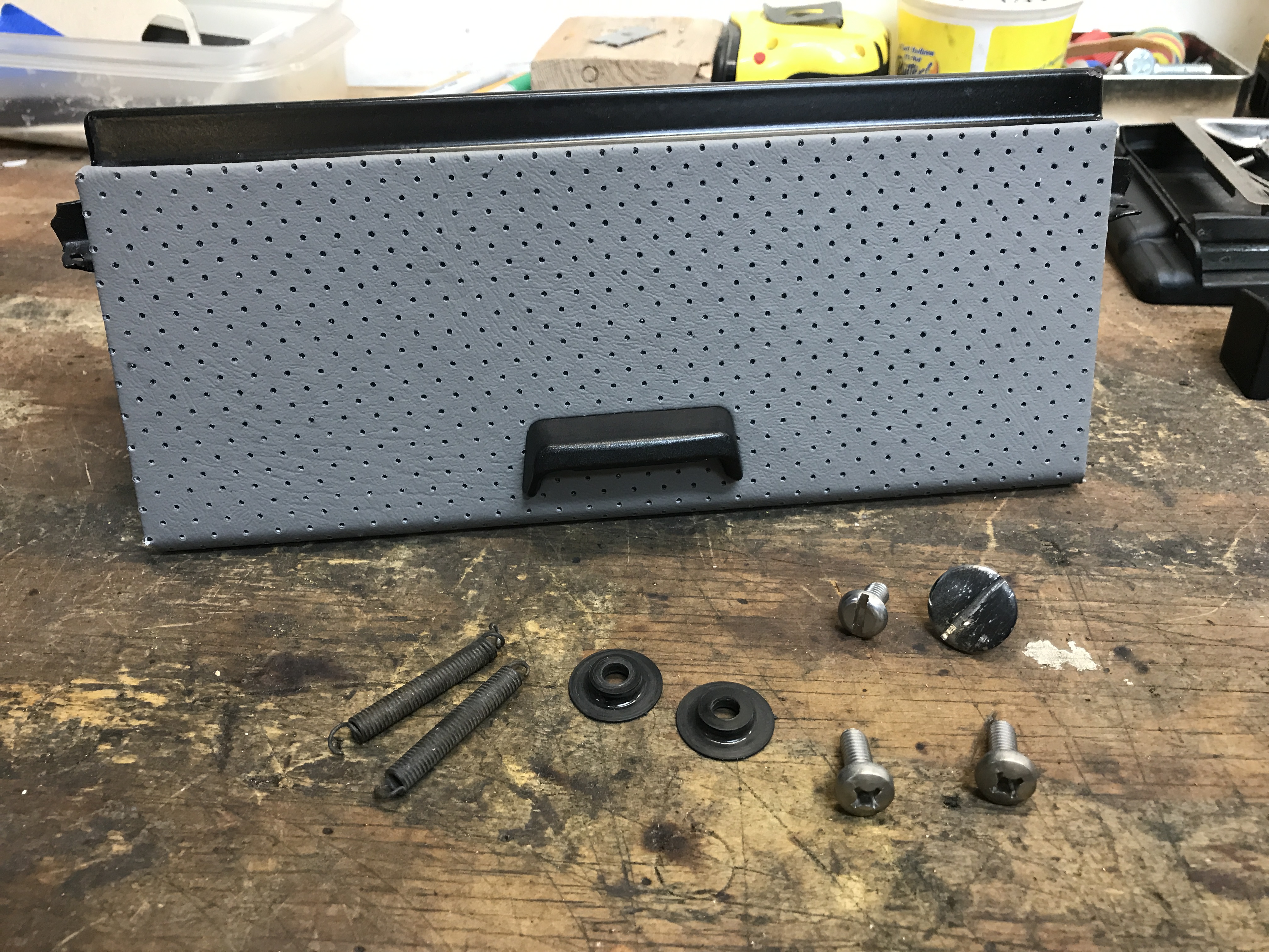 Now, on to the dash. Here are the pieces for the glove box lock, and the door handle.