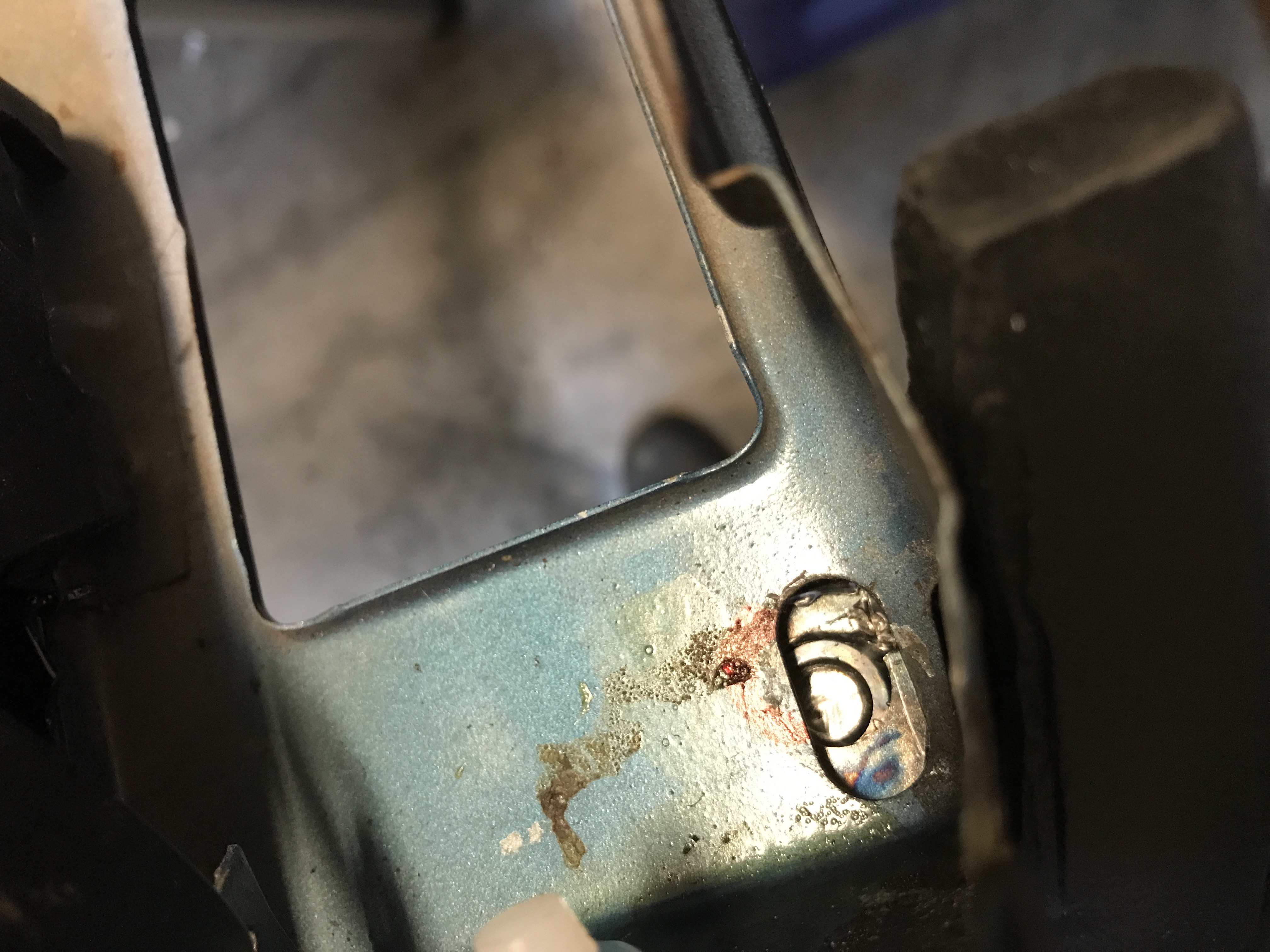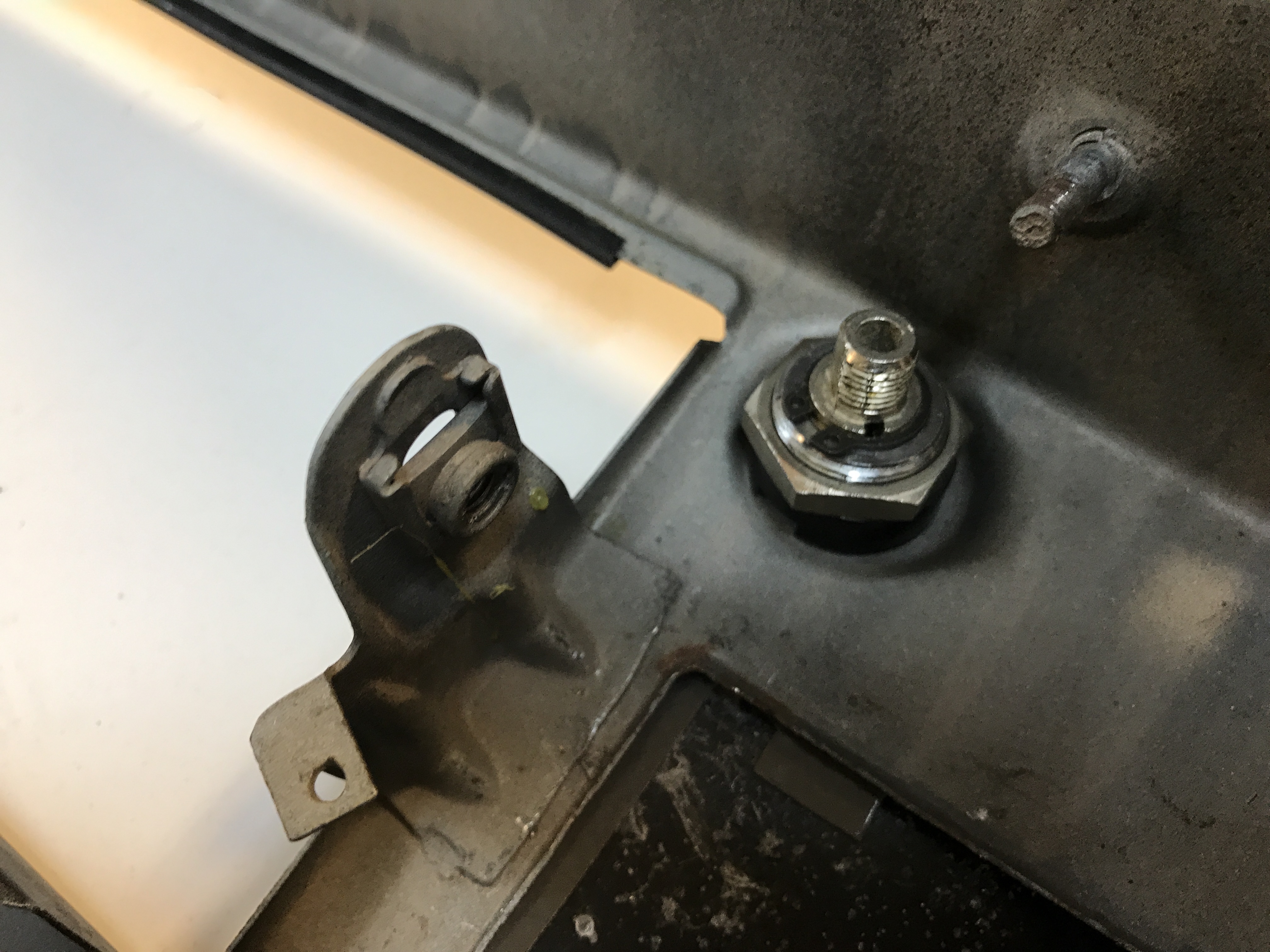 Door with handle, and mounting hardware. The "original" pivot screws are a mixed pair, so I dug into my hardware stash for some that match.