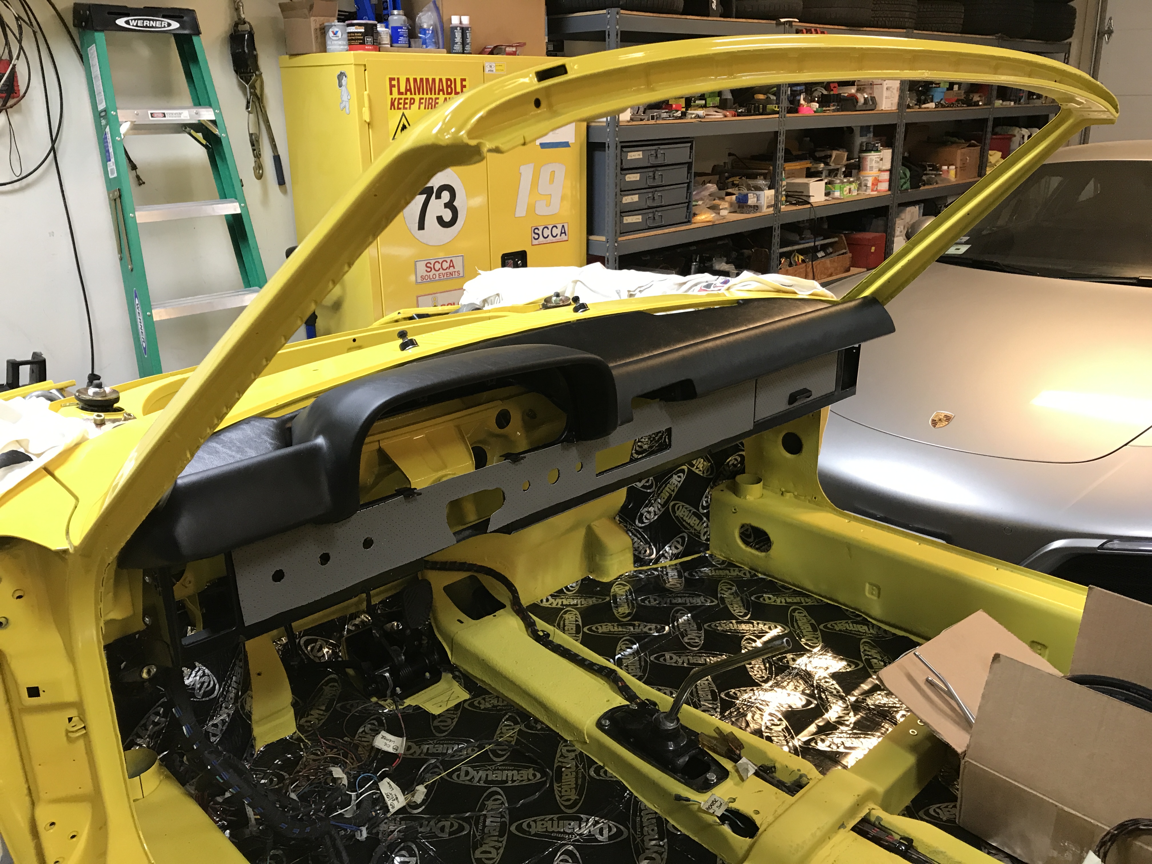 Big day today--installing the dash. I got the top studs into their holes, and then bolted the underside bracket.