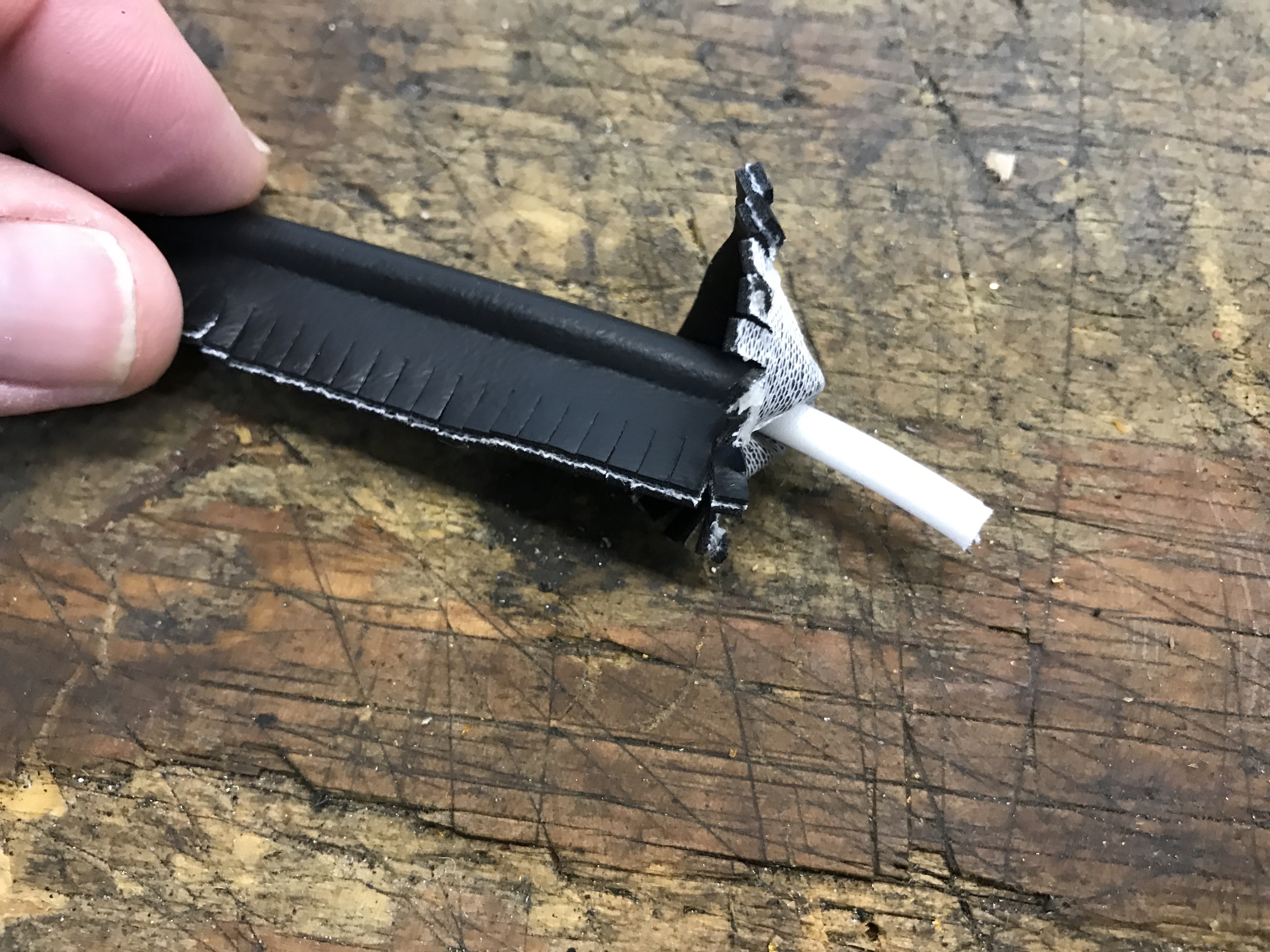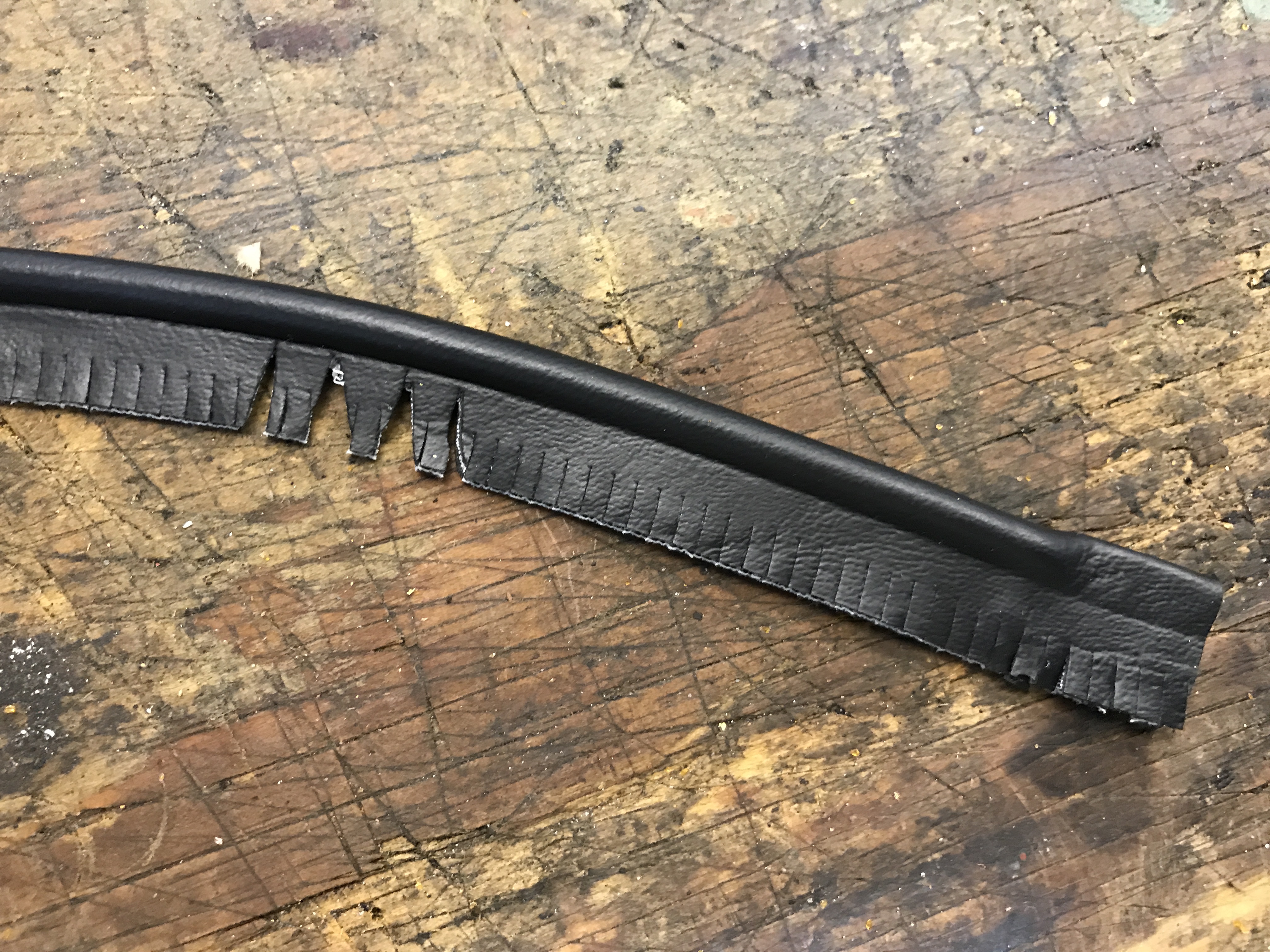 I also tried my plan for this stuff: black vinyl welting, with a 1/4 inch round edge.