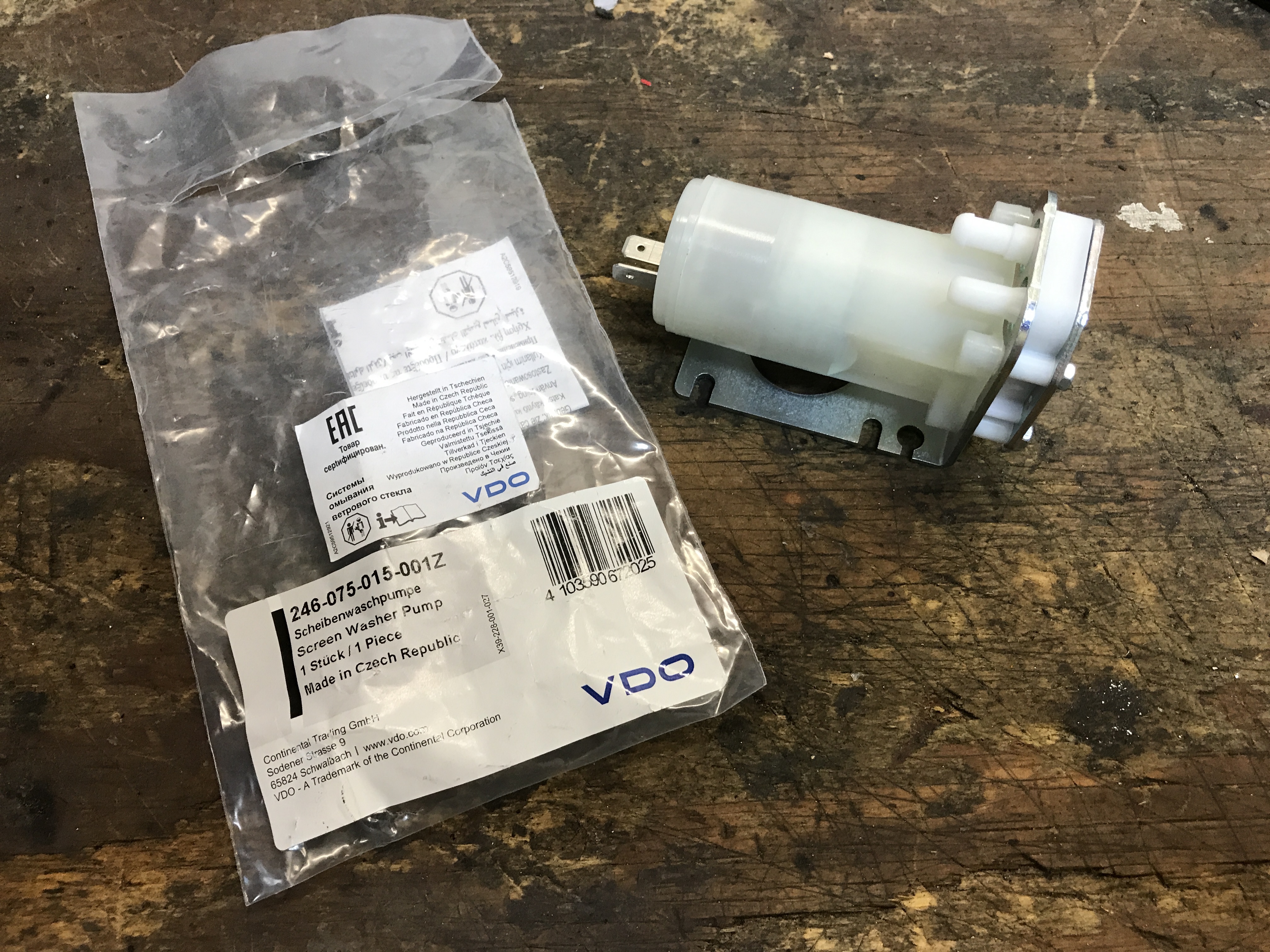 One last bit of exploration today. I will install a washer pump, and somehow live without the OE clever method of using the spare tire as a pressure source.