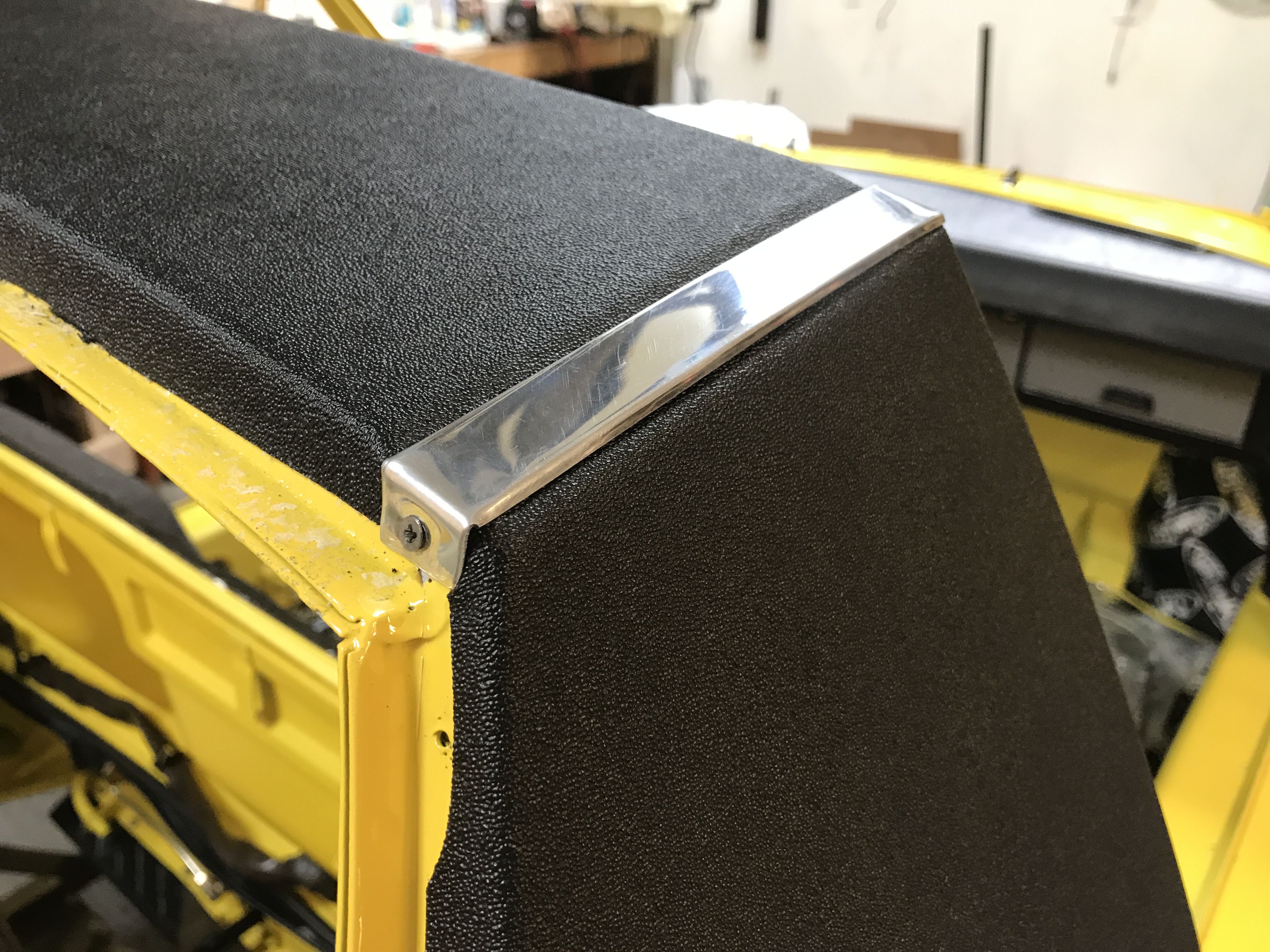 Then time for the rear edge trim piece. I treated the steel retaining clips with T-9 to prevent (more) rust.