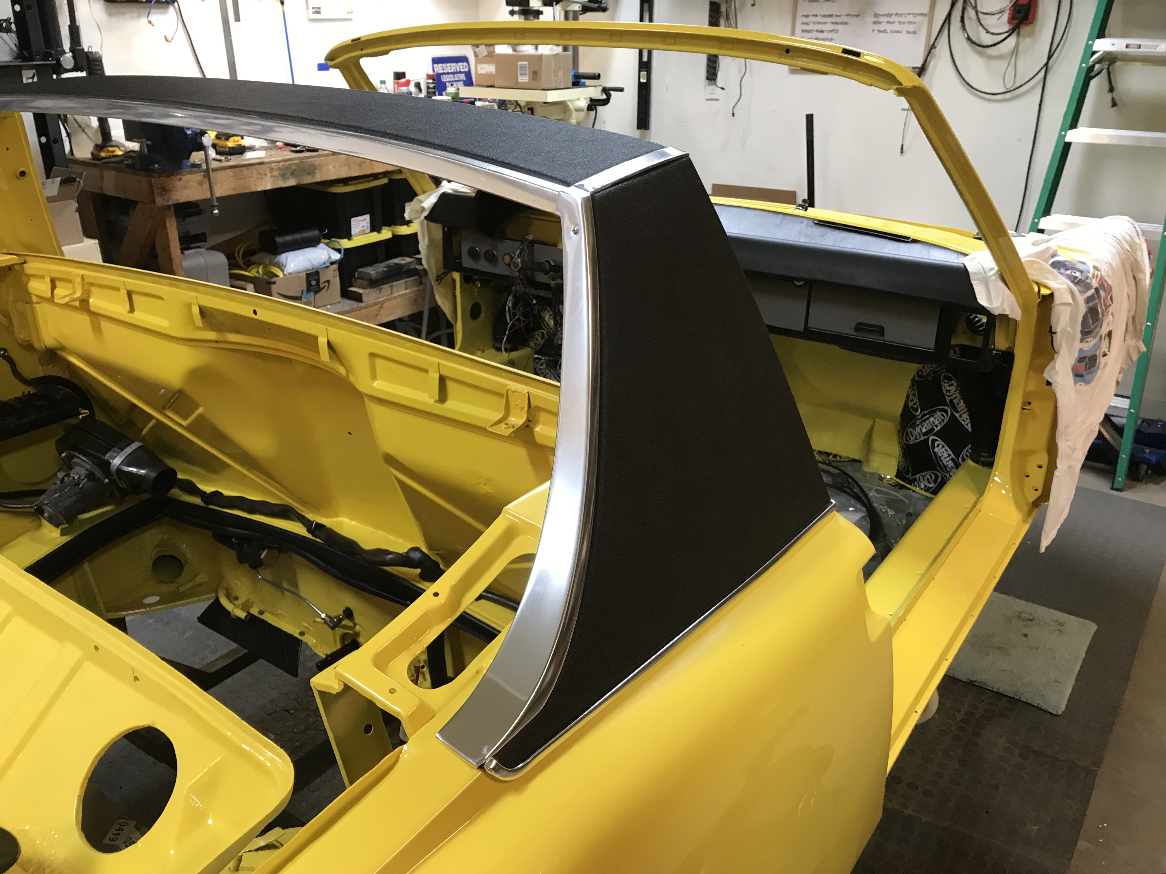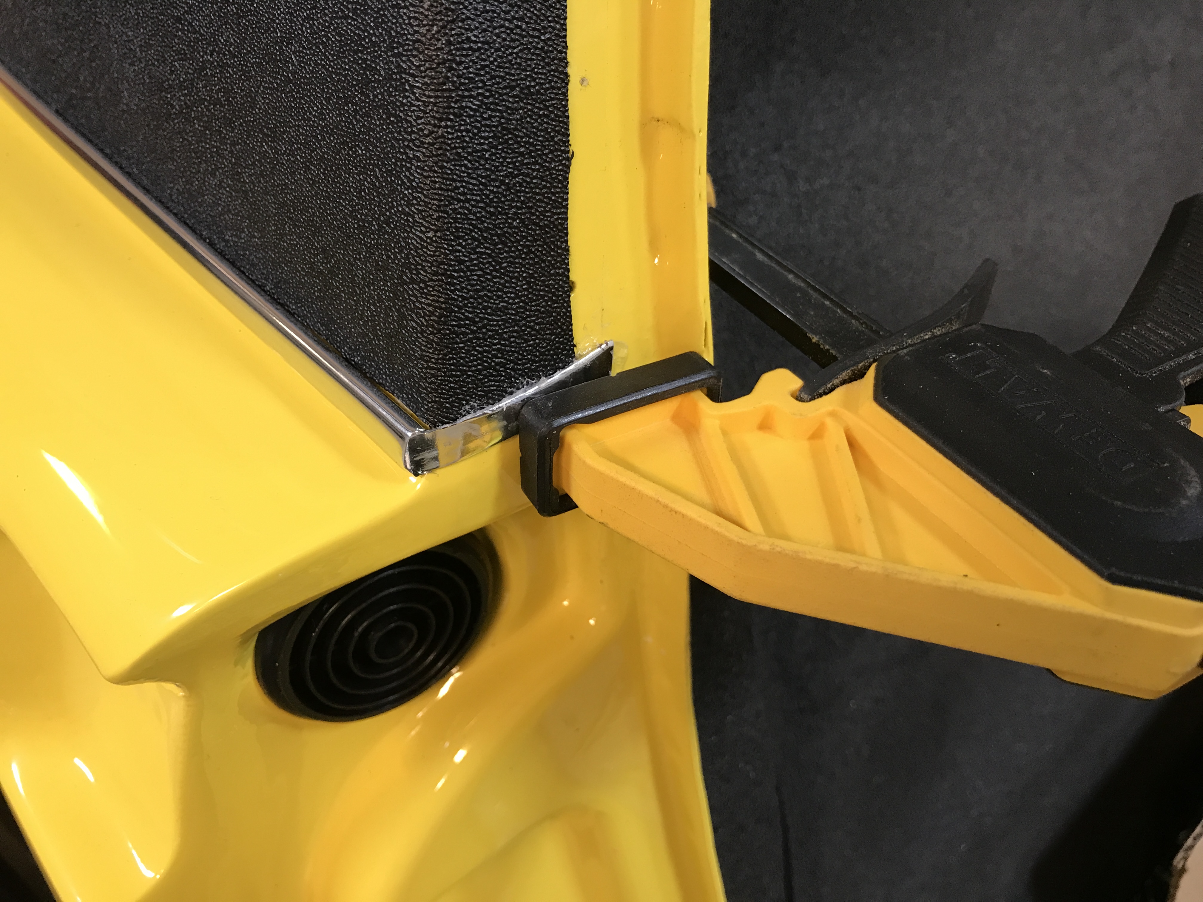 Successful gluing of targa bolster. Cracks are still visible but the padded vinyl is flat.