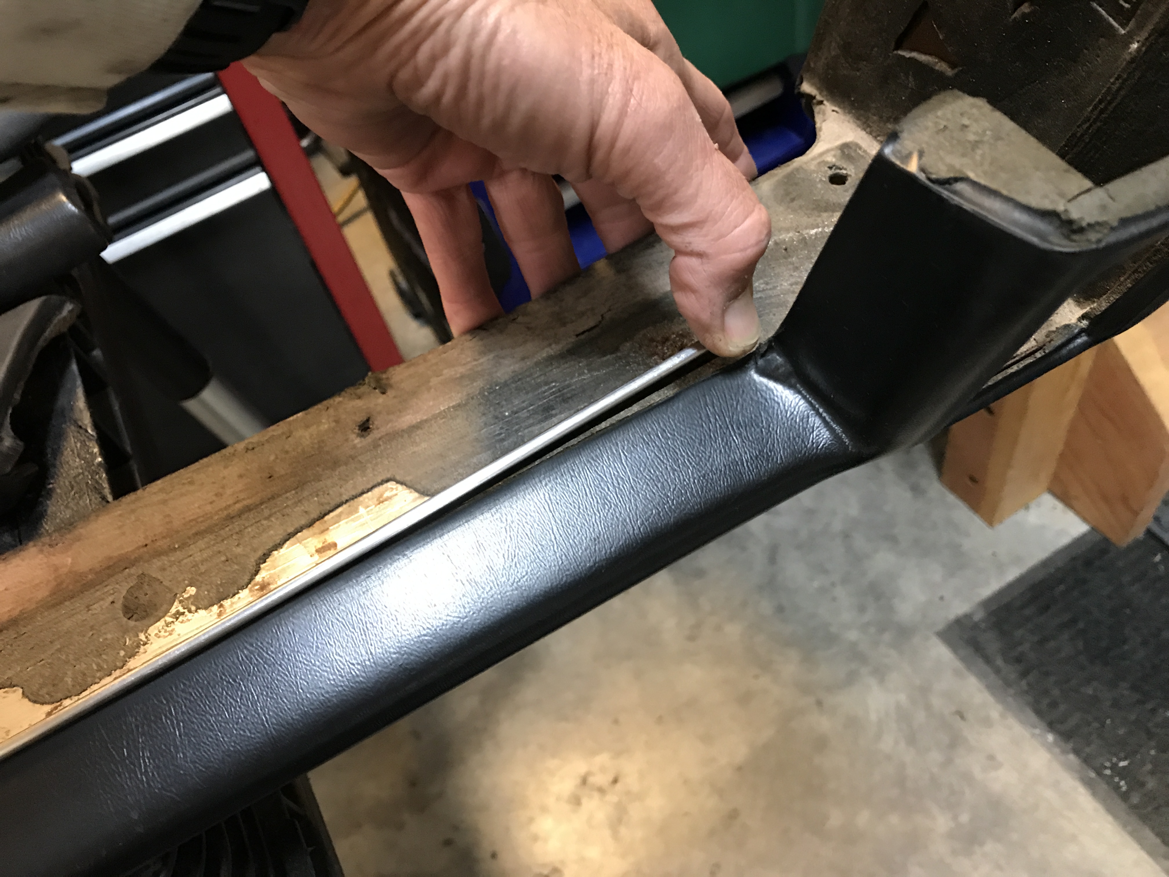 While I was feeling sticky, I needed to reglue the end of the chrome trim strip on the lower dash bolster.